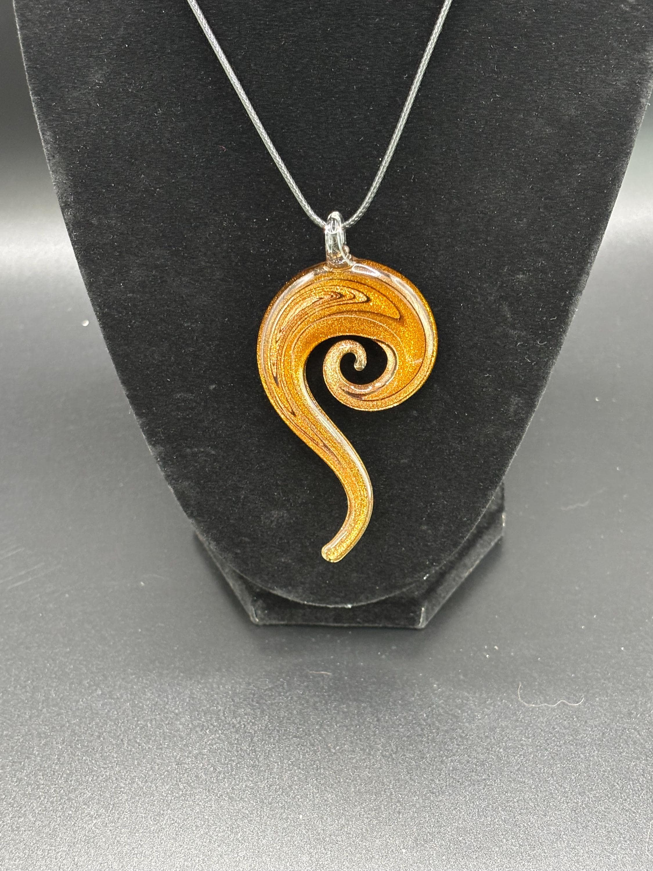 This is a Glass Lampwork Spiral necklace. Sometimes referred to as a tail spiral, It is unique and has rich brown color.