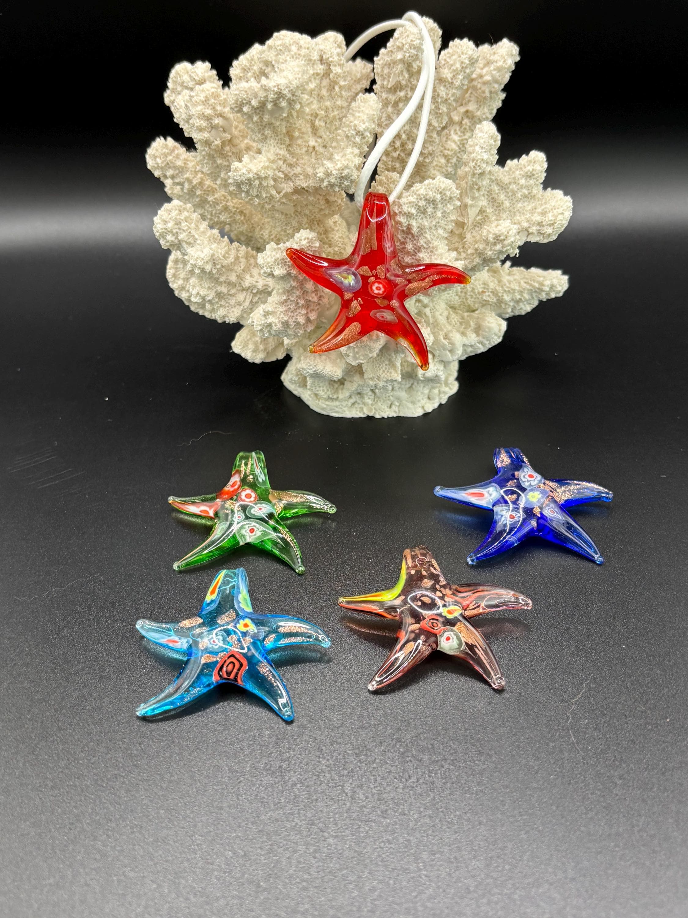 Each starfish design is unique on its own and the Millefiori pattern on each may vary slightly between them.