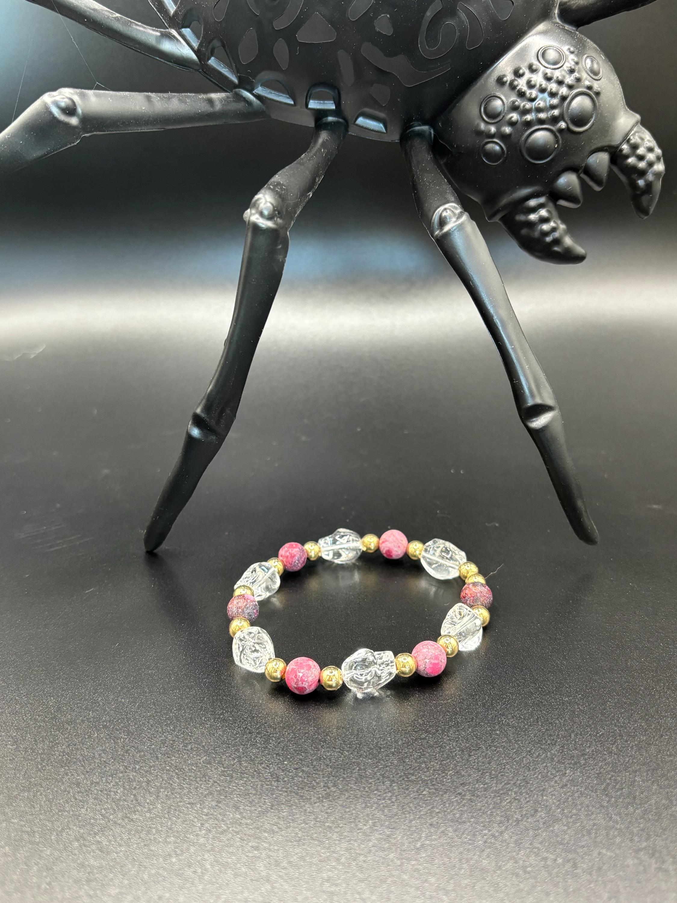 America pine stone gemstone bracelet with crystal clear skulls. Going with the trend for Halloween with Pink! As they say, Pinkoween.