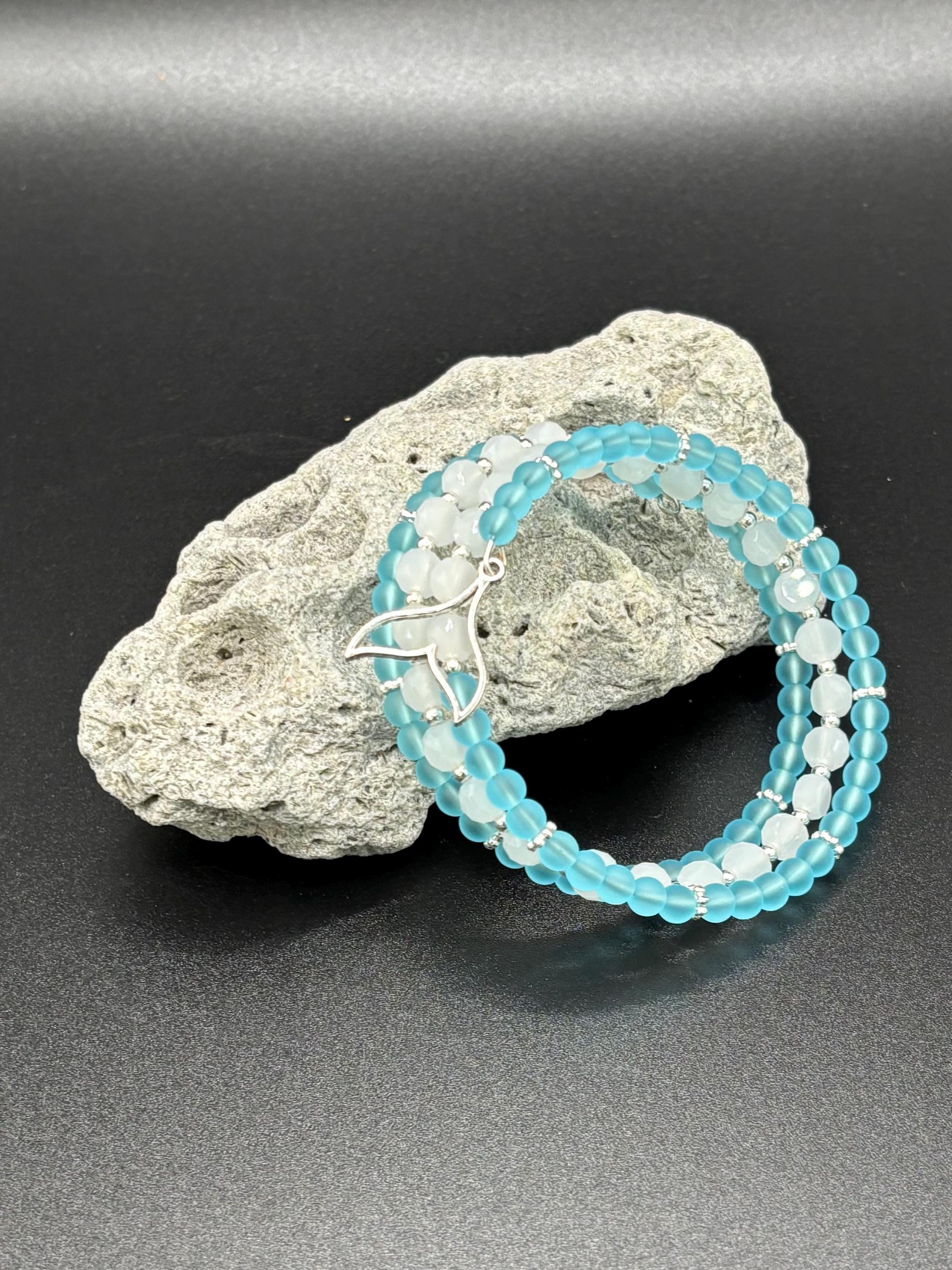 This beautiful Memory Wire Seaglass bracelet is made with Turquoise blue Seaglass . There are different listings with the options I have available. This one has Blue Seaglass with coin shaped crystals and a whale tale charm.