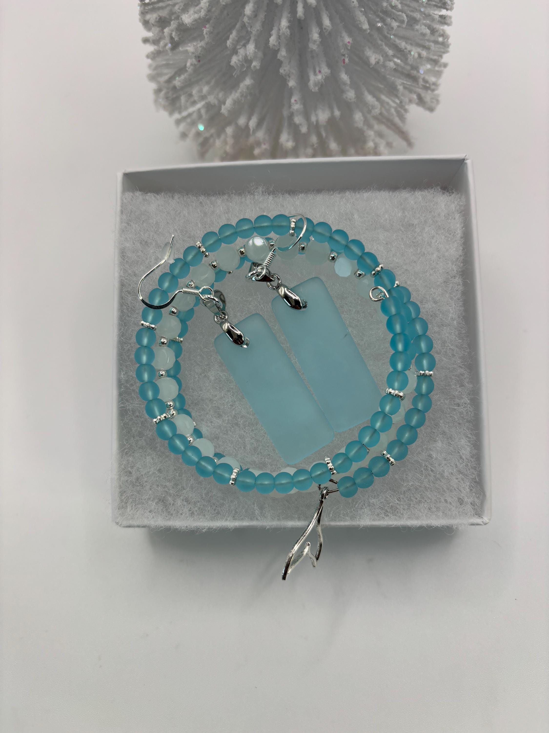 This beautiful Memory Wire Seaglass bracelet is made with Turquoise blue Seaglass . There are different listings with the options I have available. This one has Blue Seaglass with coin shaped crystals and a whale tale charm.
