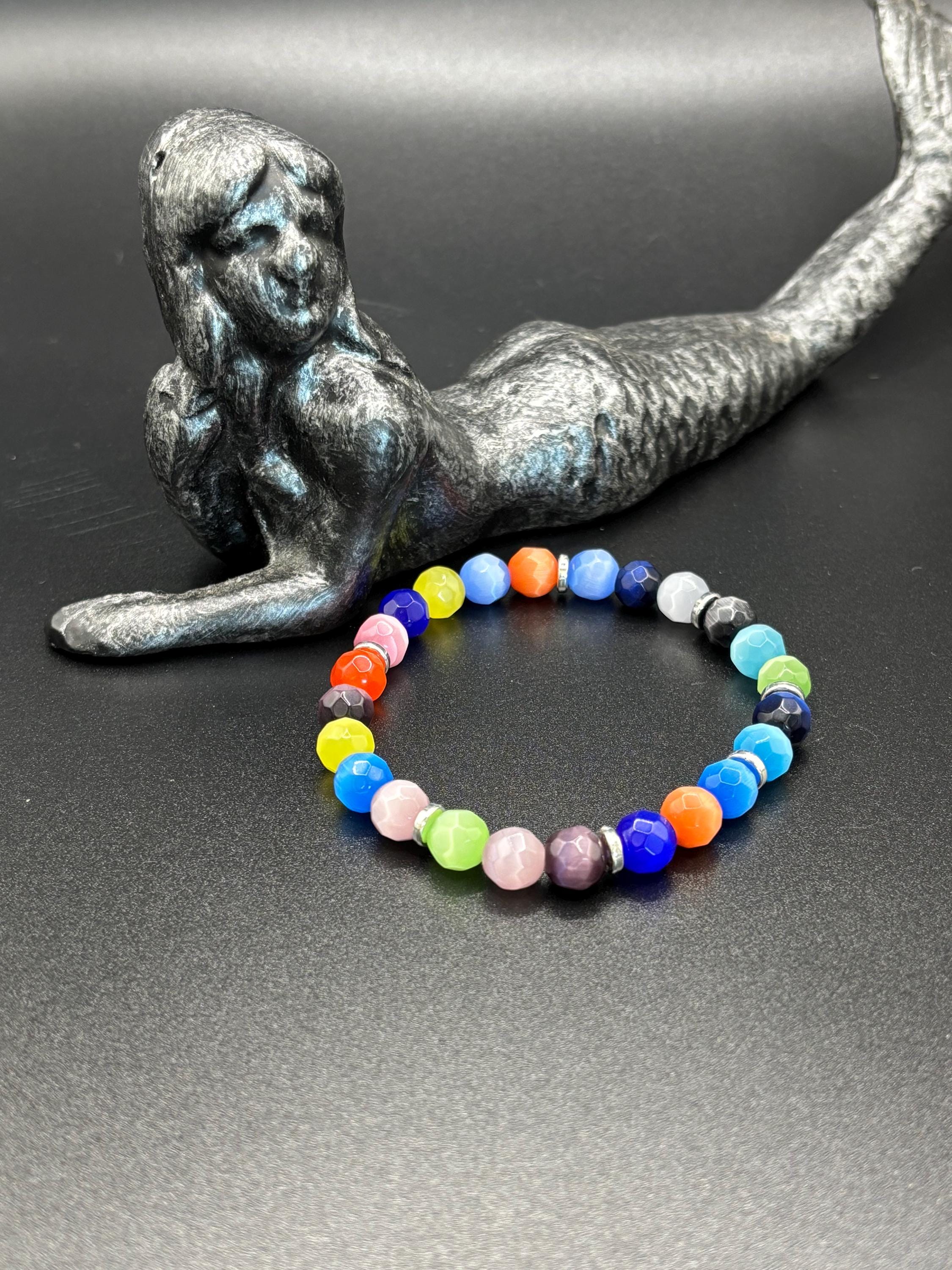 Faceted cats eye gemstone bracelet with pretty round beads.