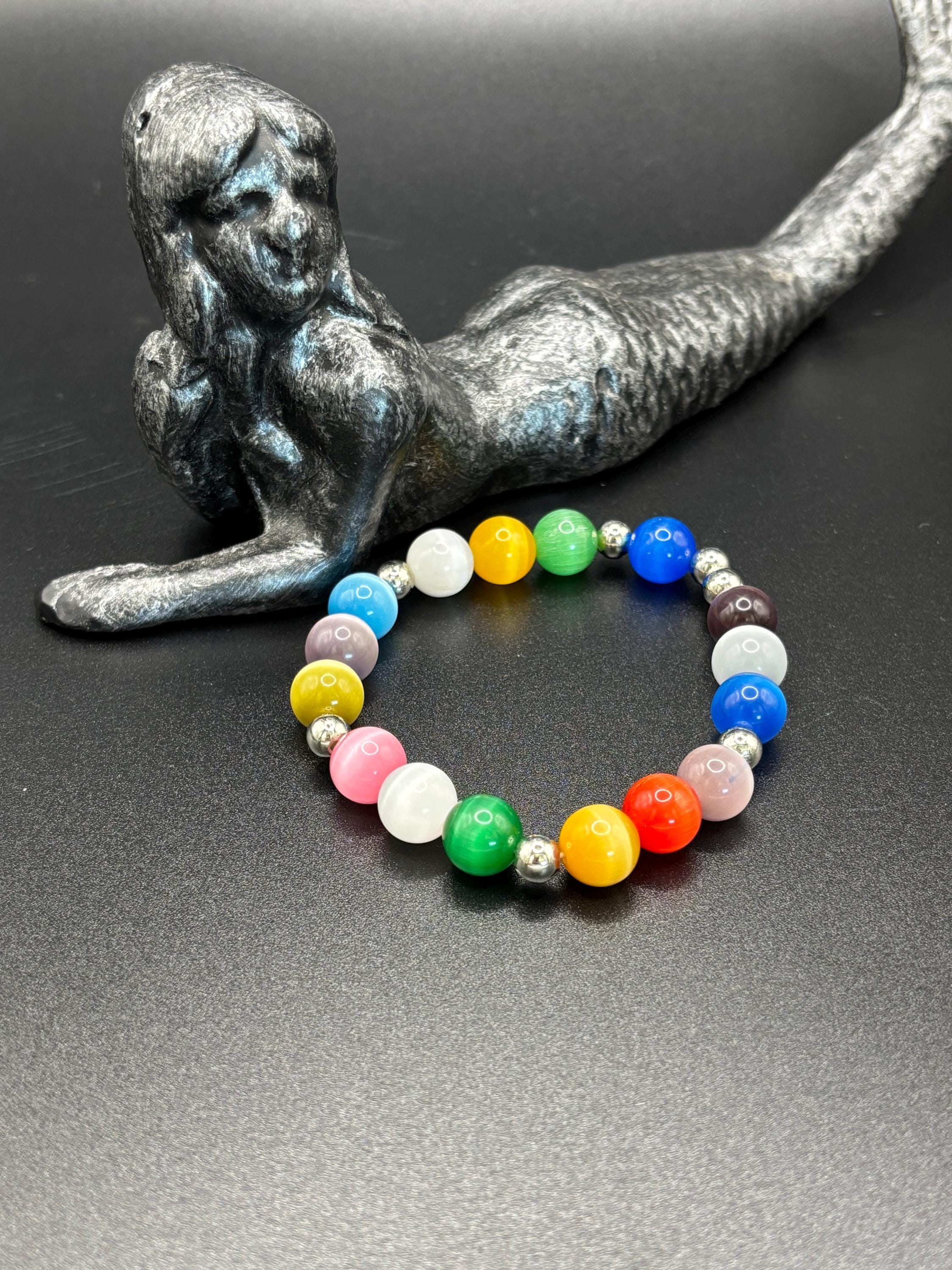 Colorful cats eye gemstone bracelet with pretty round beads.
