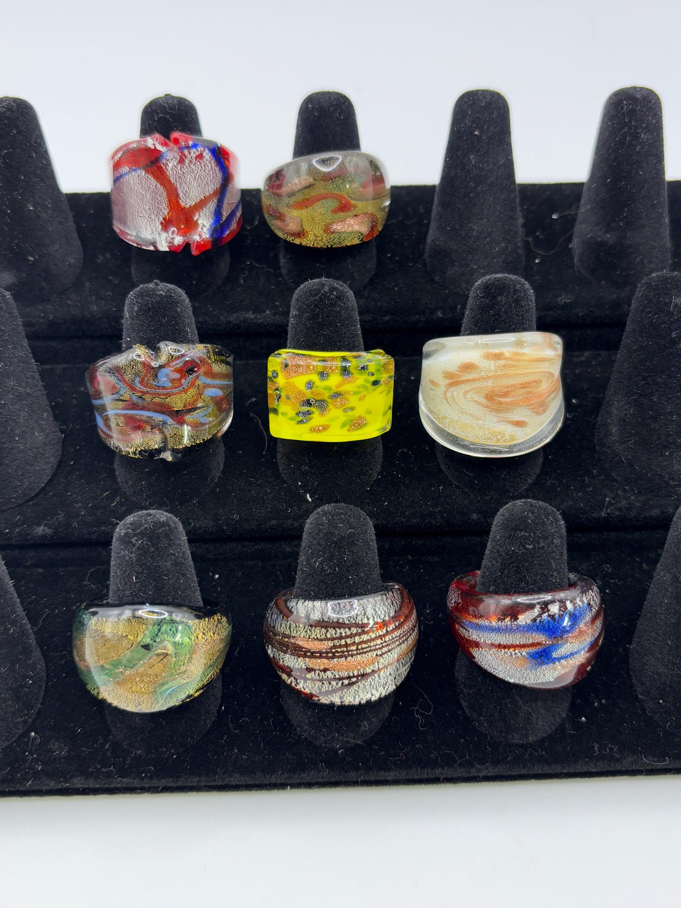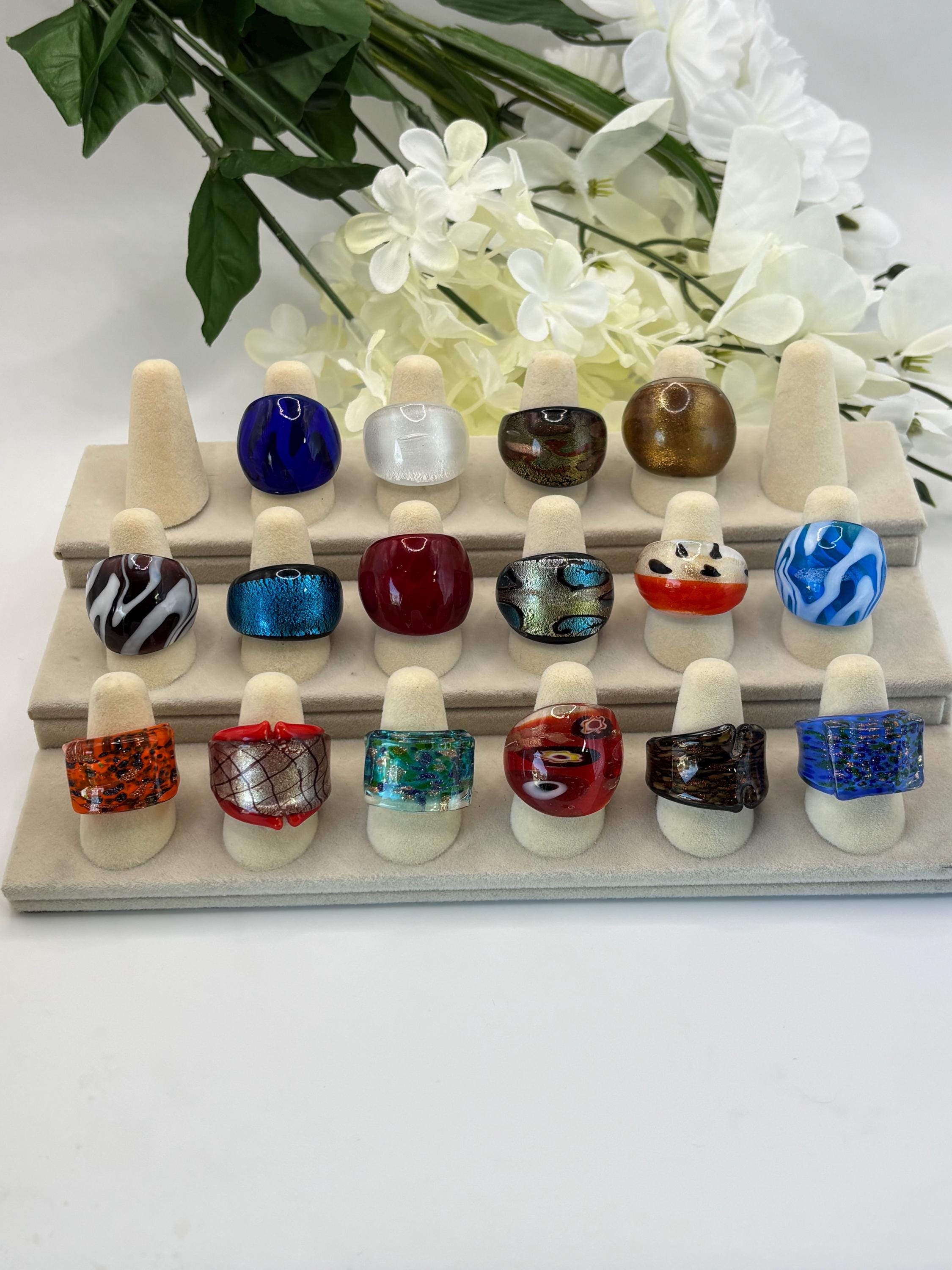 There will be many options by style, color and ring type. There are Millefiori designs as well as Murano inspired glass rings to chose from.