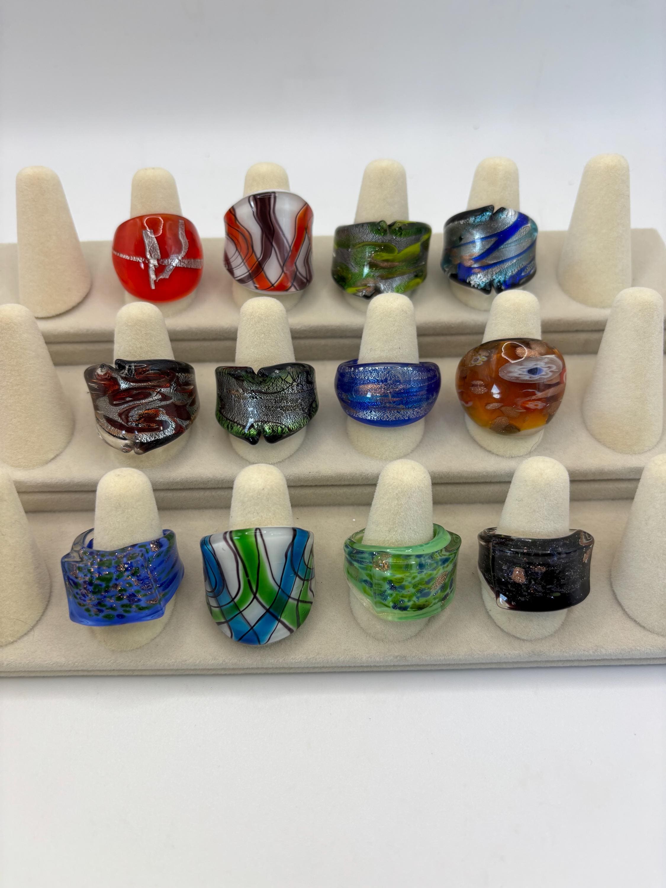 There will be many options by style, color and ring type. There are Millefiori designs as well as Murano inspired glass rings to chose from.