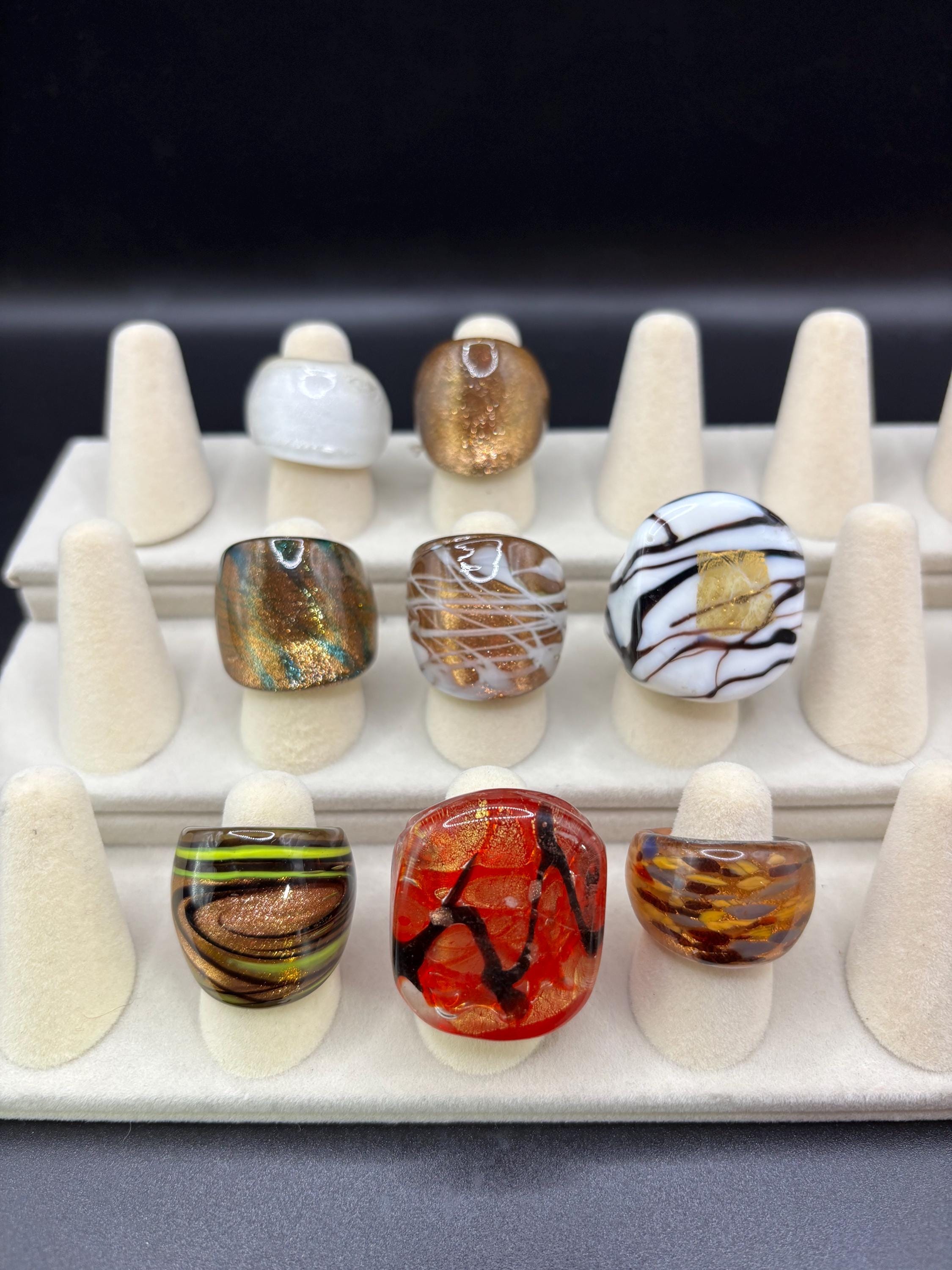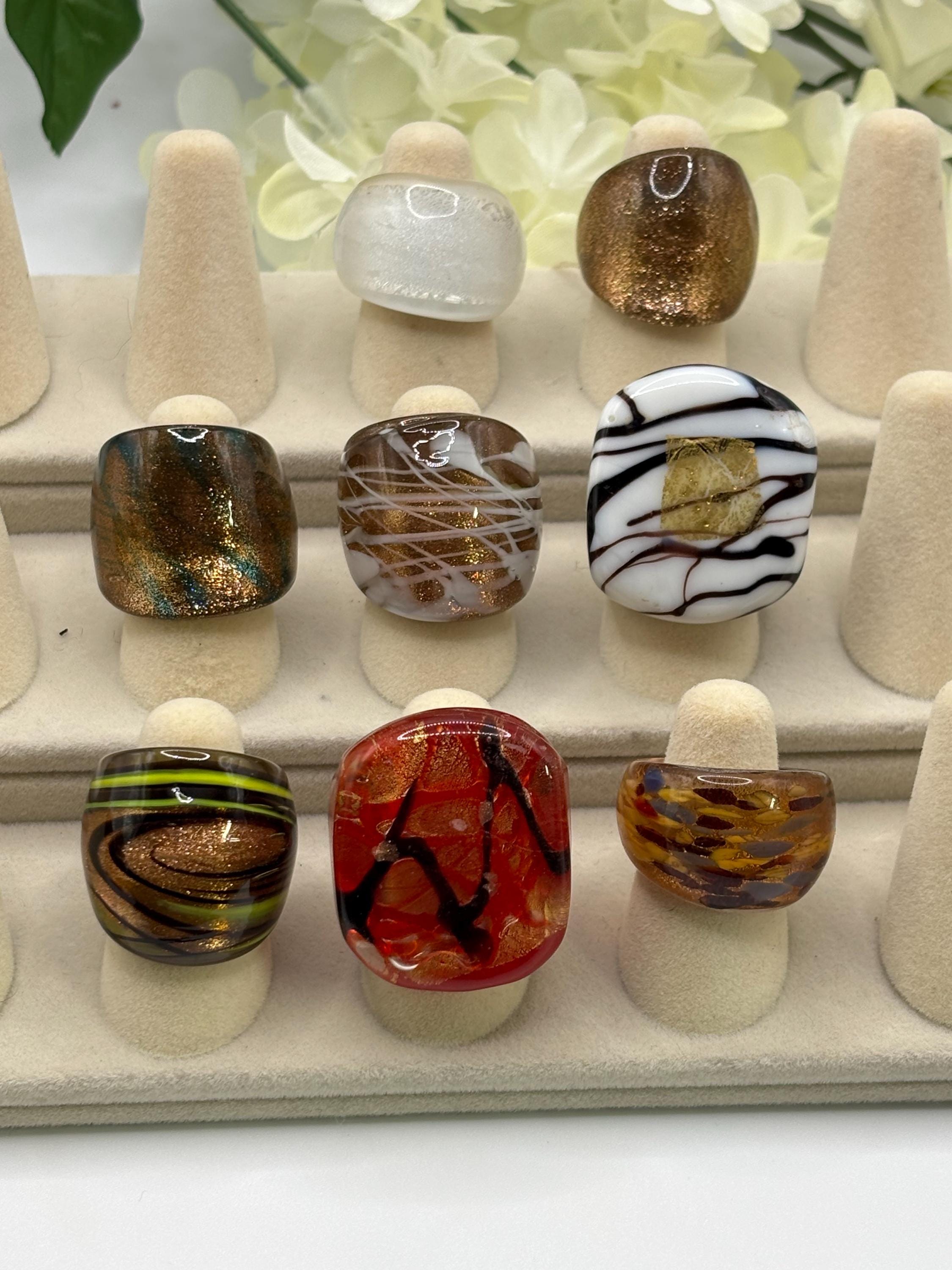 There will be many options by style, color and ring type. There are Millefiori designs as well as Murano inspired glass rings to chose from.