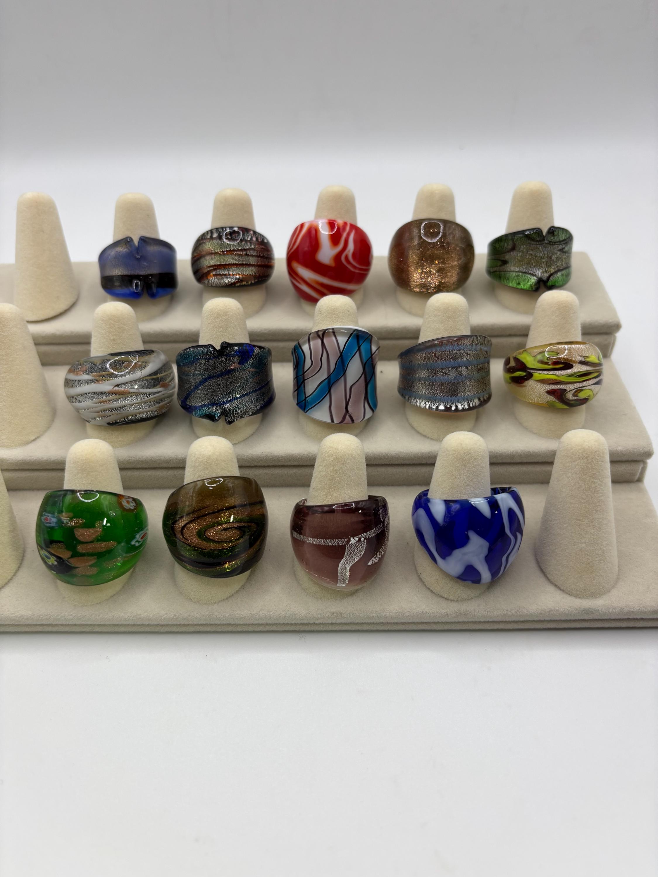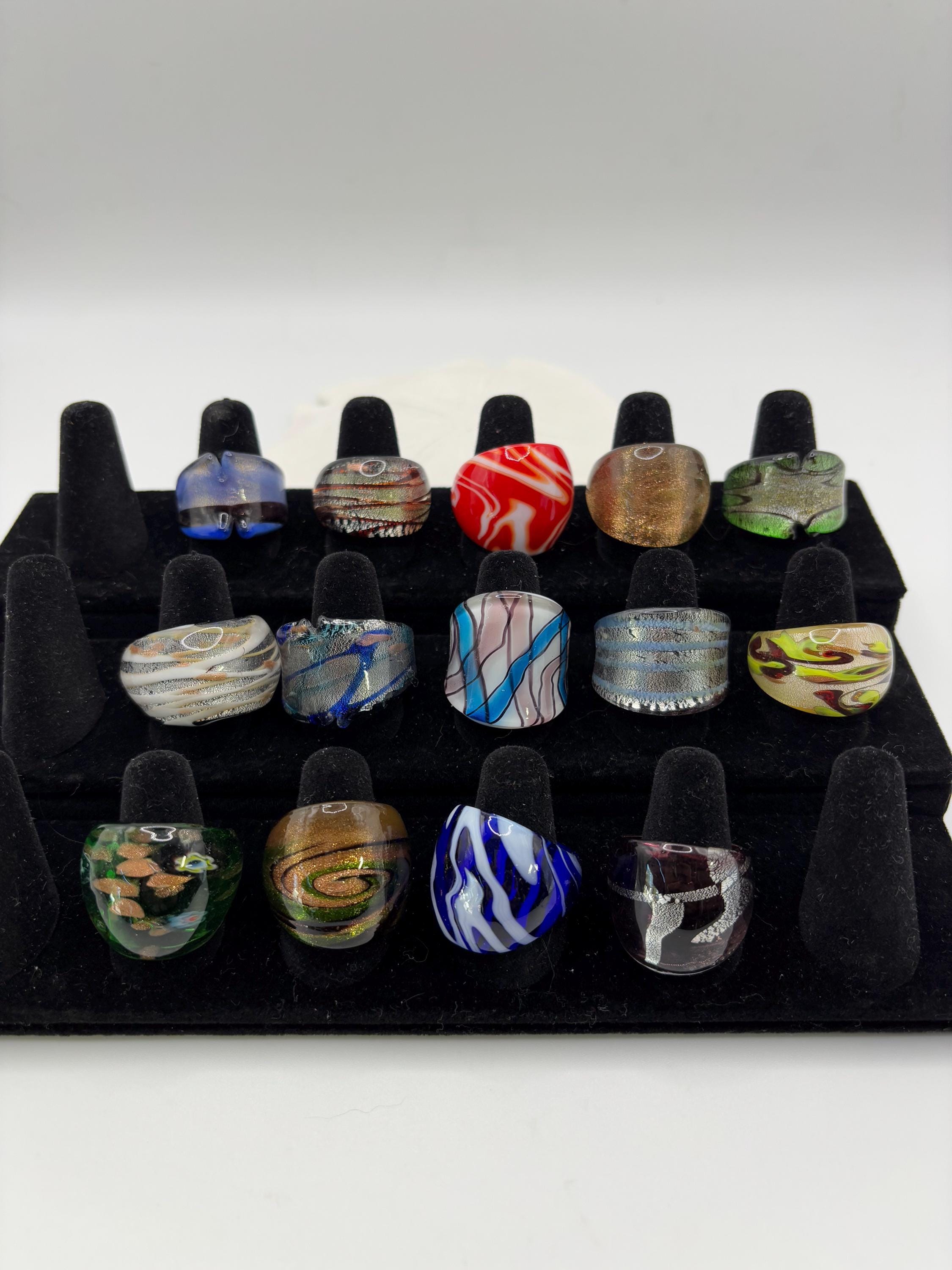 There will be many options by style, color and ring type. There are Millefiori designs as well as Murano inspired glass rings to chose from.