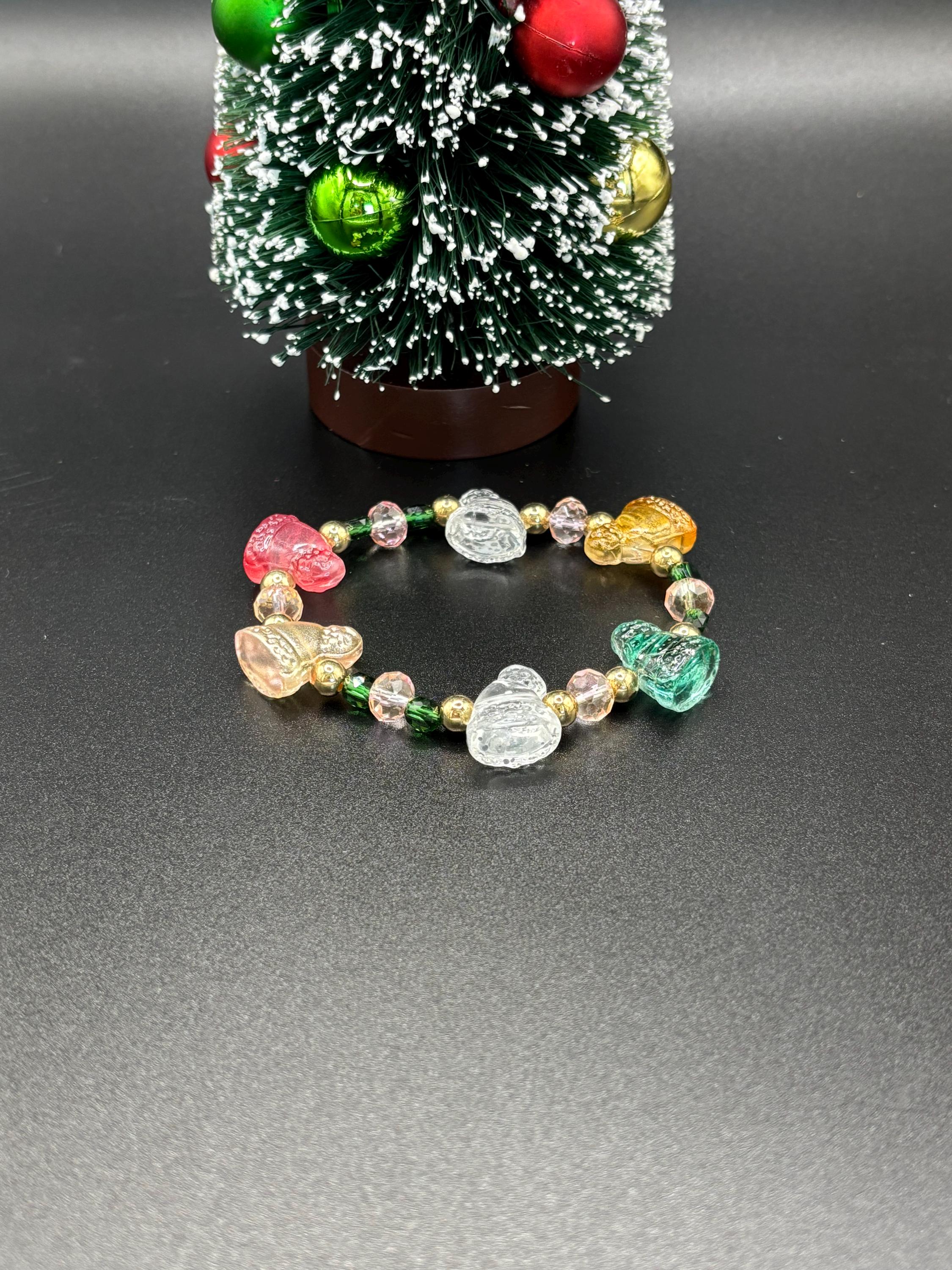This is a lamp work glass, single strand stretch bracelet. Its giving Christmas vibes and Holiday cheer.