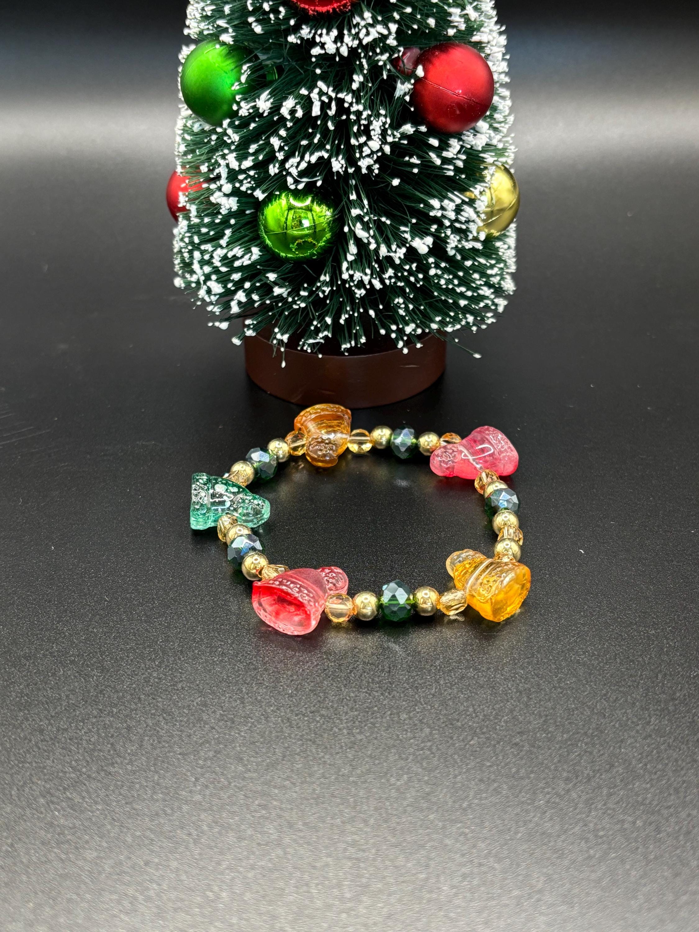 This is a lamp work glass, single strand stretch bracelet. Its giving Christmas vibes and Holiday cheer.