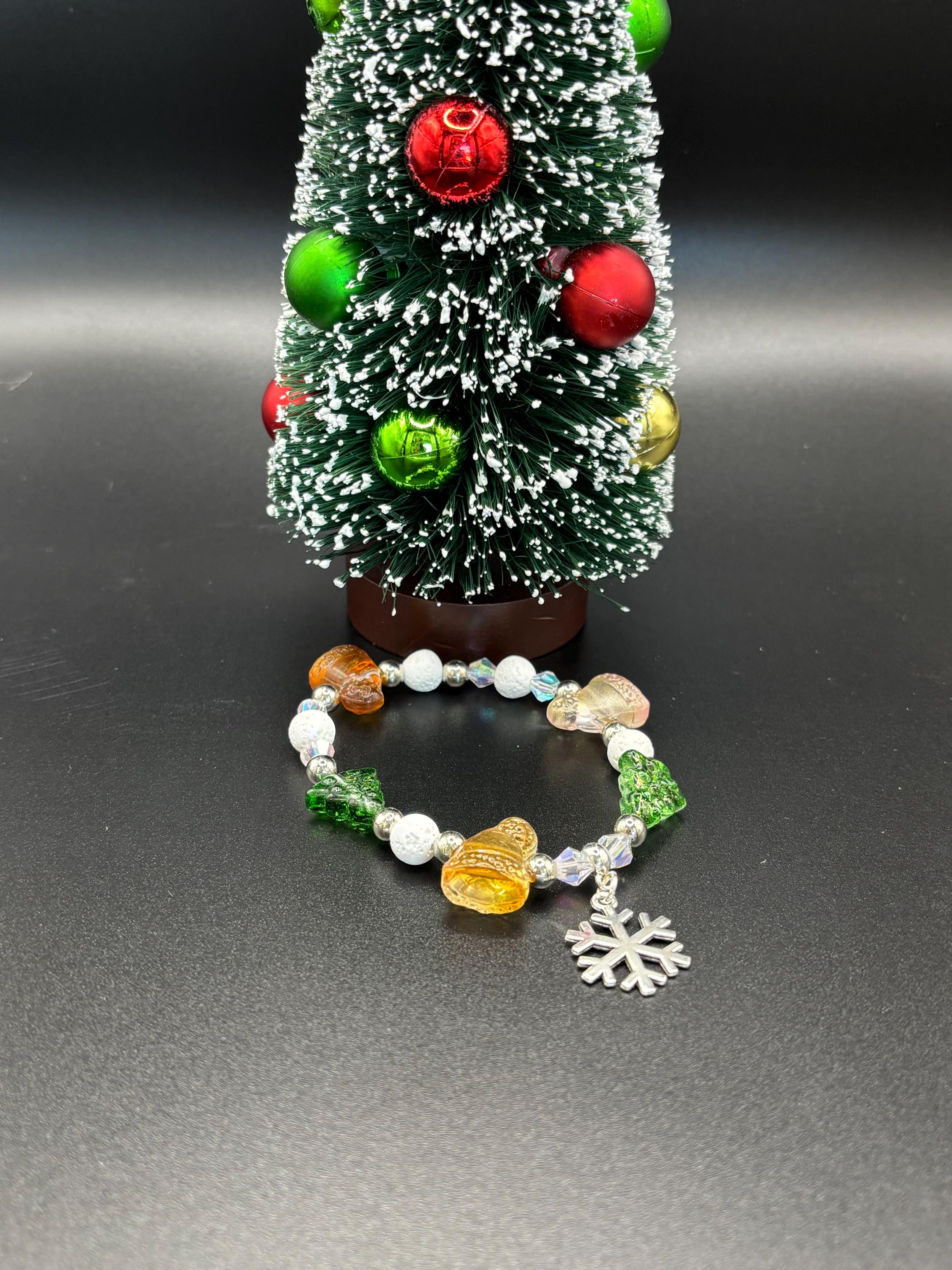 This is a lamp work glass, single strand stretch bracelet. Its giving Christmas vibes and Holiday cheer.