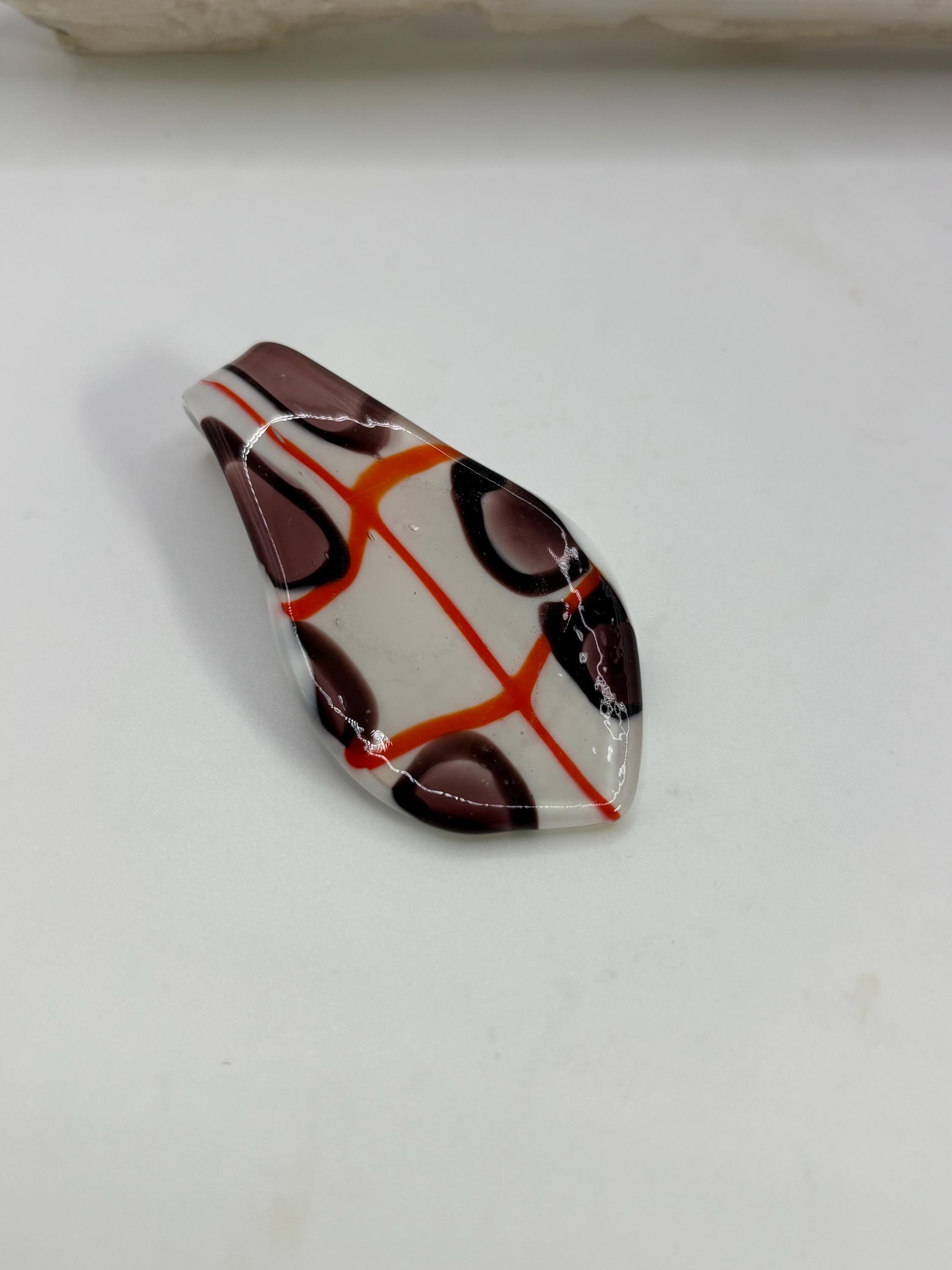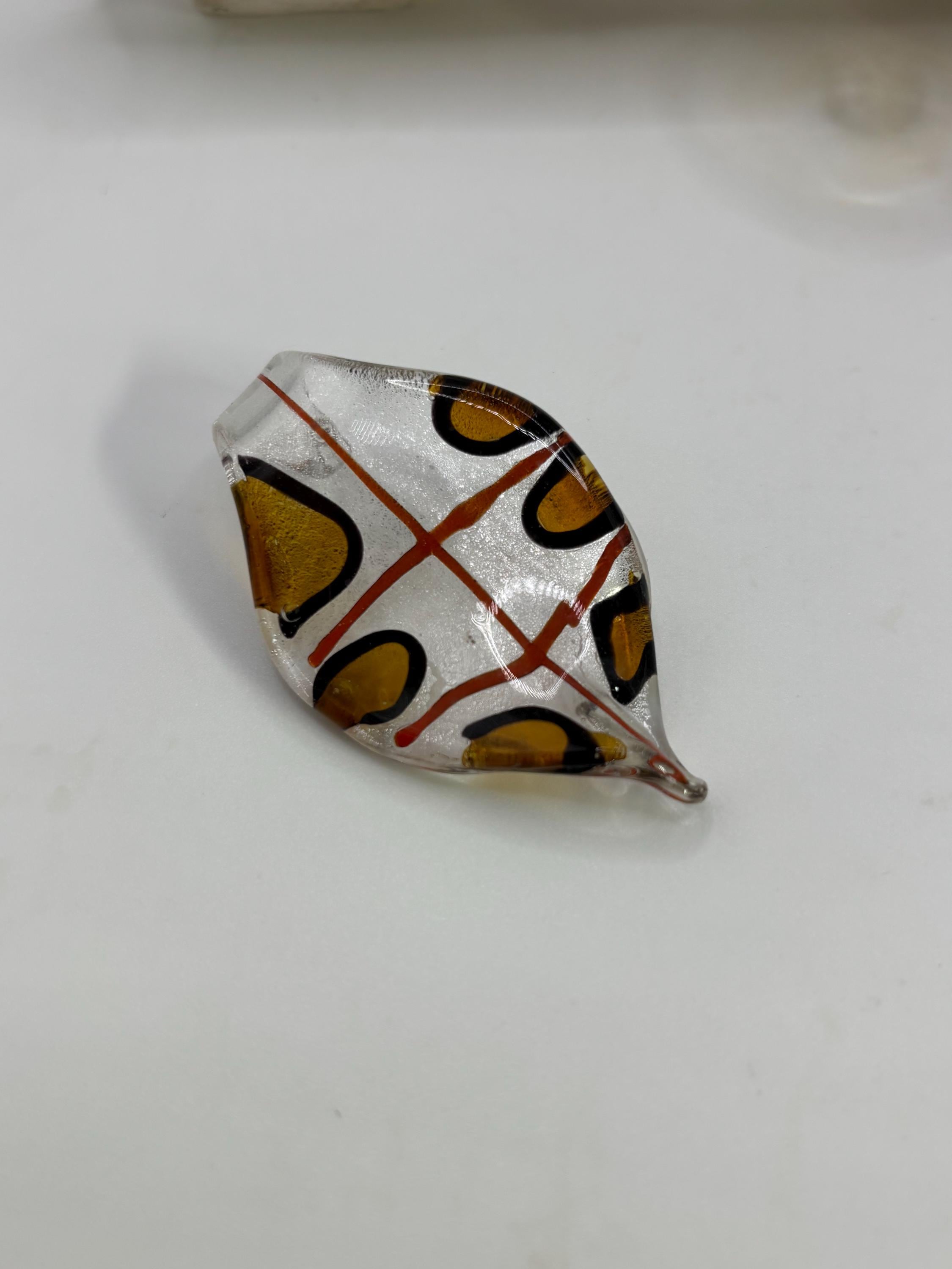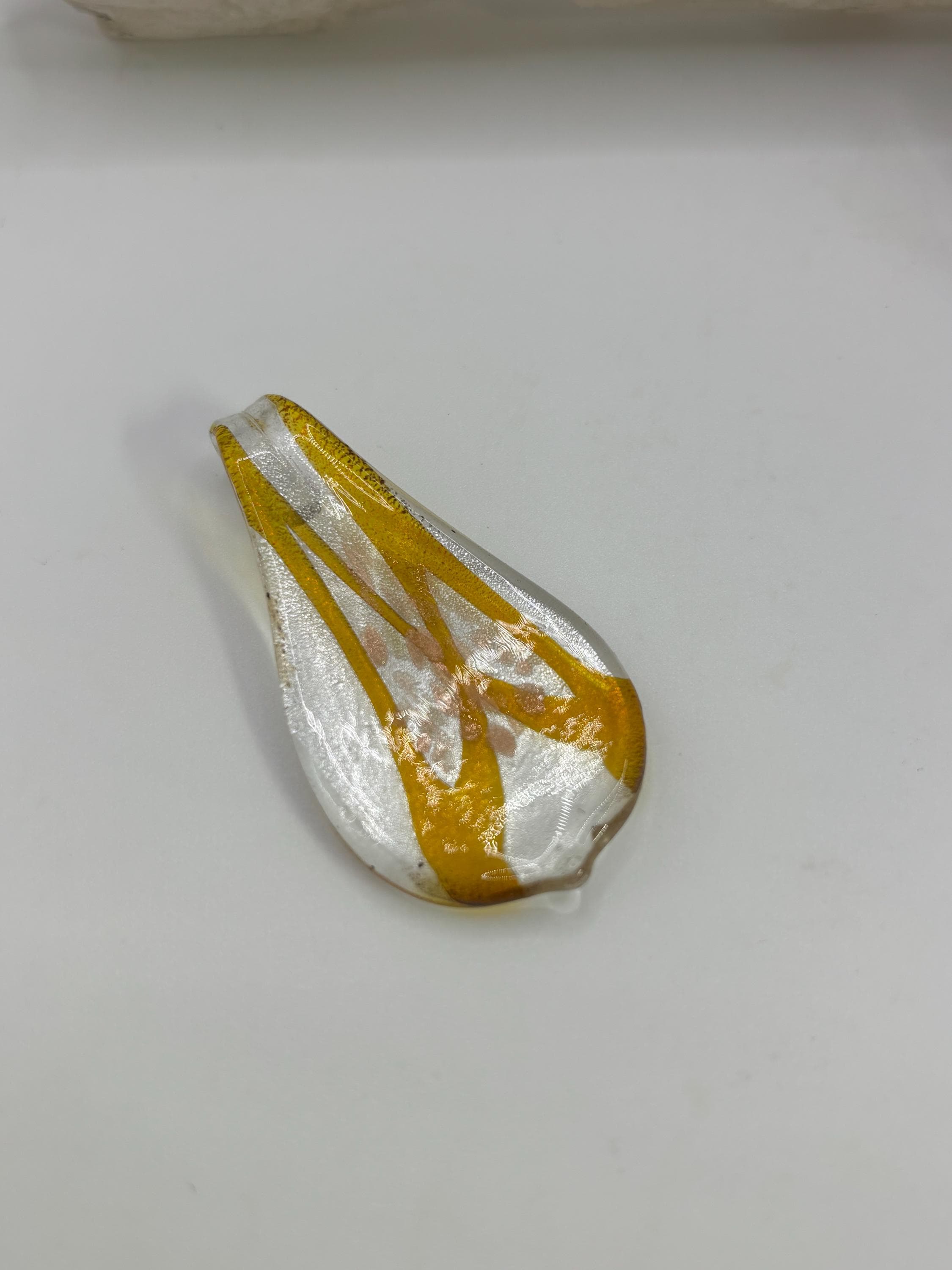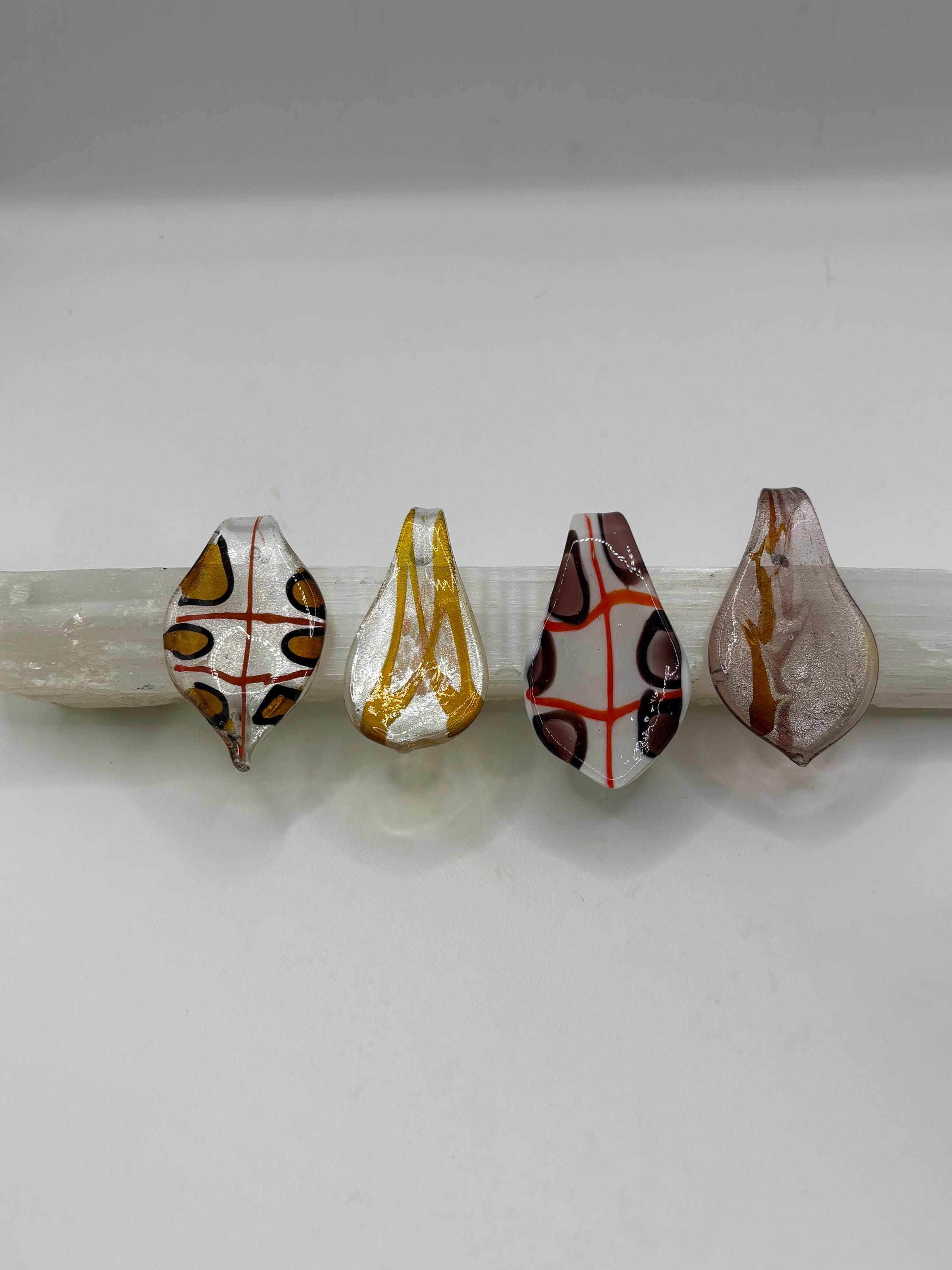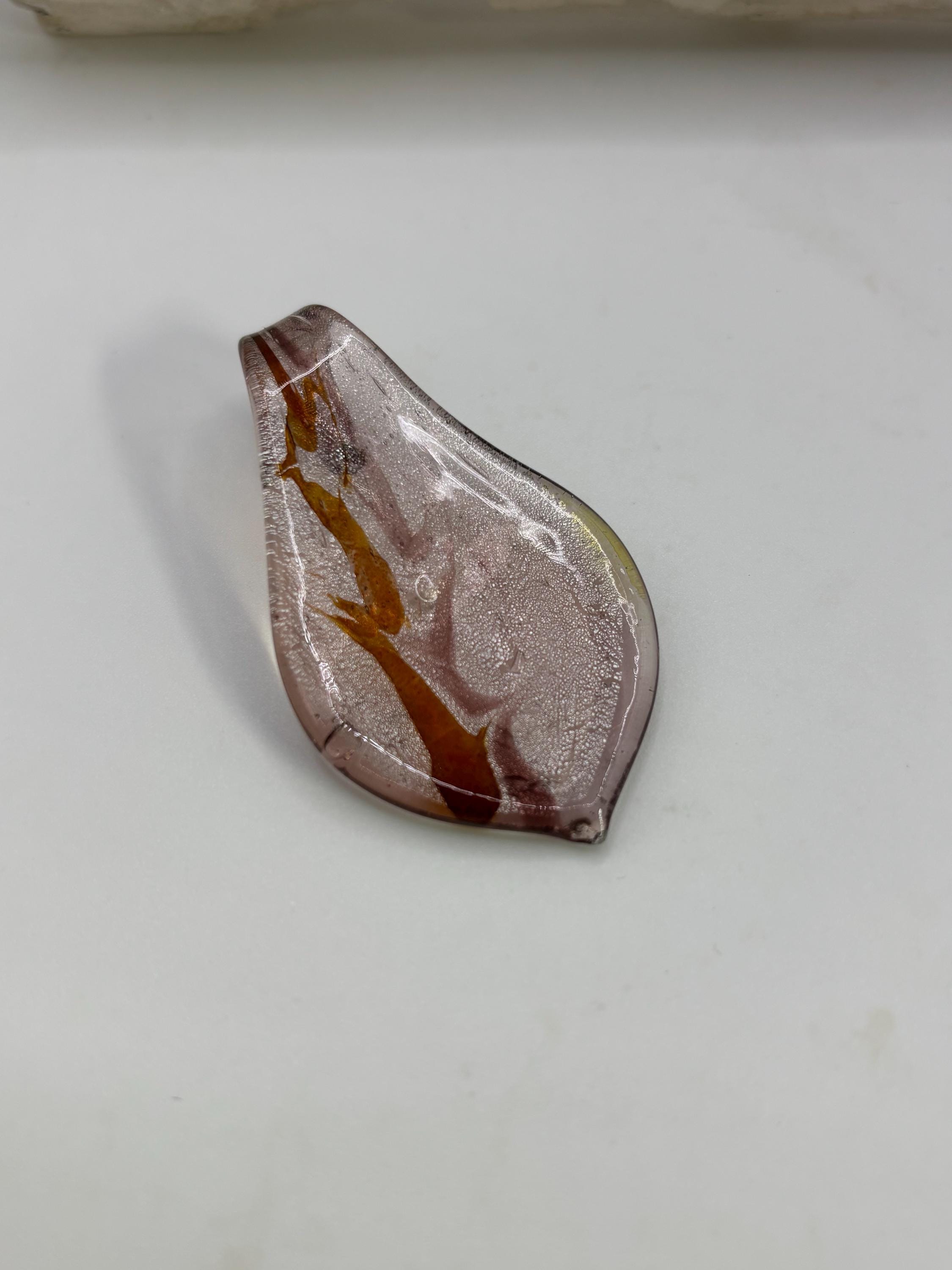 This is a Glass Lampwork leaf necklace pendant. This Murano inspired glass is a golden yellow color or a white and purple option.