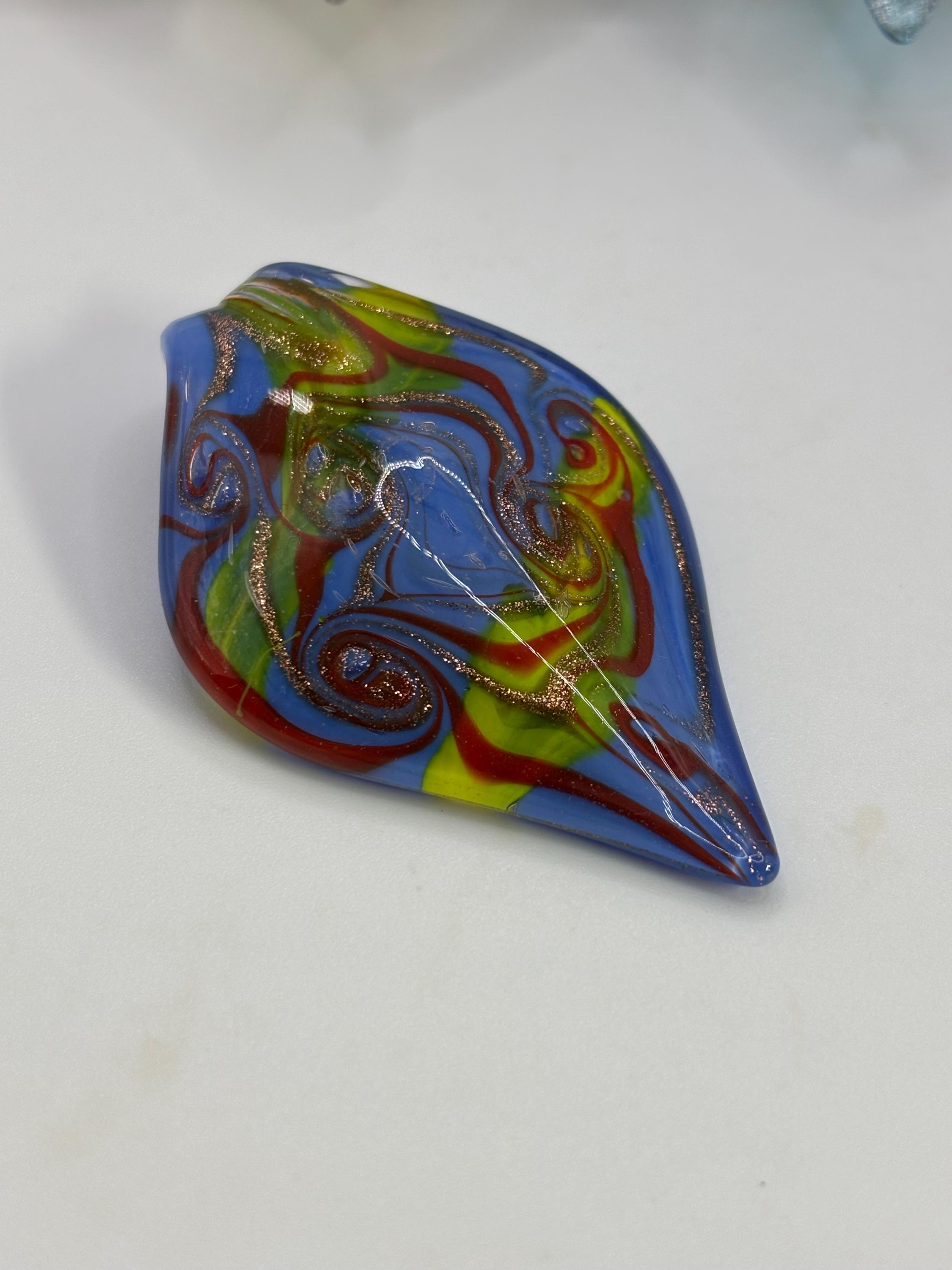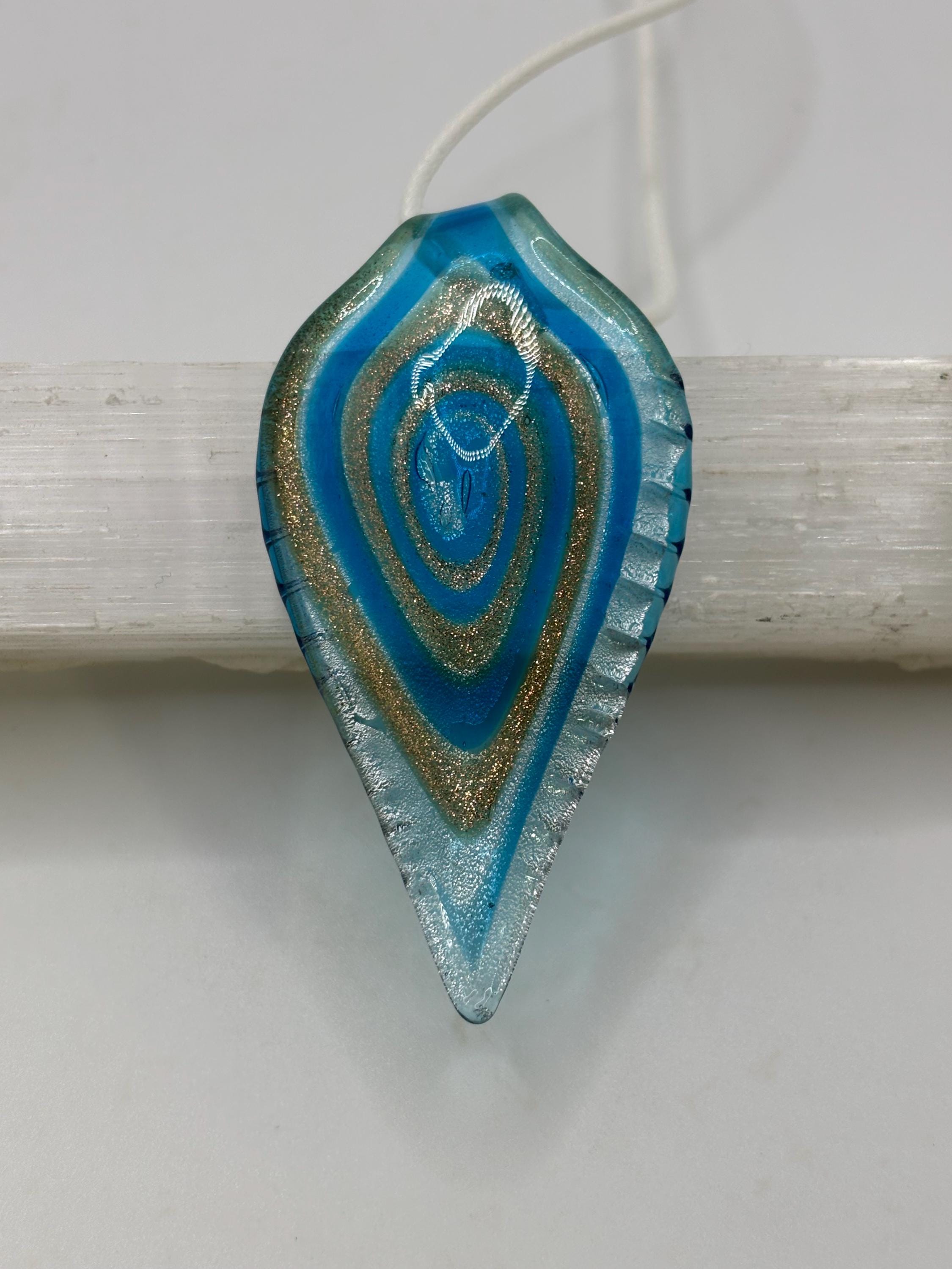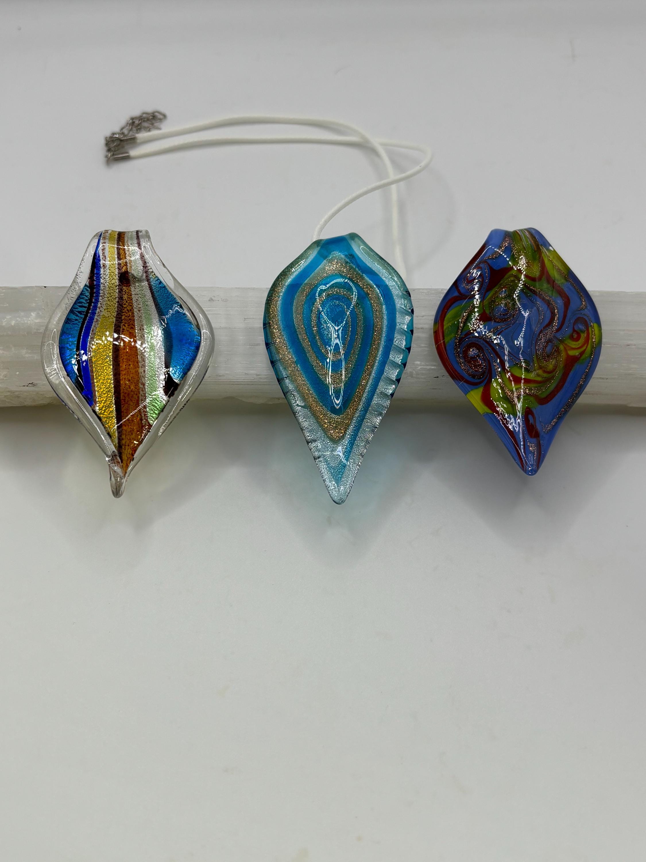 This is a Glass Lampwork leaf necklace pendant. This Murano inspired glass is definitely giving off a retro vibe!