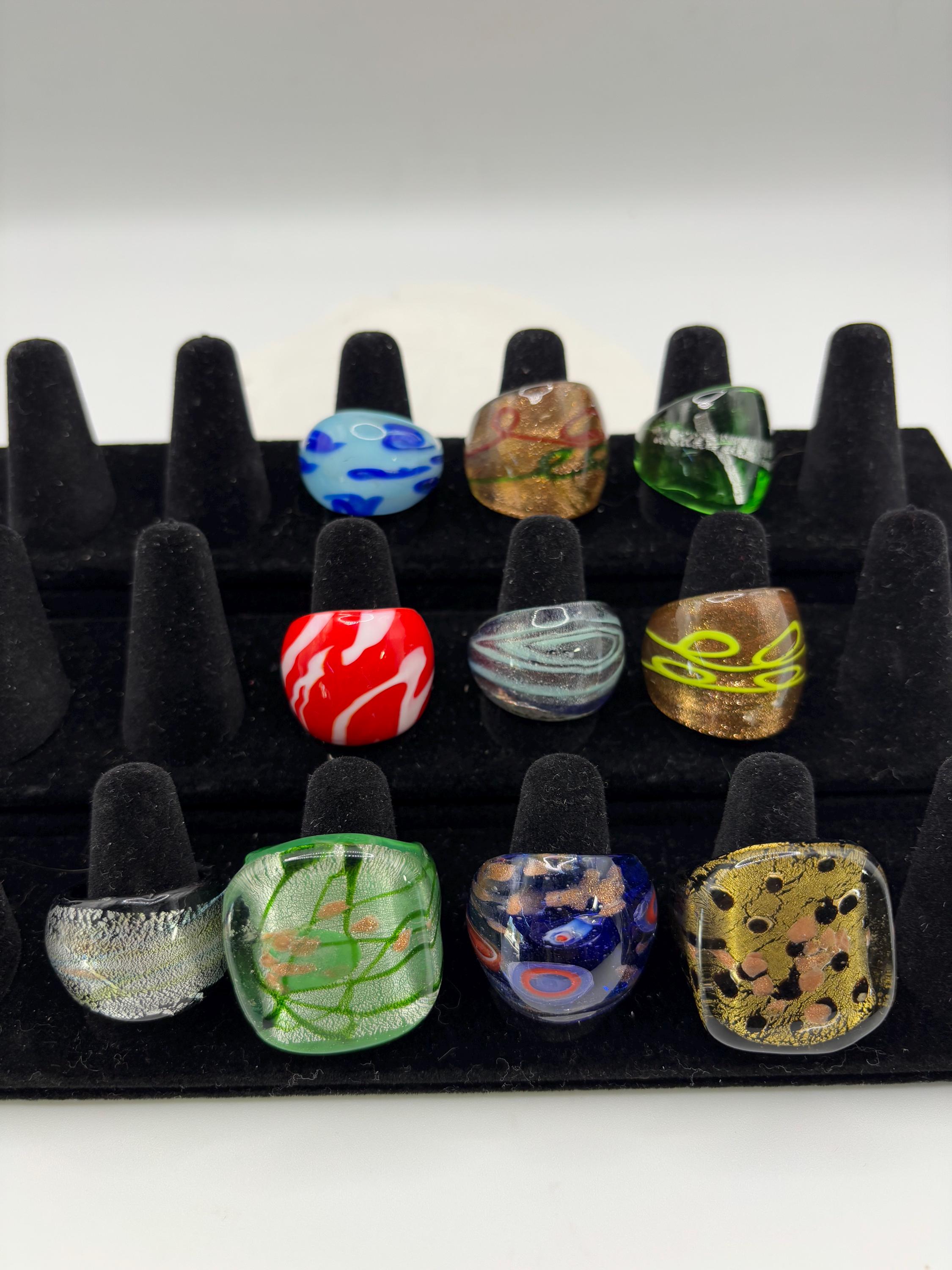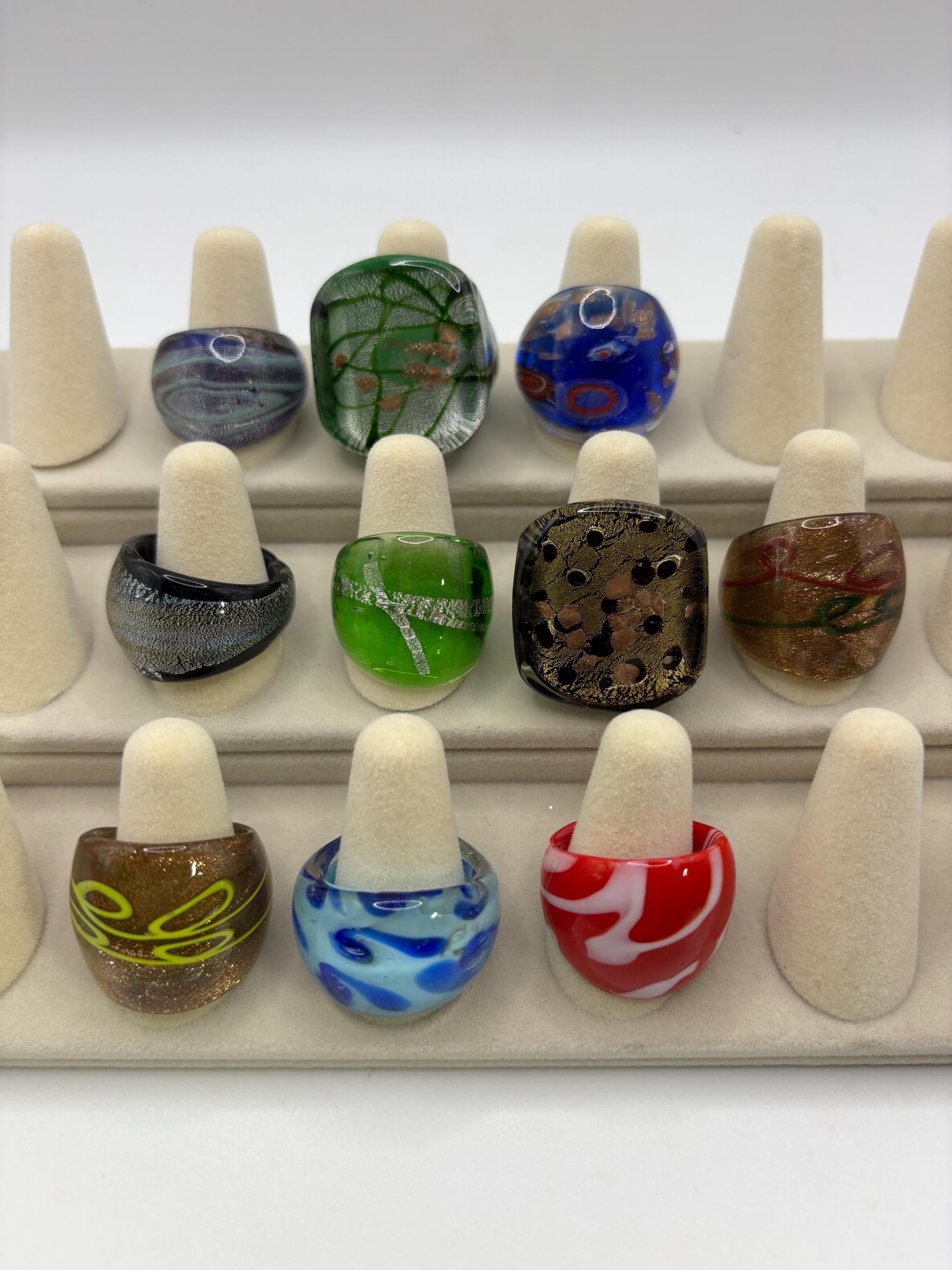 There will be many options by style, color and ring type. There are Millefiori designs as well as Murano inspired glass rings to chose from.