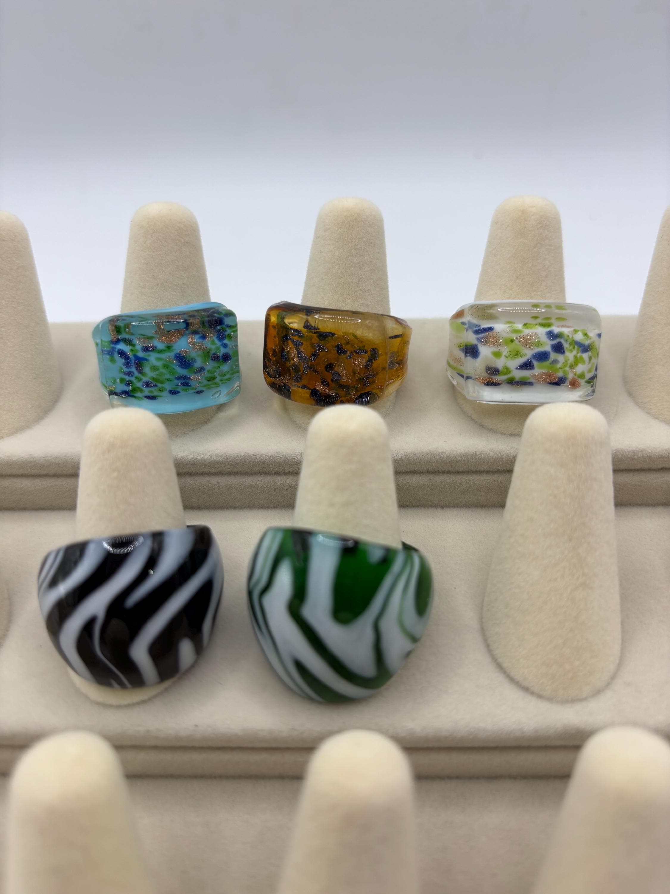 This group includes a Murano Inspired blue glass wrap around ring. So Unique! 2 other options in this size