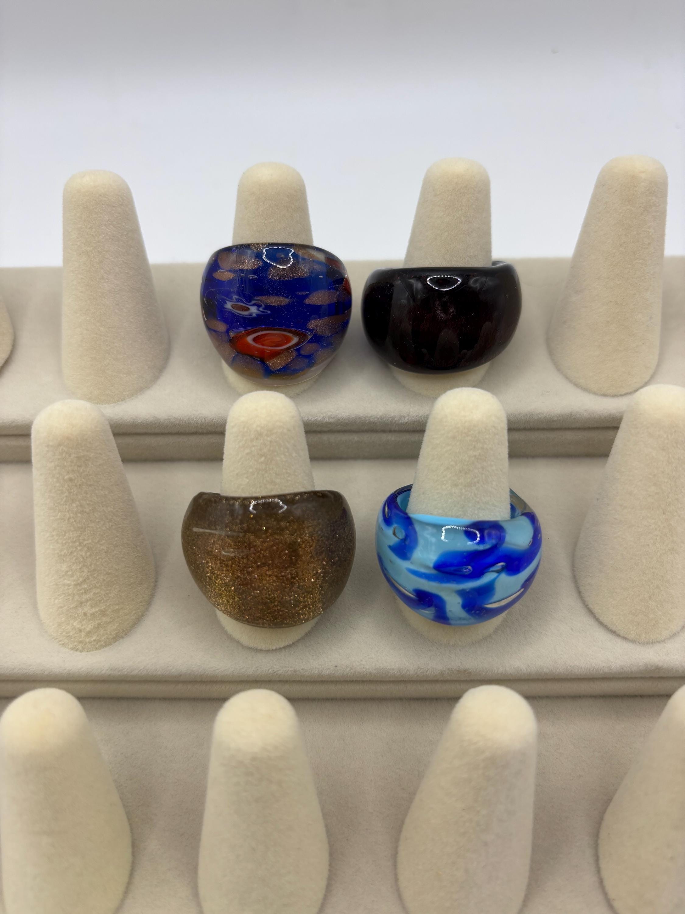 There will be many options by style, color and ring type. There are Millefiori designs as well as Murano inspired glass rings to chose from.