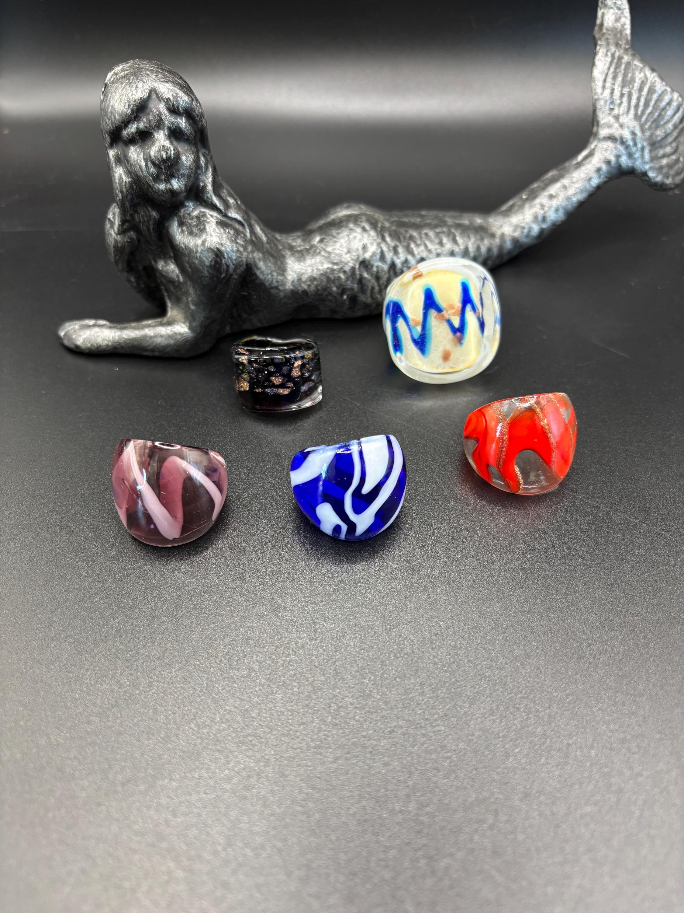 There will be many options by style, color and ring type. There are Millefiori designs as well as Murano inspired glass rings to chose from.
