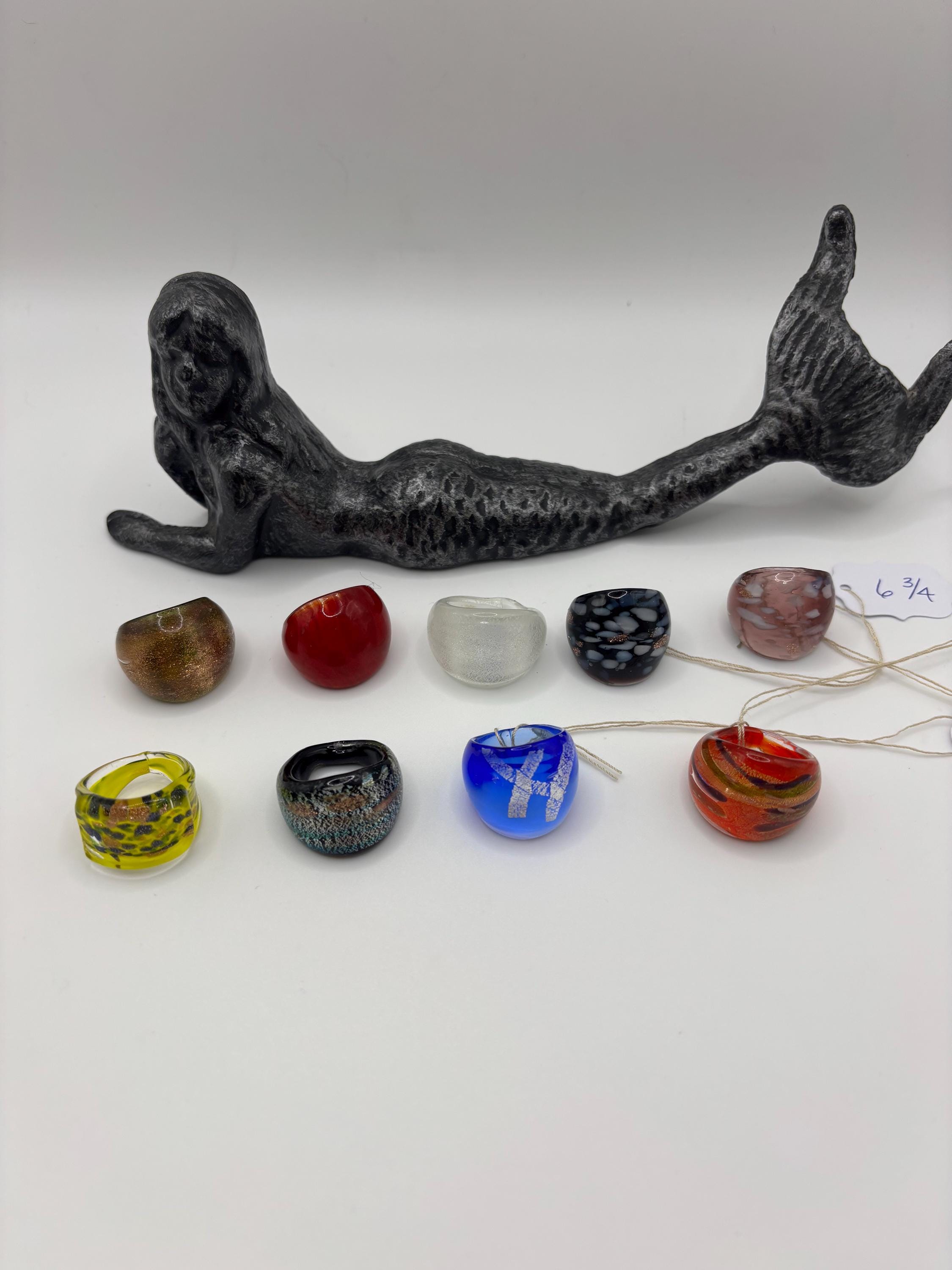 There will be many options by style, color and ring type. There are Millefiori designs as well as Murano inspired glass rings to chose from.