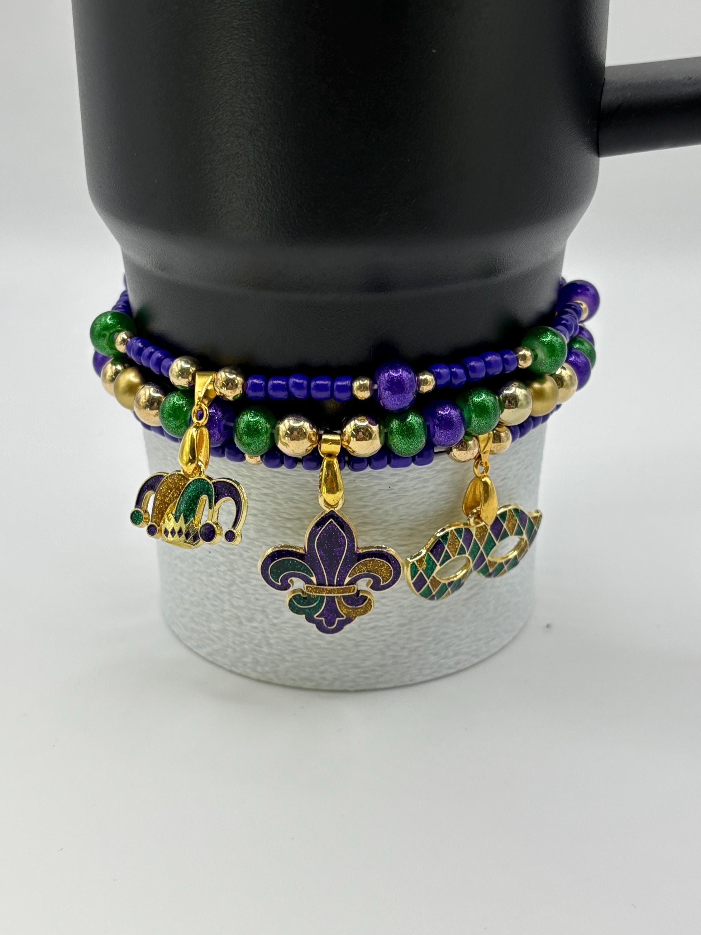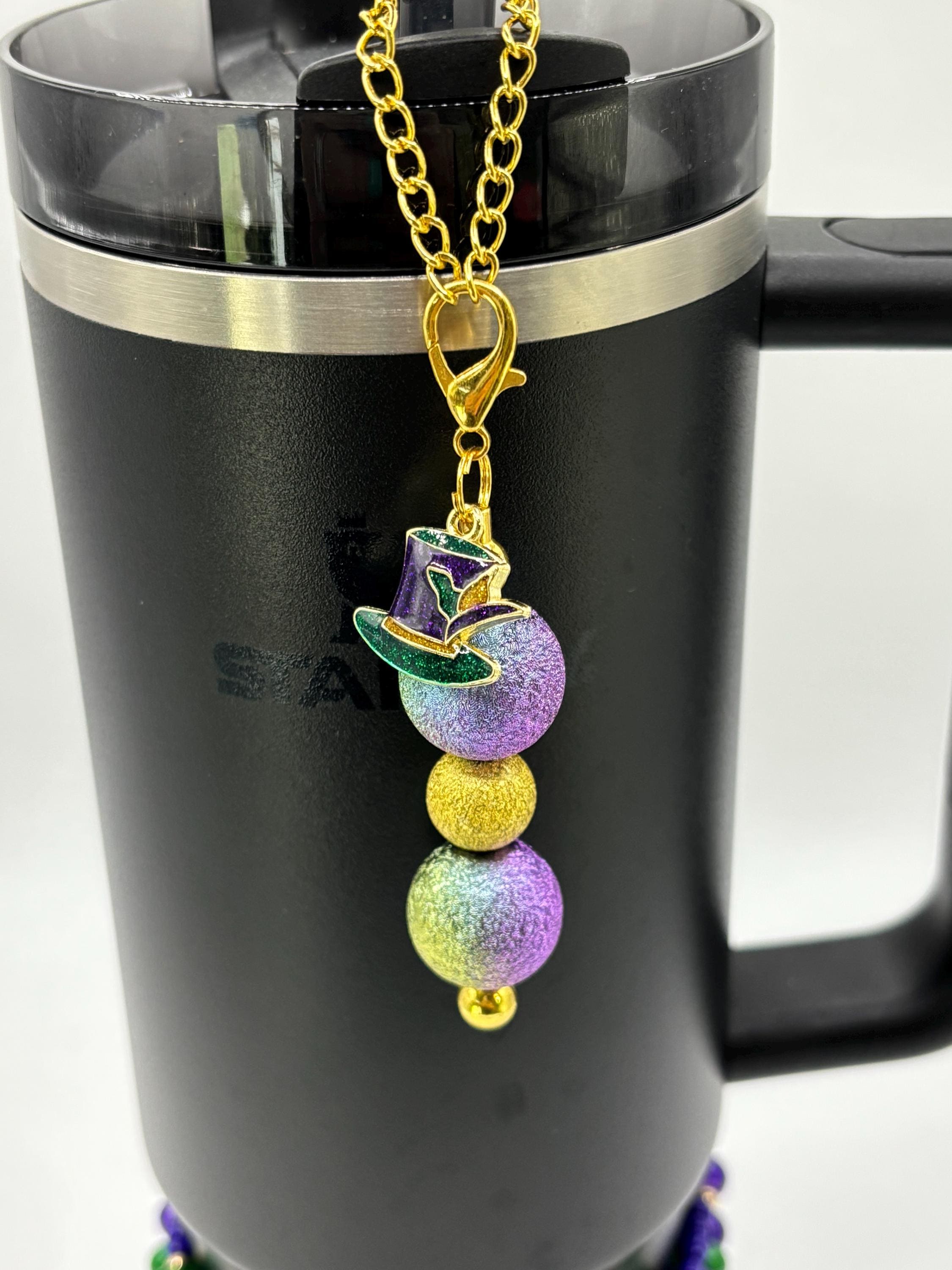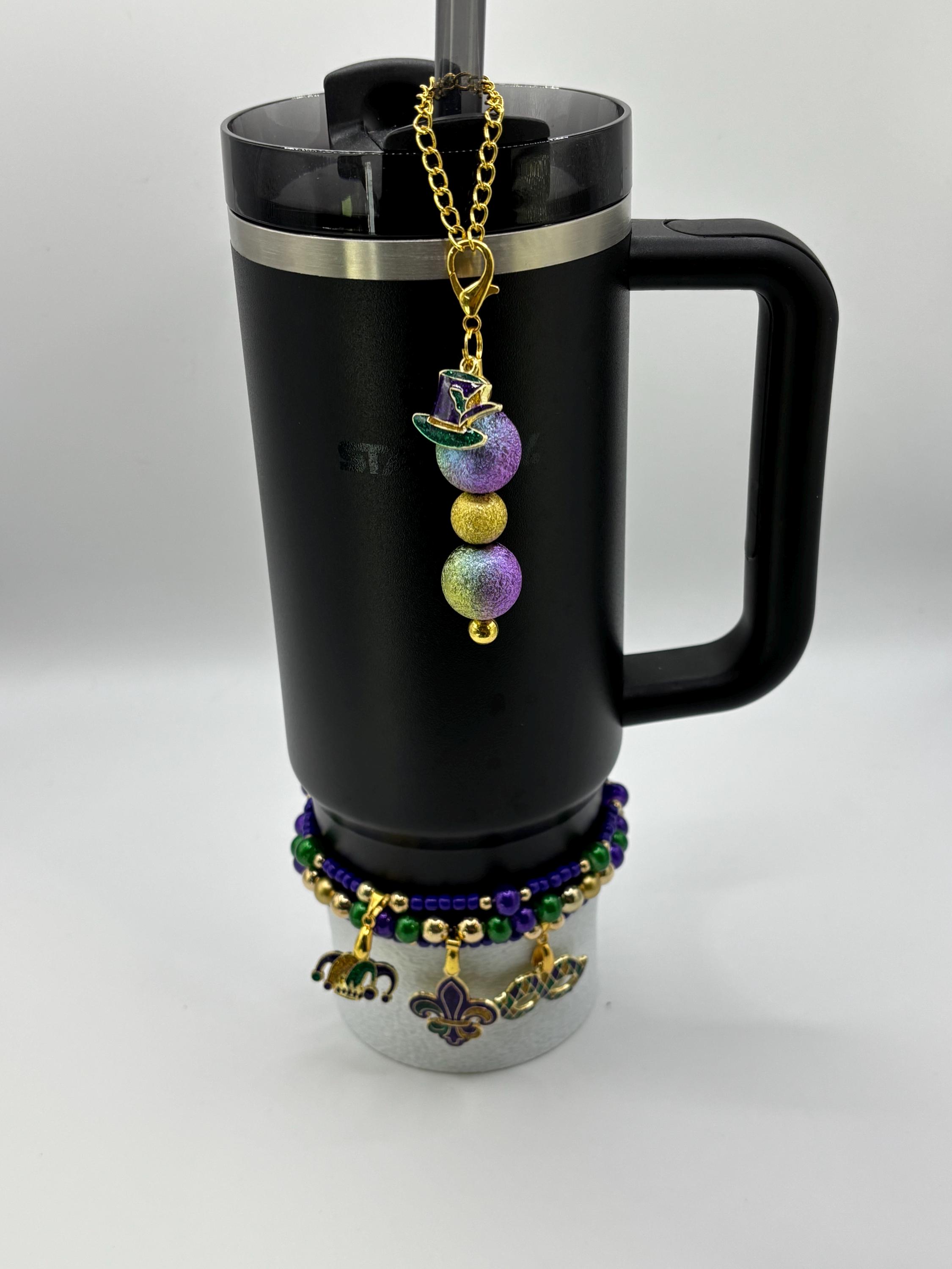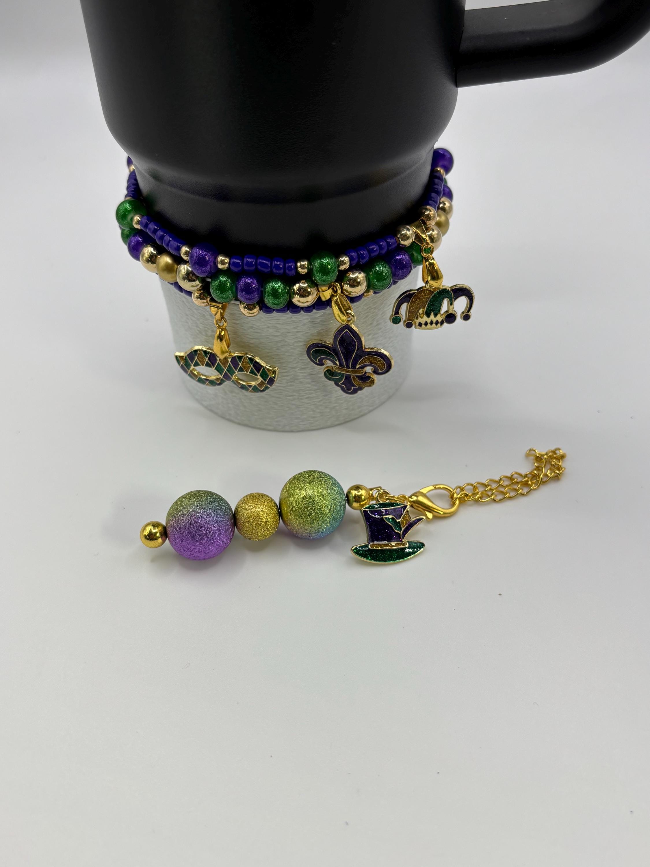 This festive Mardi Gras straw charm strand is paired with 3 strands of beads and is made for your Tumbler. It is shown on a 30 Ounce Stanley. Price includes all 4 pieces.