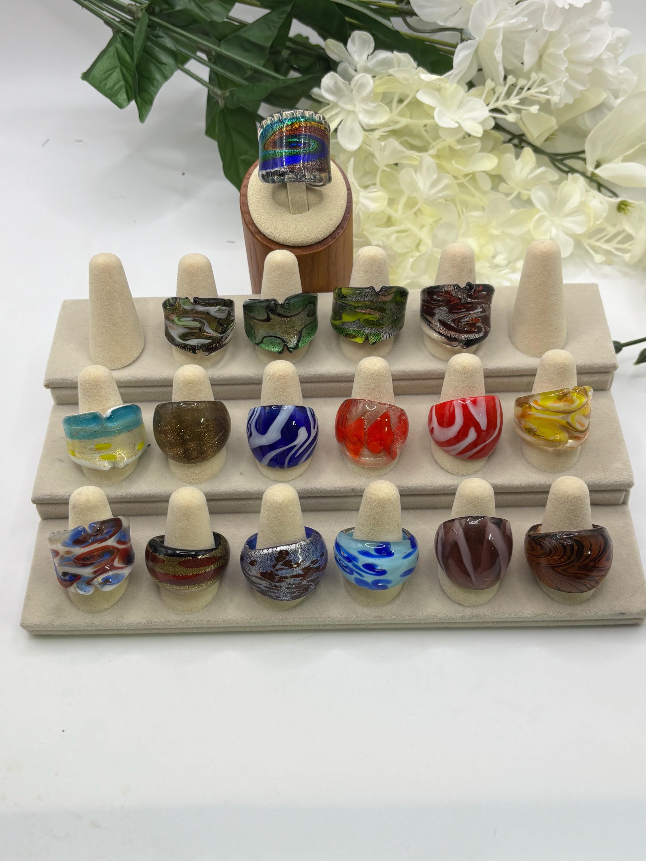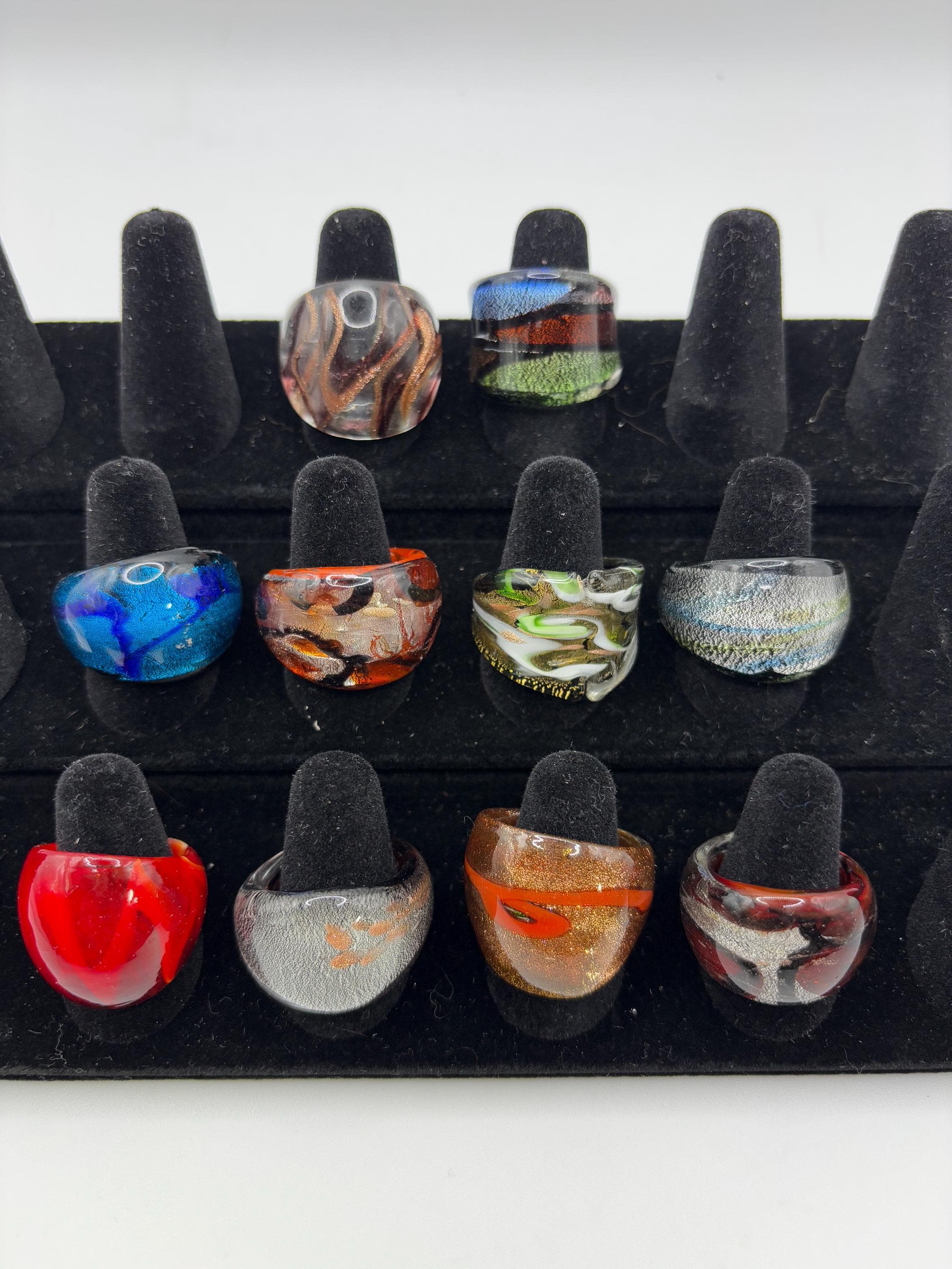 There will be many options by style, color and ring type. There are Millefiori designs as well as Murano inspired glass rings to chose from.