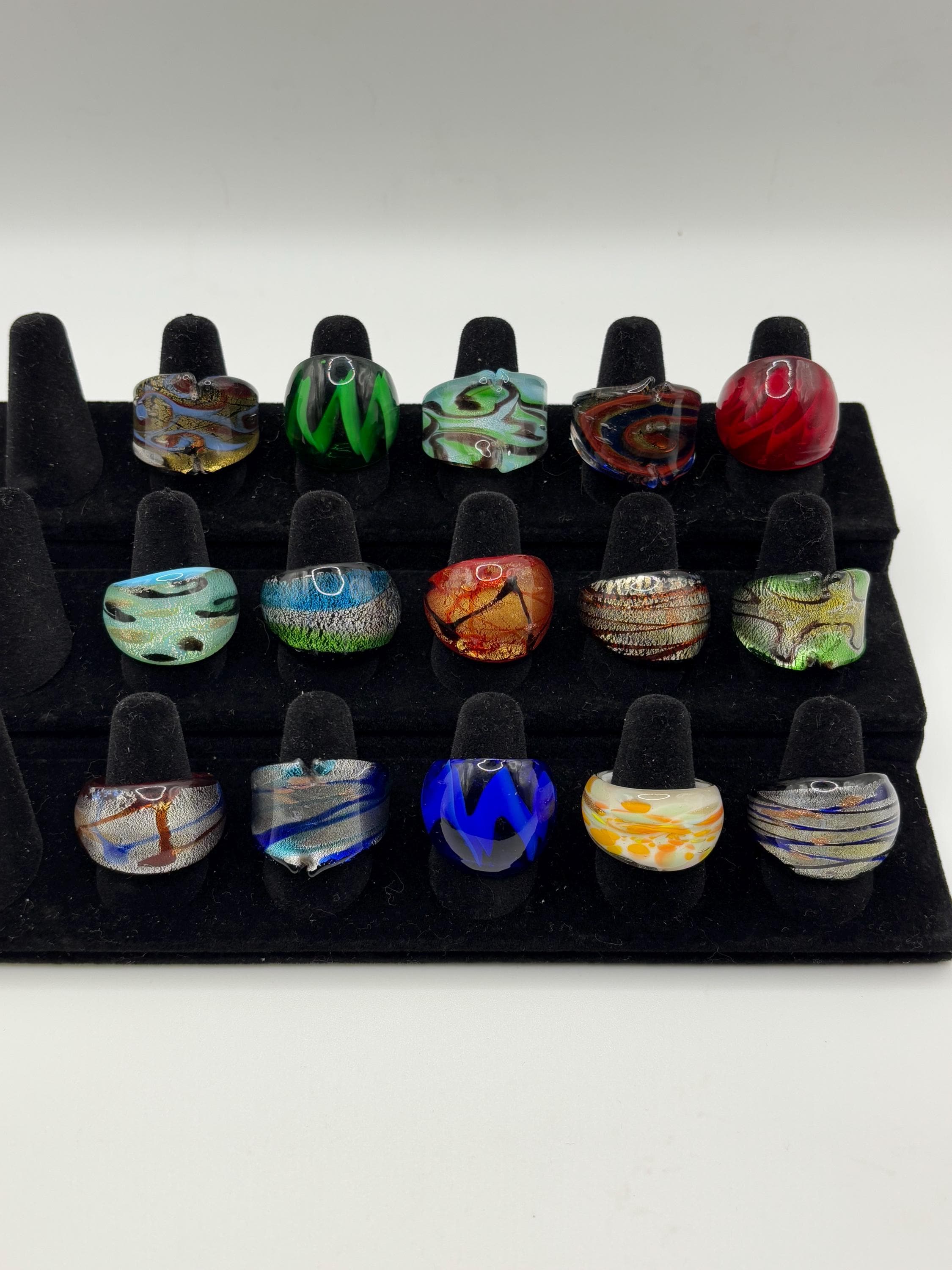 There will be many options by style, color and ring type. There are Millefiori designs as well as Murano inspired glass rings to chose from.
