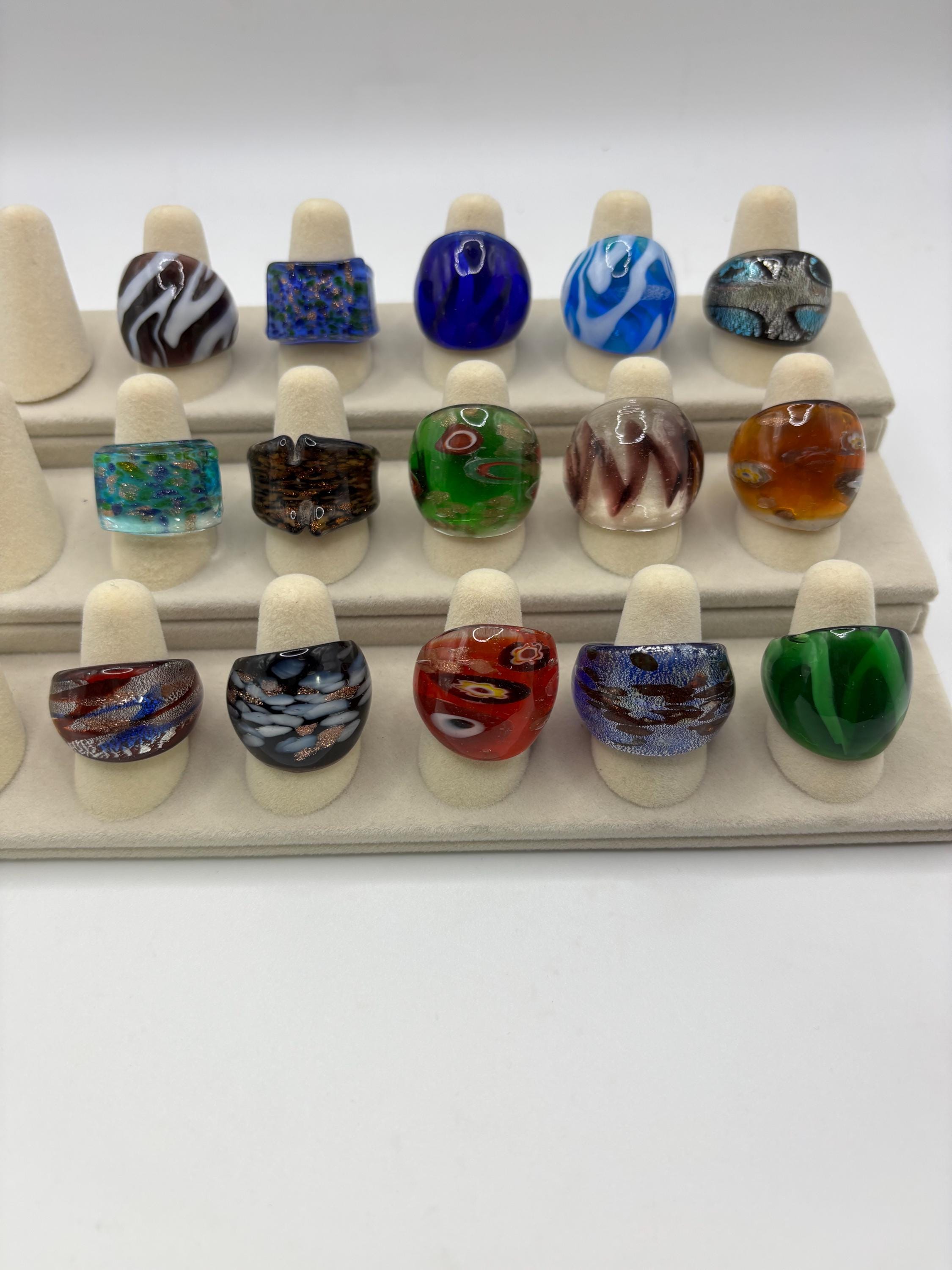 There will be many options by style, color and ring type. There are Millefiori designs as well as Murano inspired glass rings to chose from.