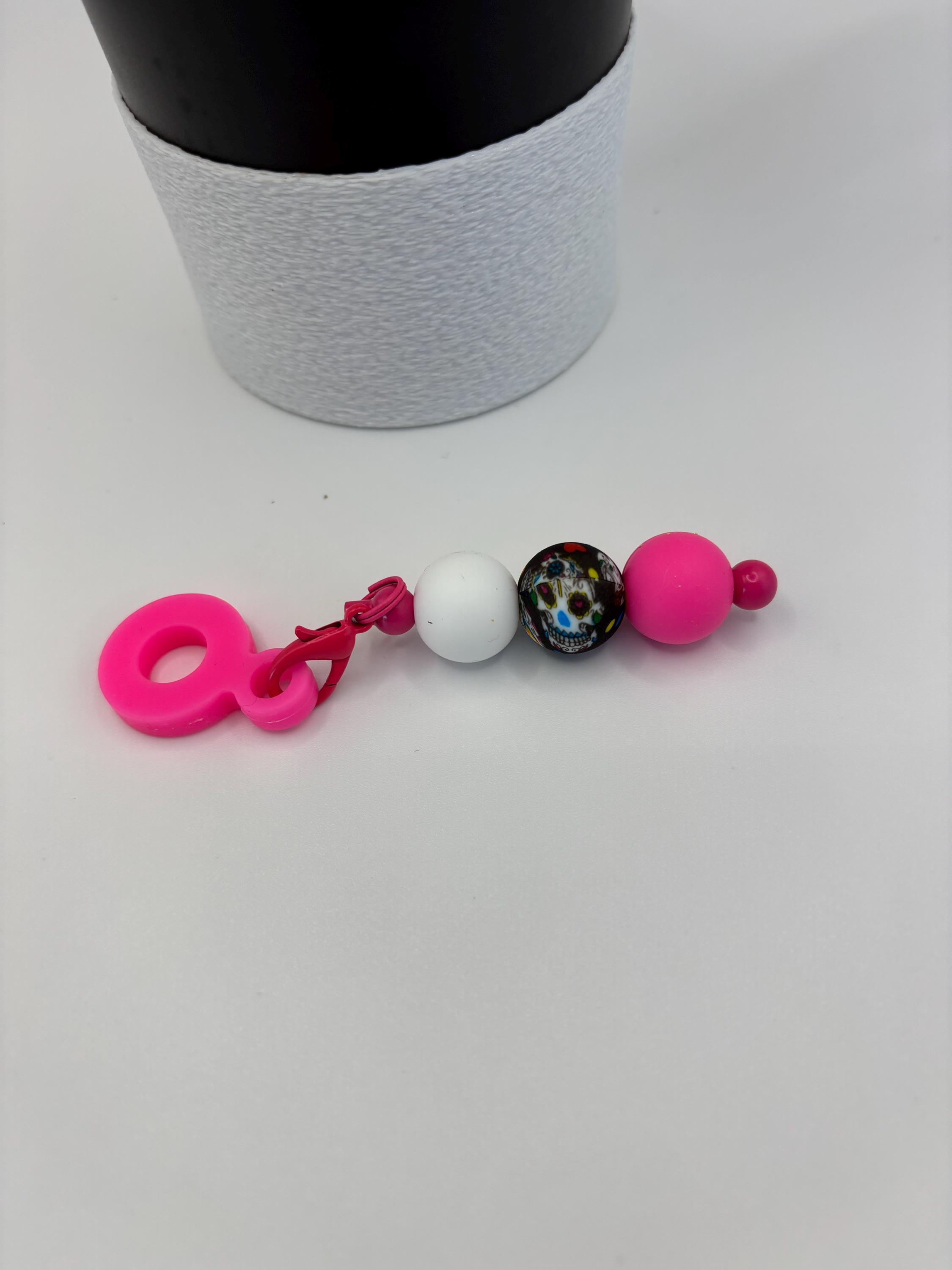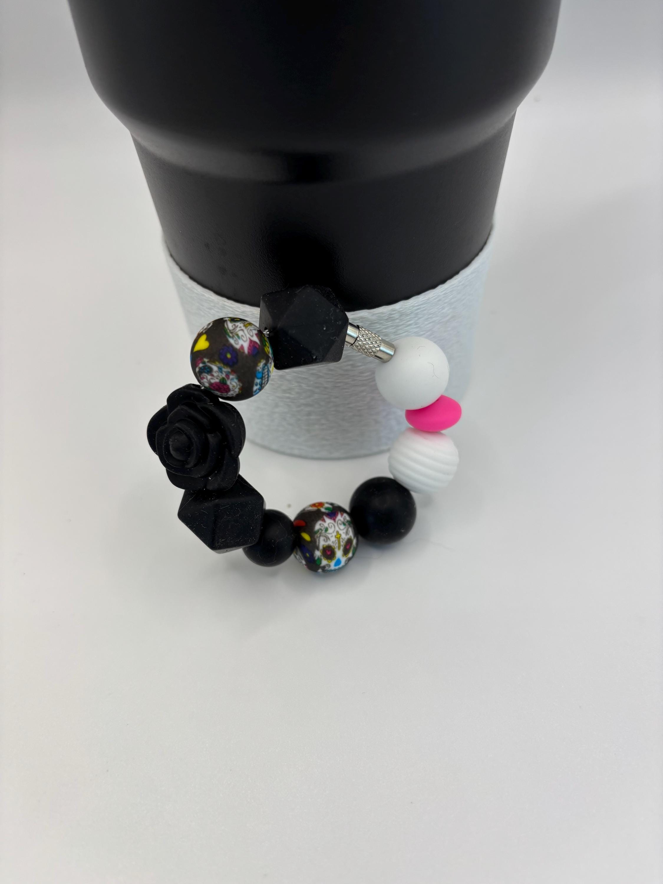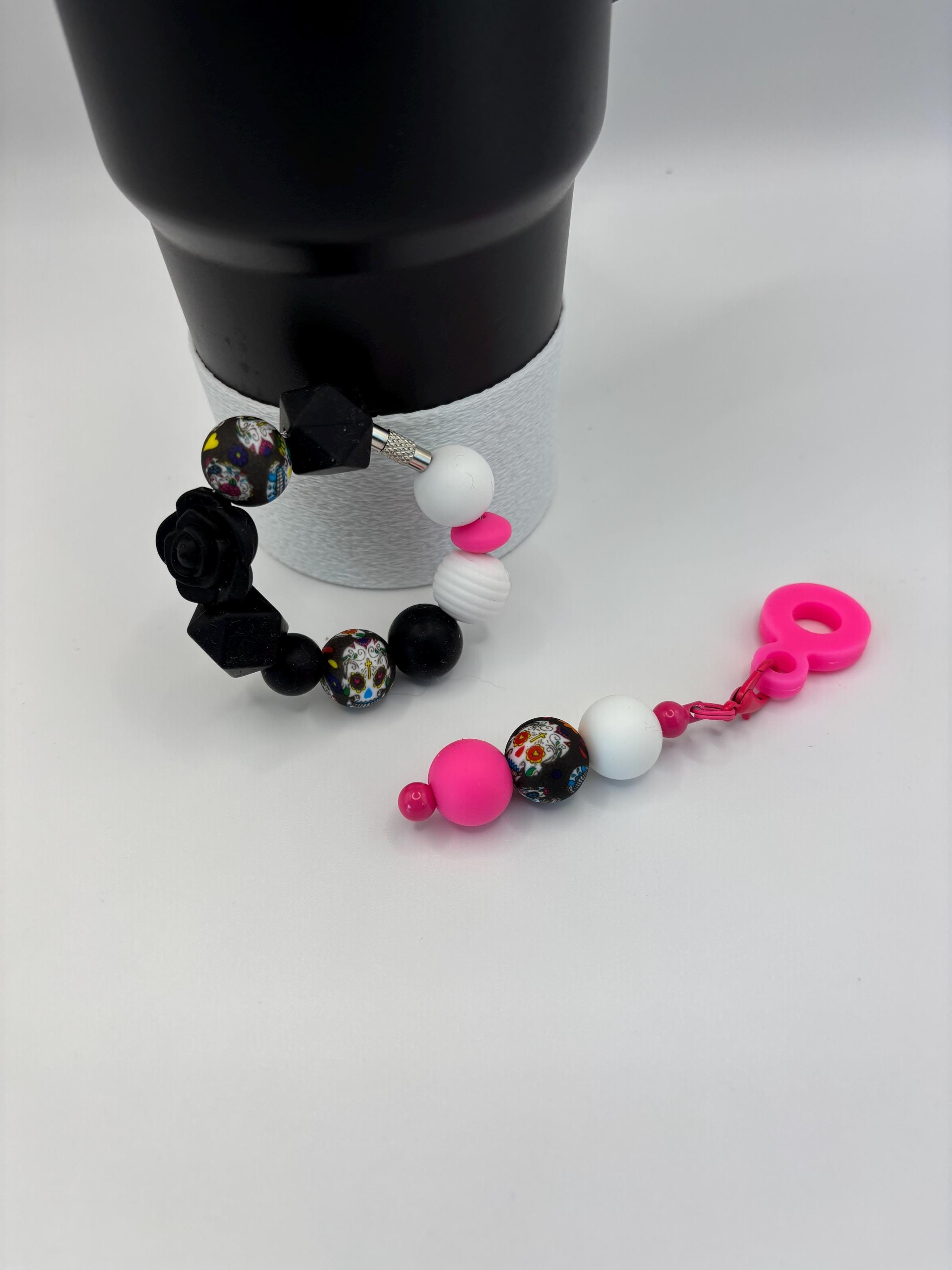 Sugar Skulls White Pink and Black Stanley Cup Bracelet: Cup Handle Bracelet | Straw Charm | Purse Bracelet | Halloween | Skull