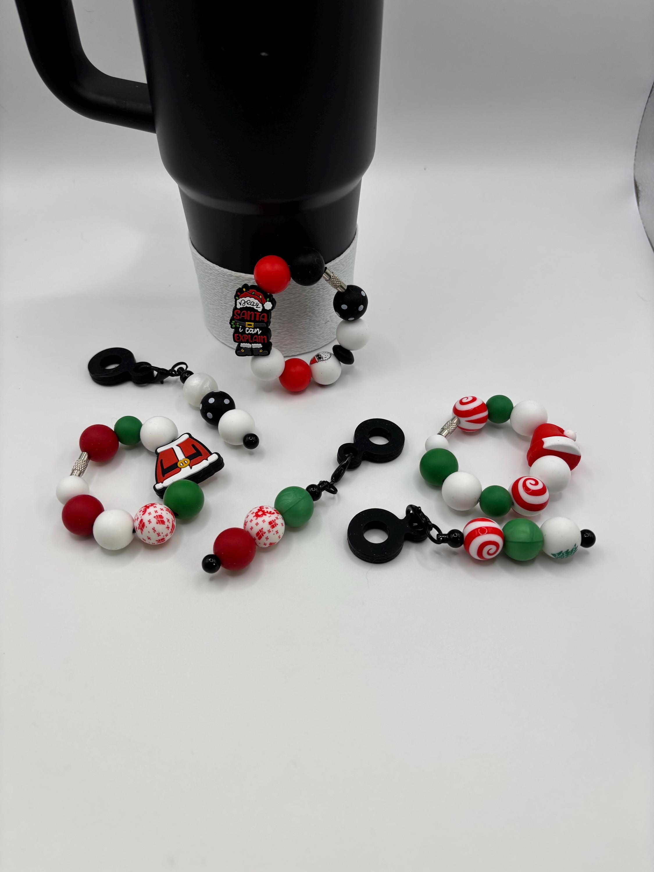 These holiday handle bracelets are made for your Tumbler and are shown on a 30 Ounce Stanley. They will fit any tumbler with a handle and or straw