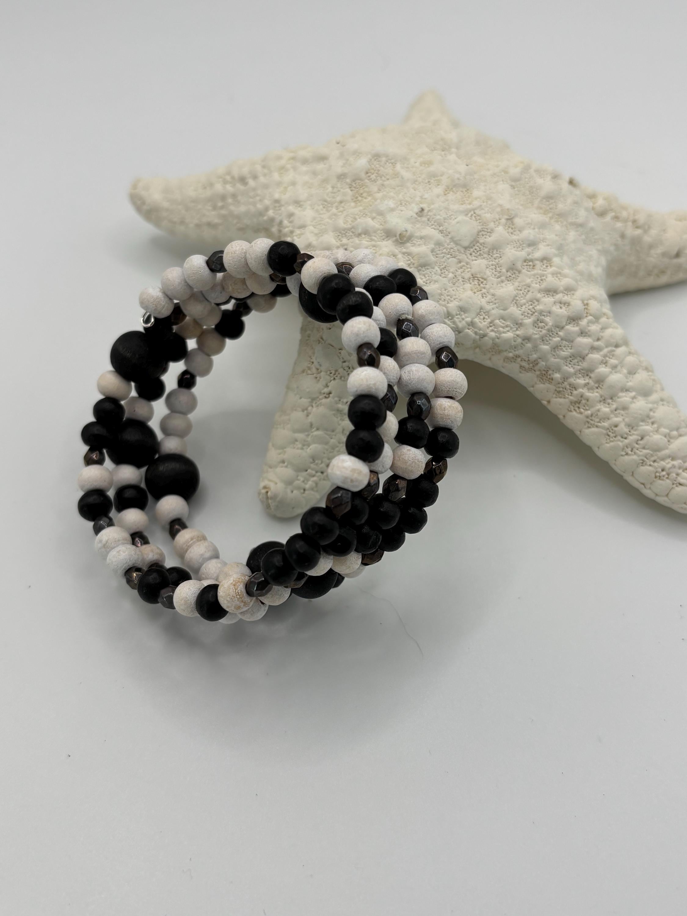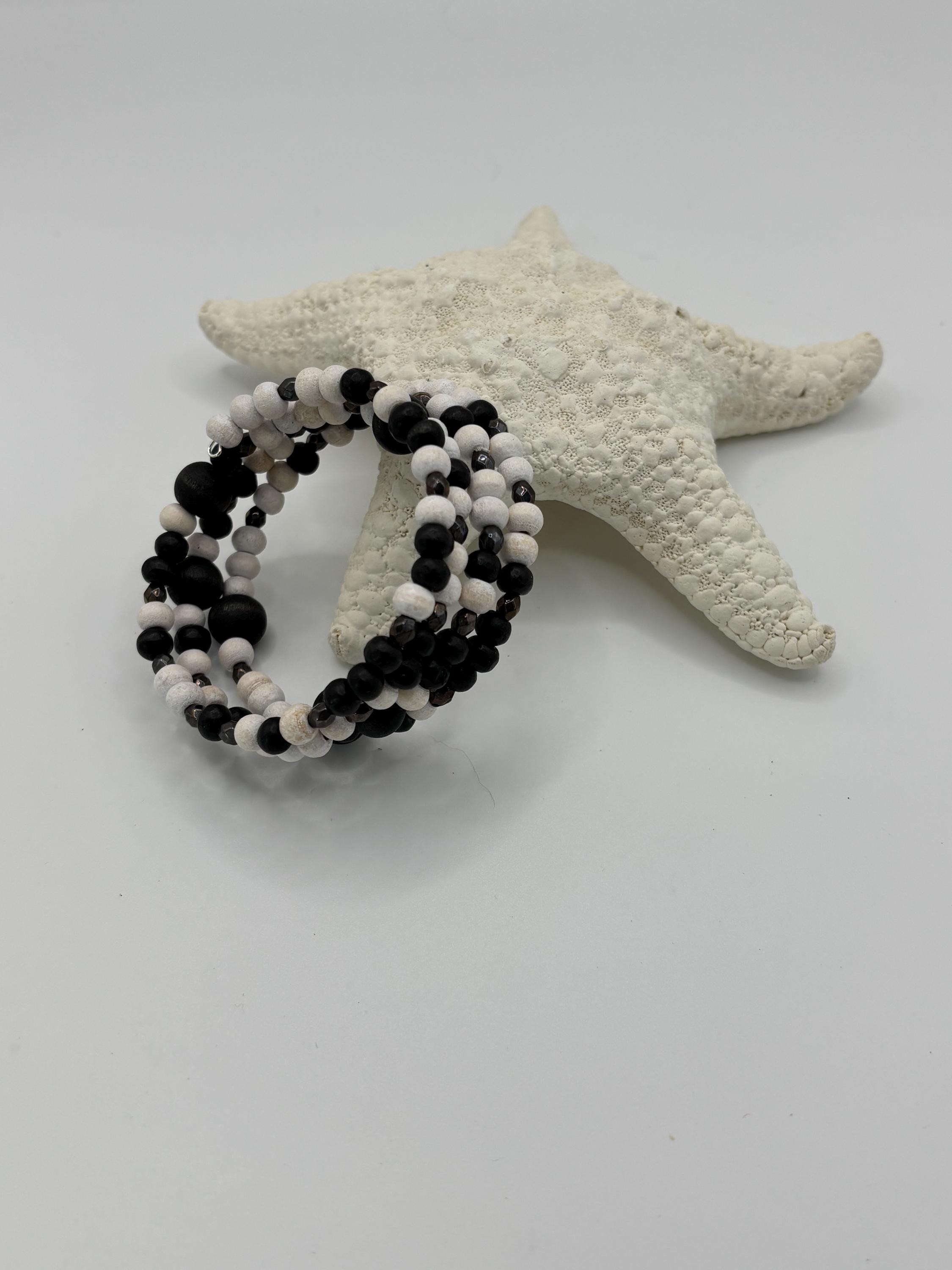 Black and White Wooden Beads | Memory Wire Bracelet | Multi-Strand Bracelet |