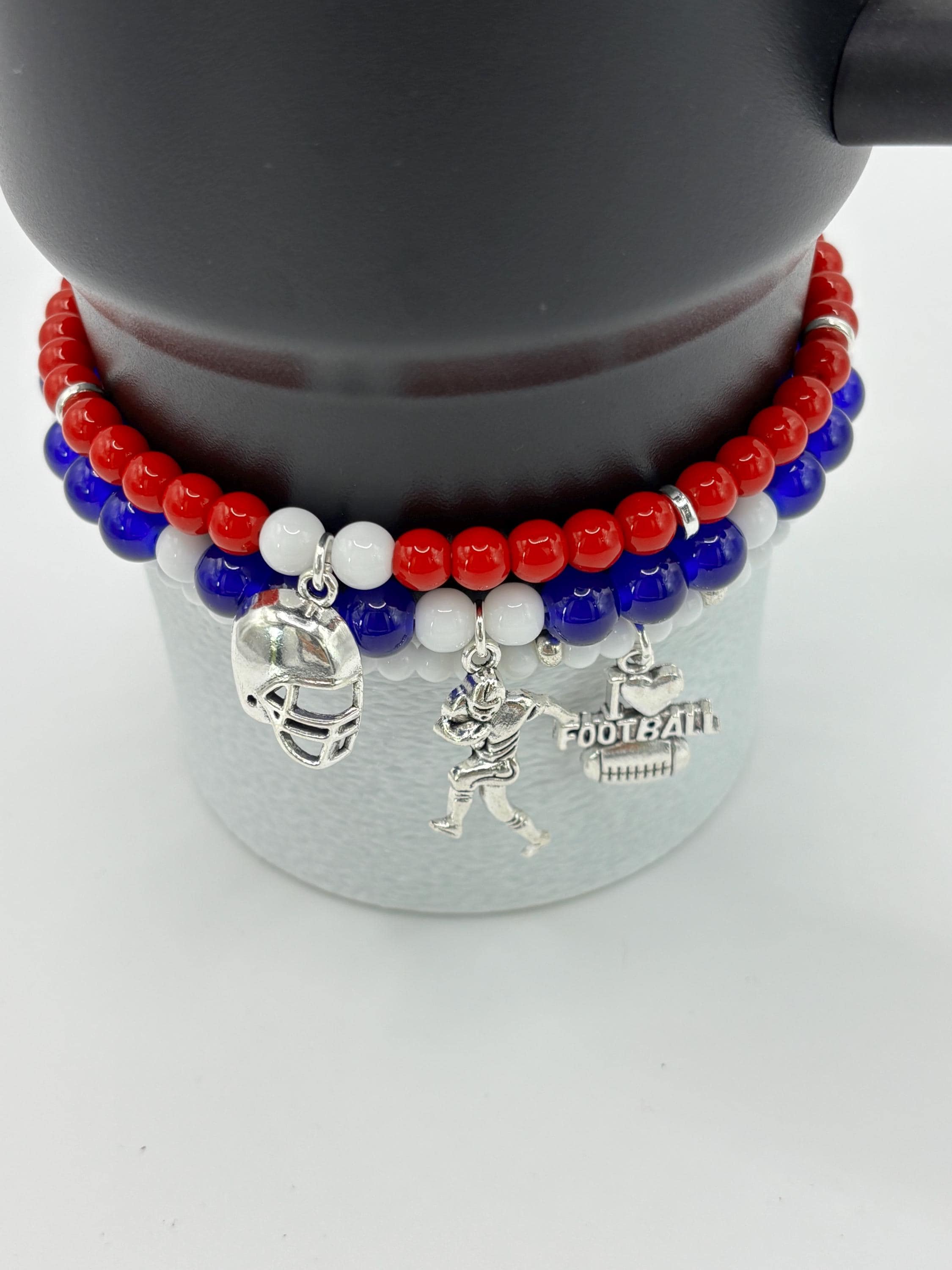 These fun charm bracelets are made specifically for your Stanley Tumbler and are shown on a 40 Ounce Stanley. Set of 3 sold with the boot as an option.
