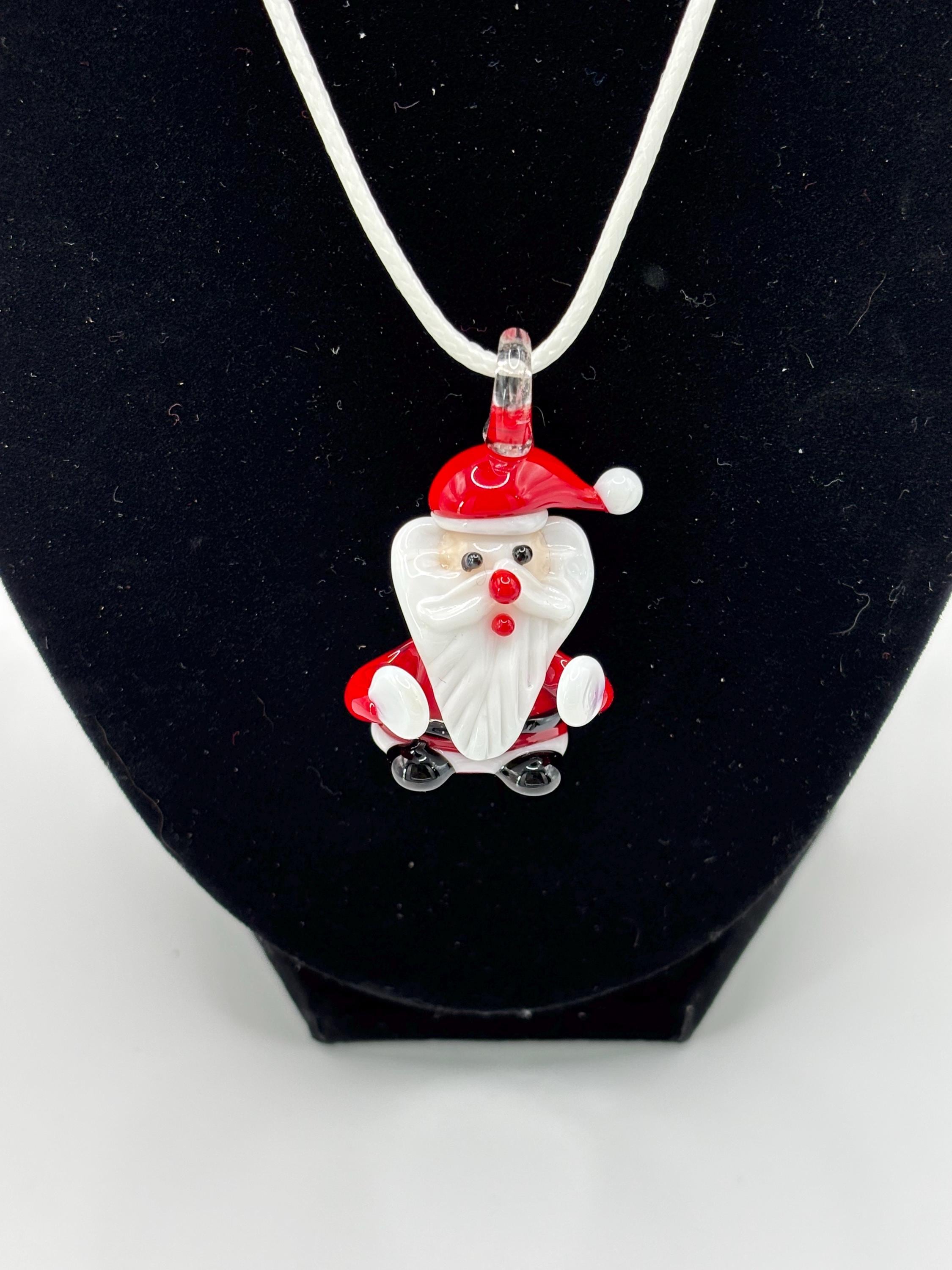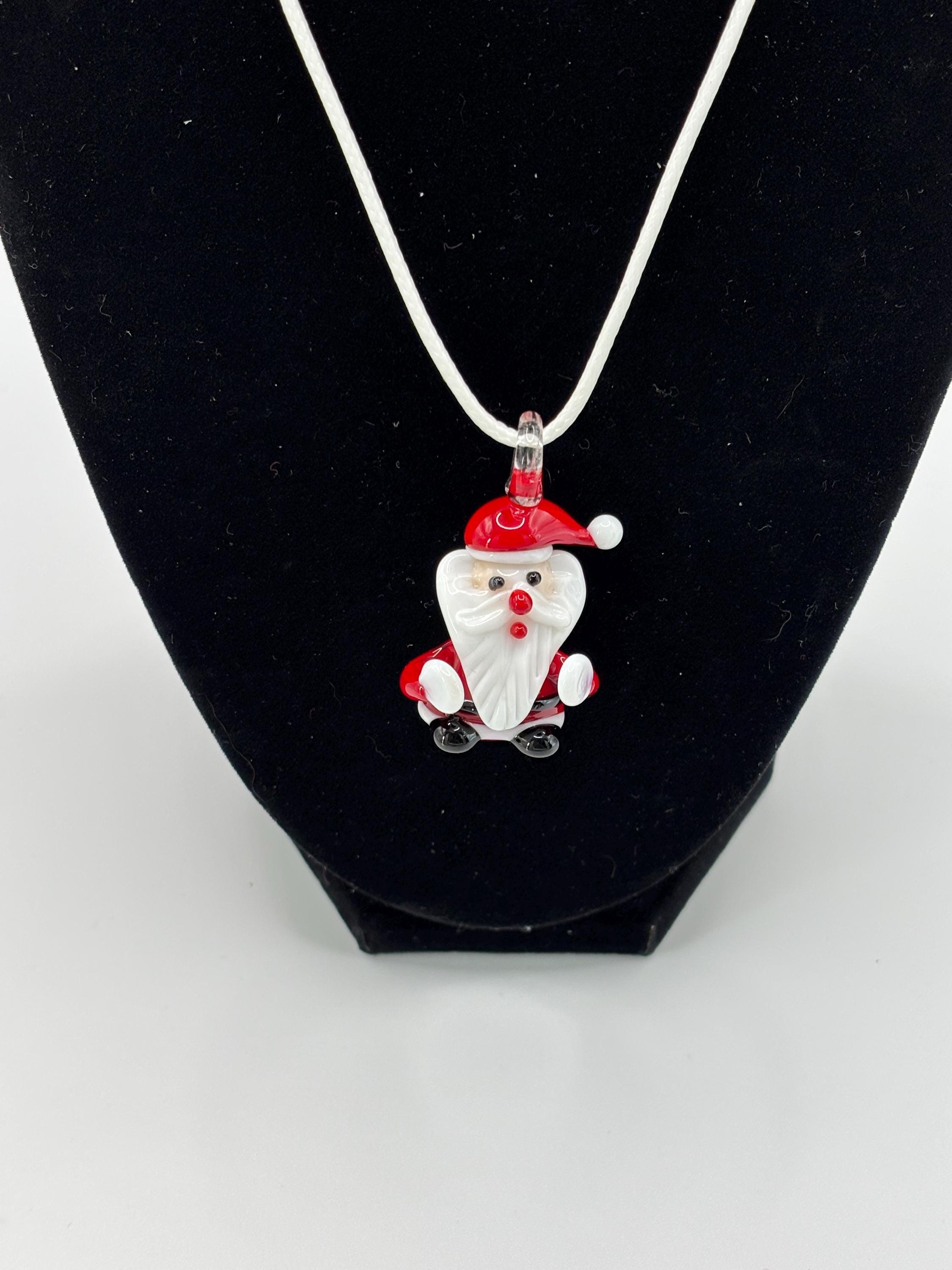 This is a Glass Lampwork Santa pendant necklace, Murano inspired with Christmas vibes and Holiday colors.