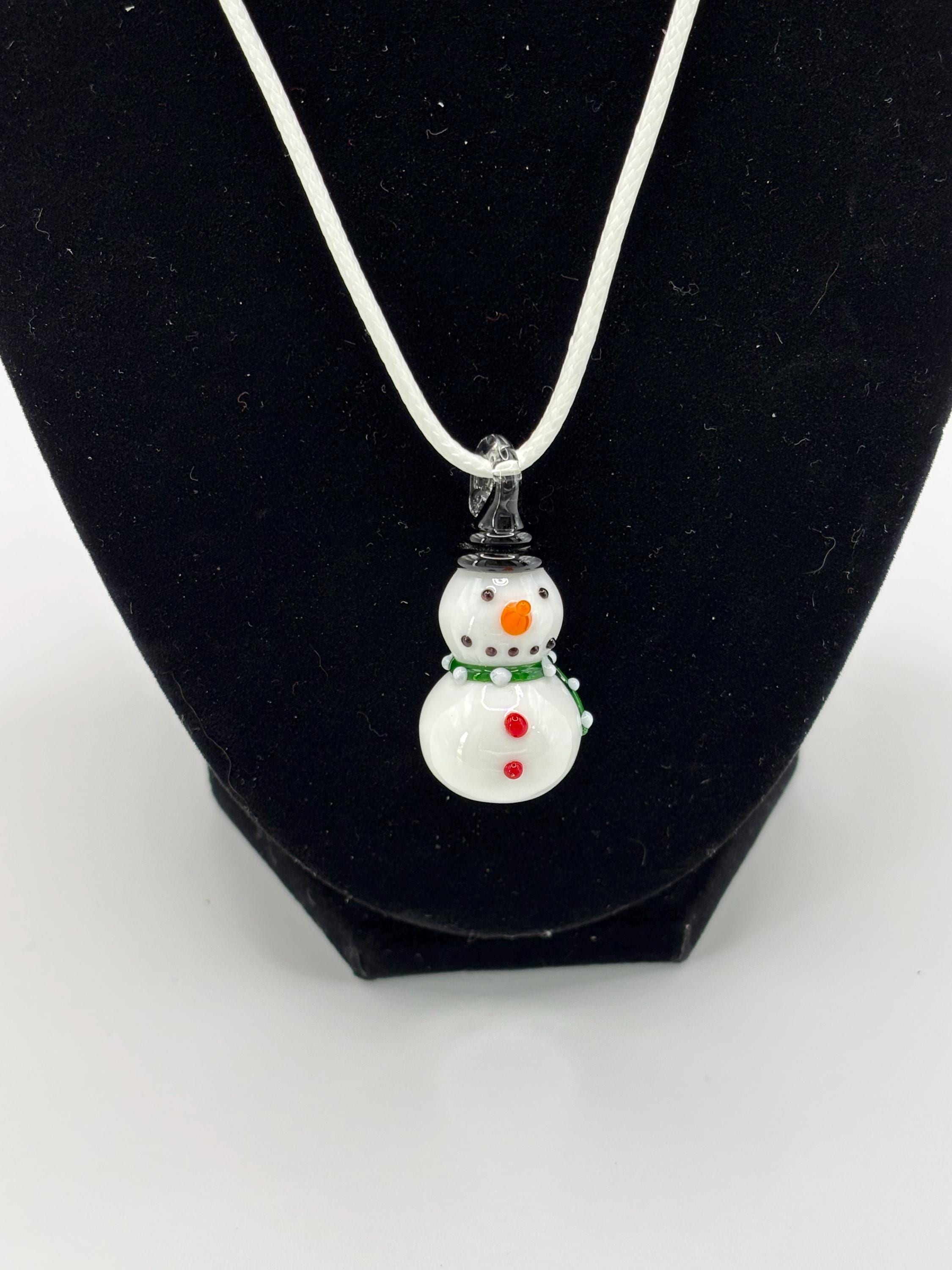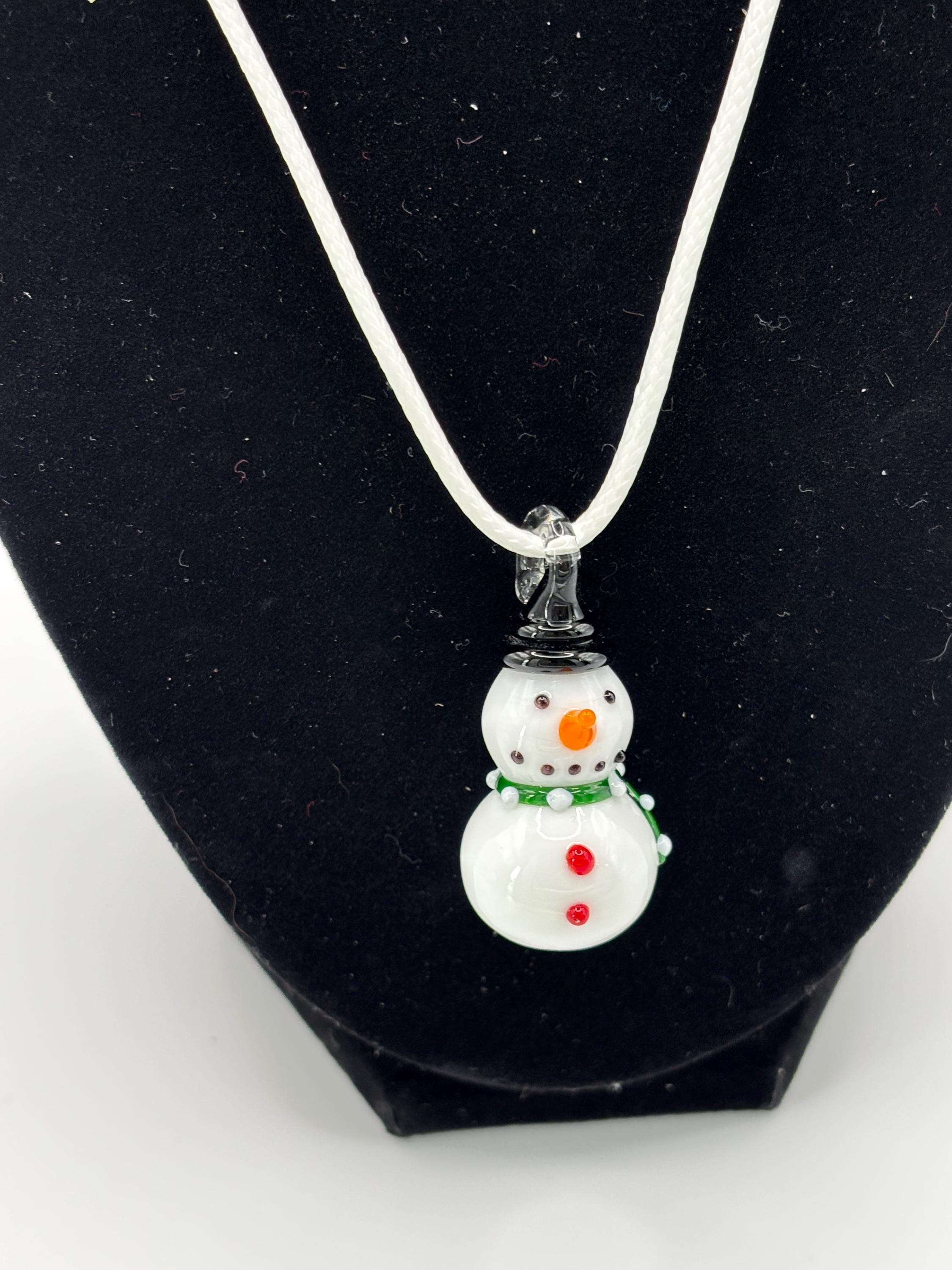 This is a Glass Lampwork snowman pendant necklace, Murano inspired with Christmas vibes and Holiday colors.