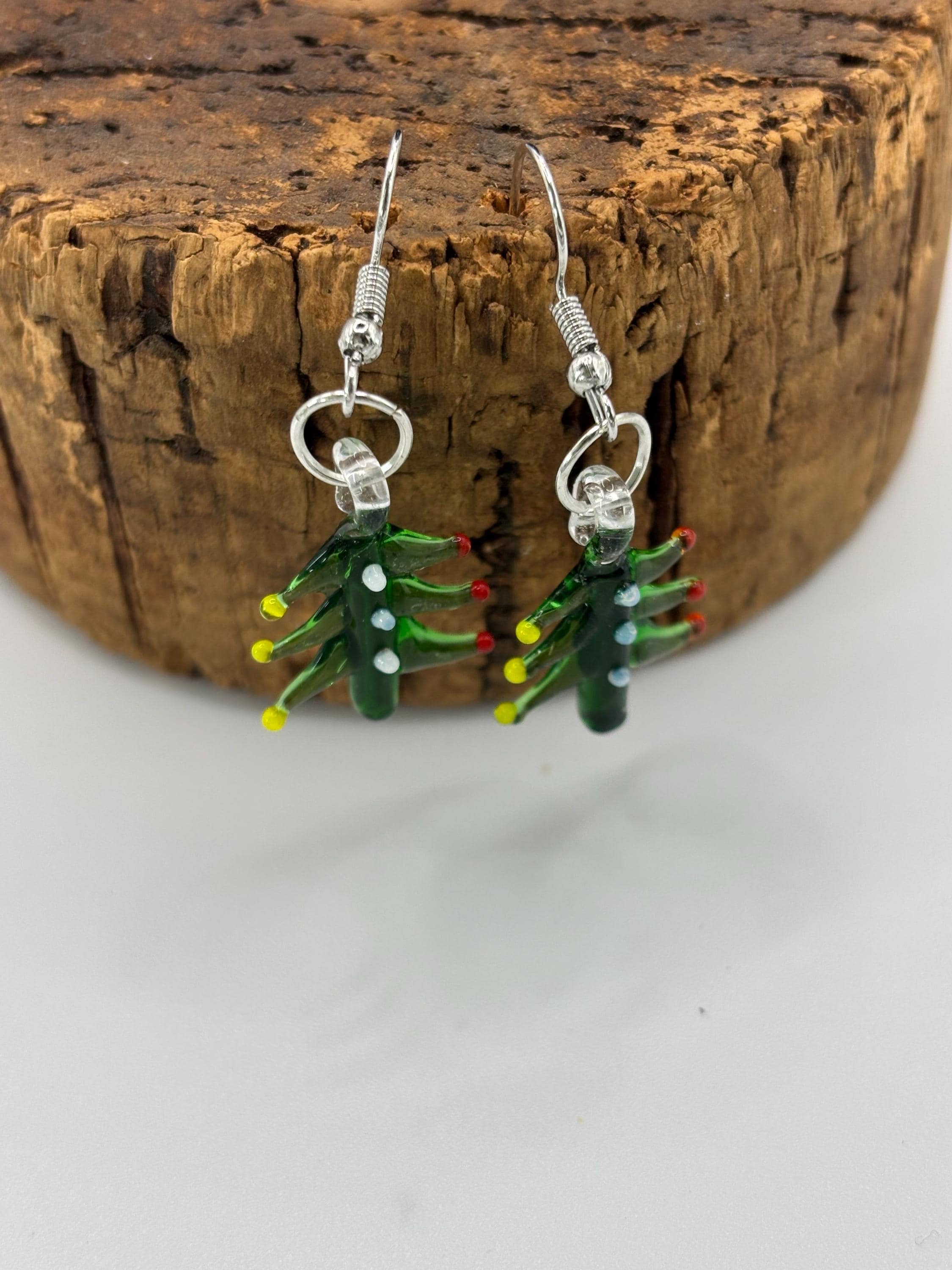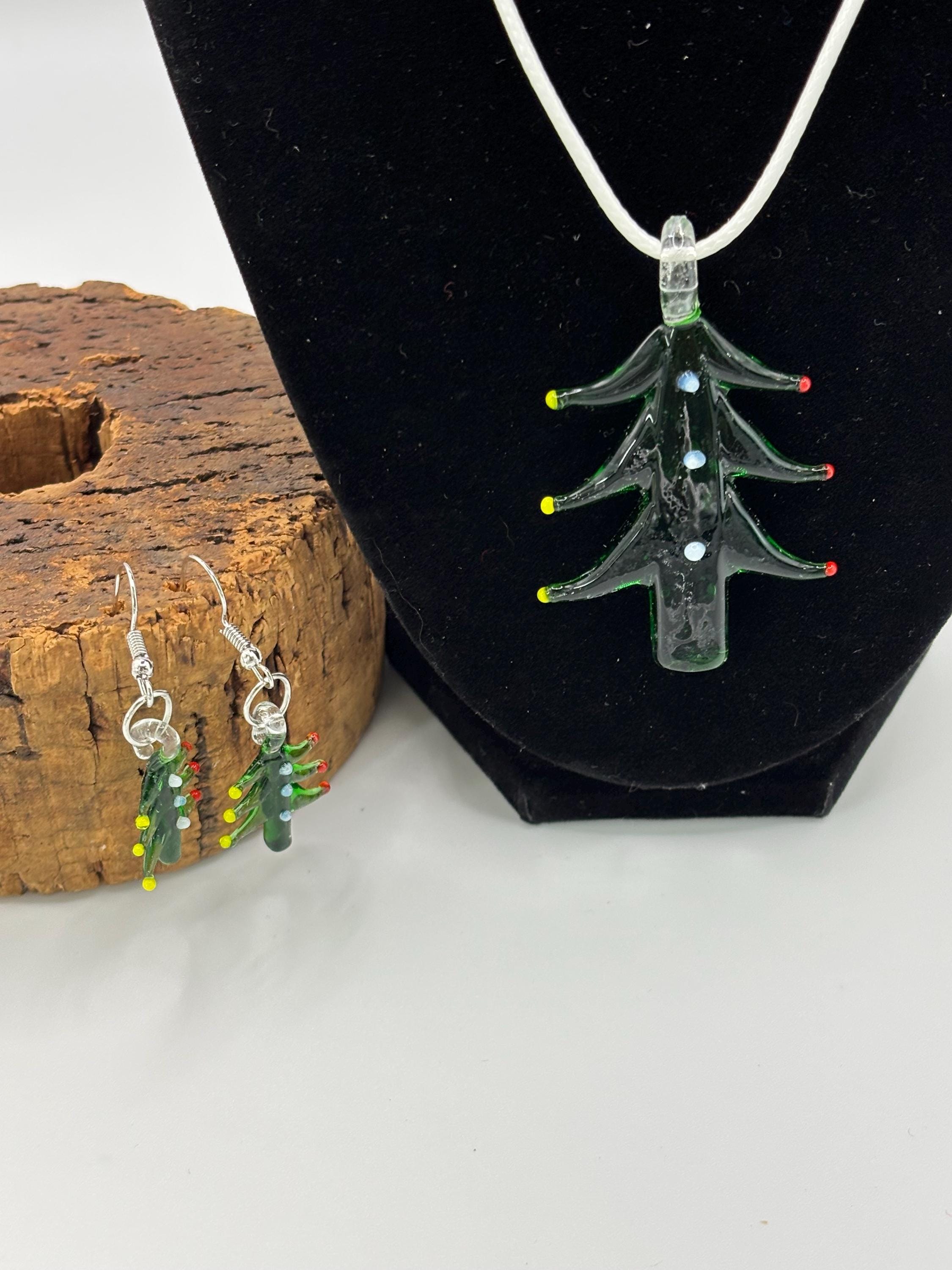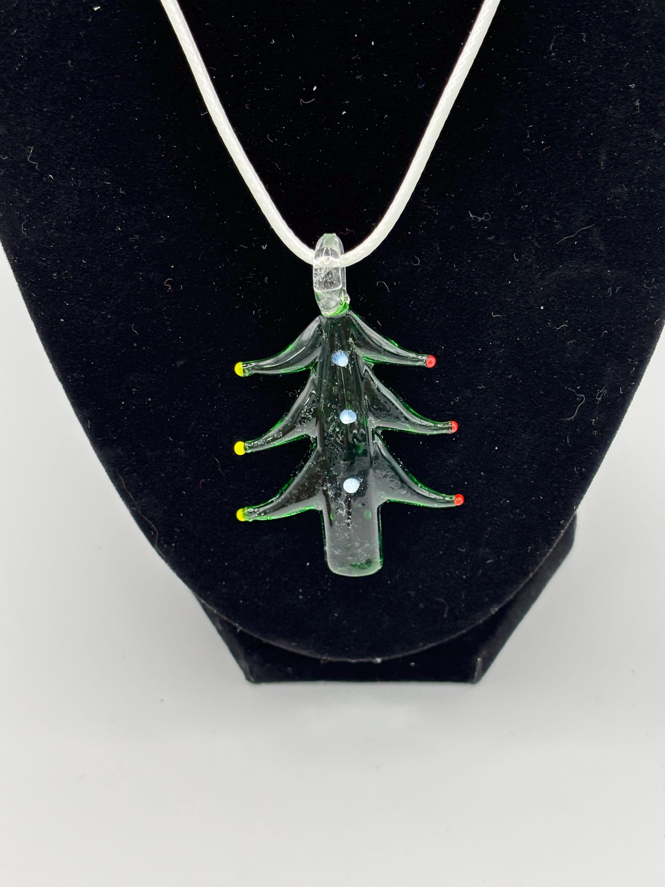 This is a Glass Lampwork Tree pendant necklace, Murano inspired with Christmas vibes and Holiday colors.