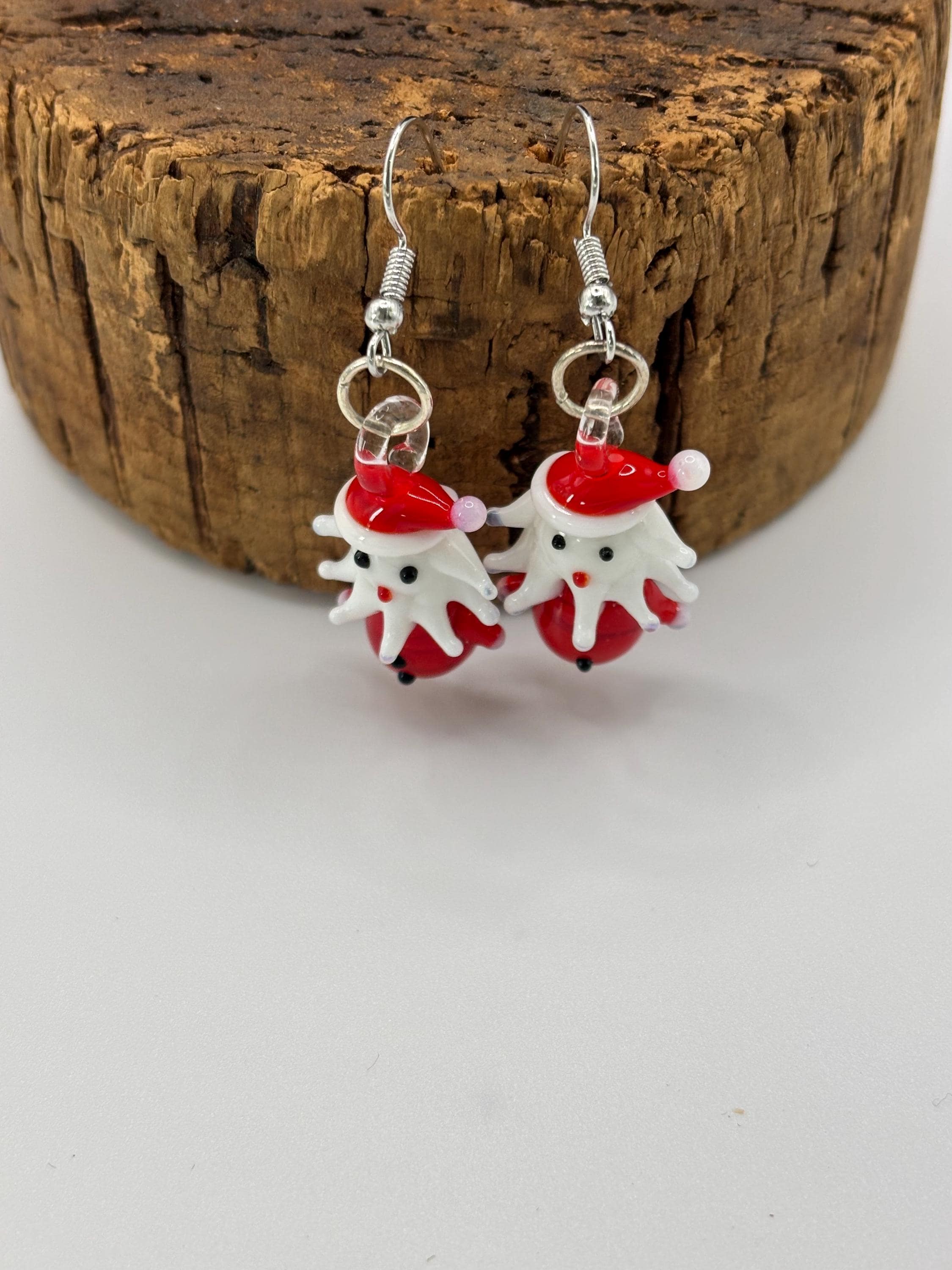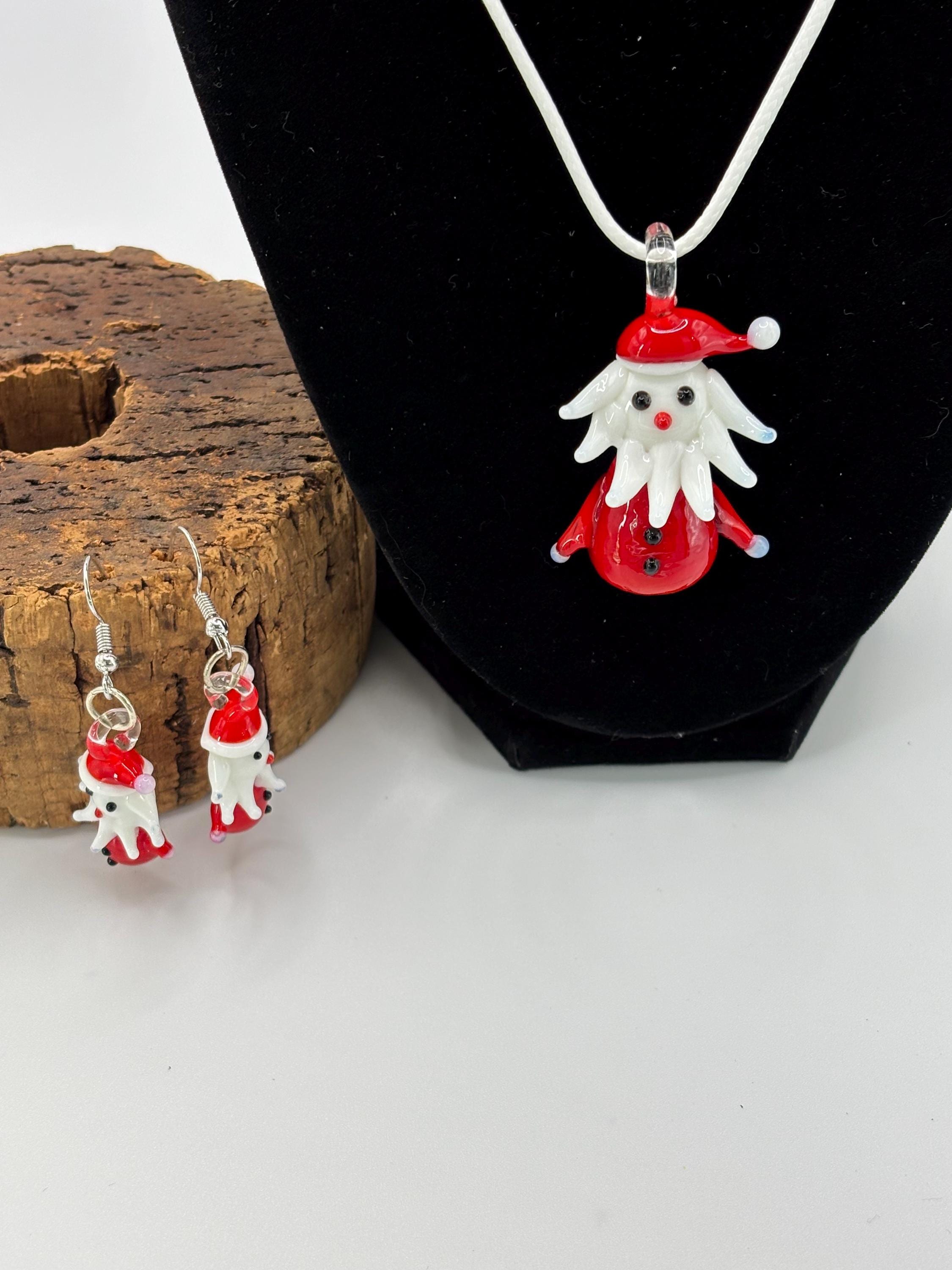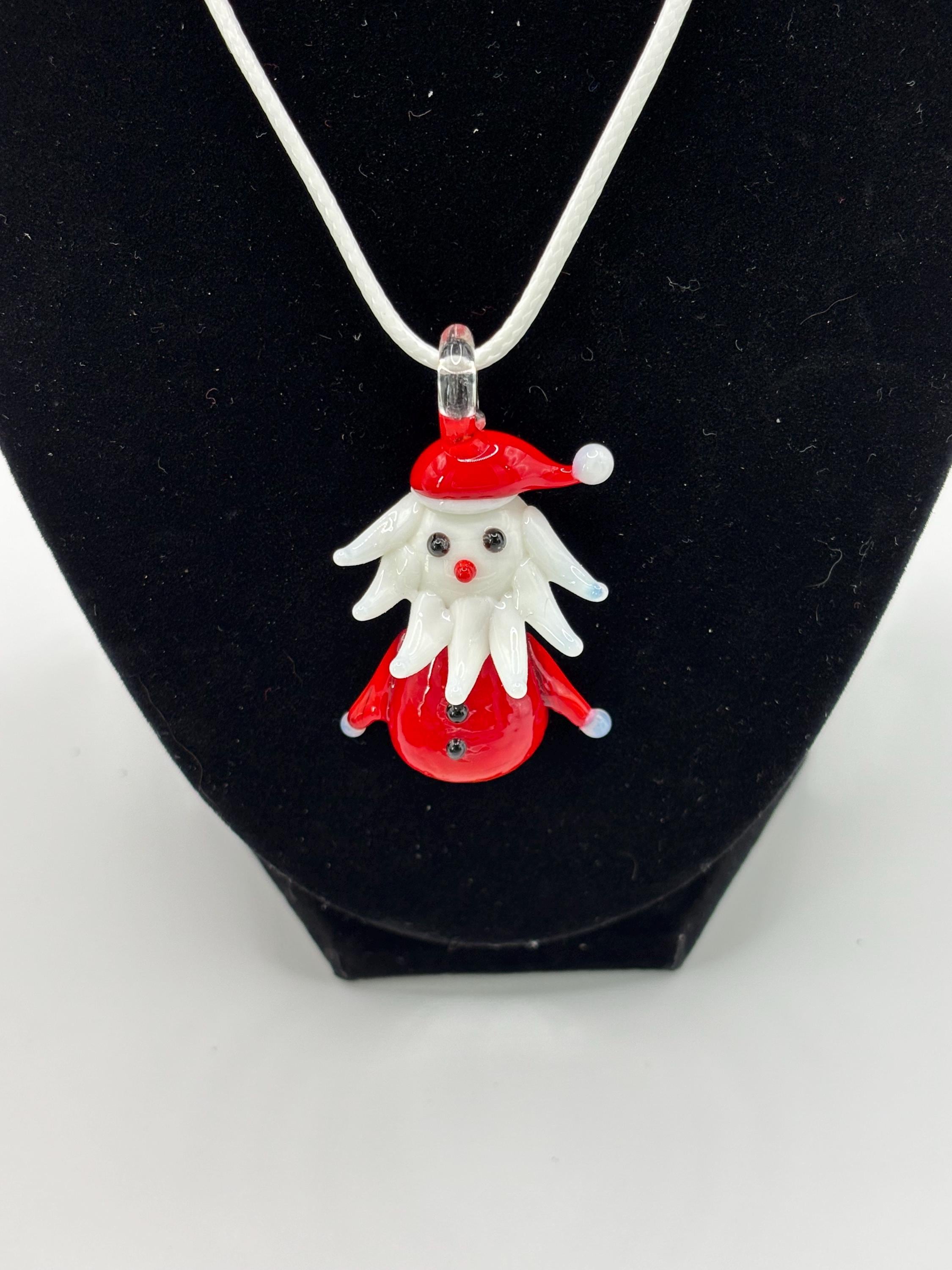 This is a Glass Lampwork Santa pendant necklace, Murano inspired with Christmas vibes and Holiday colors.