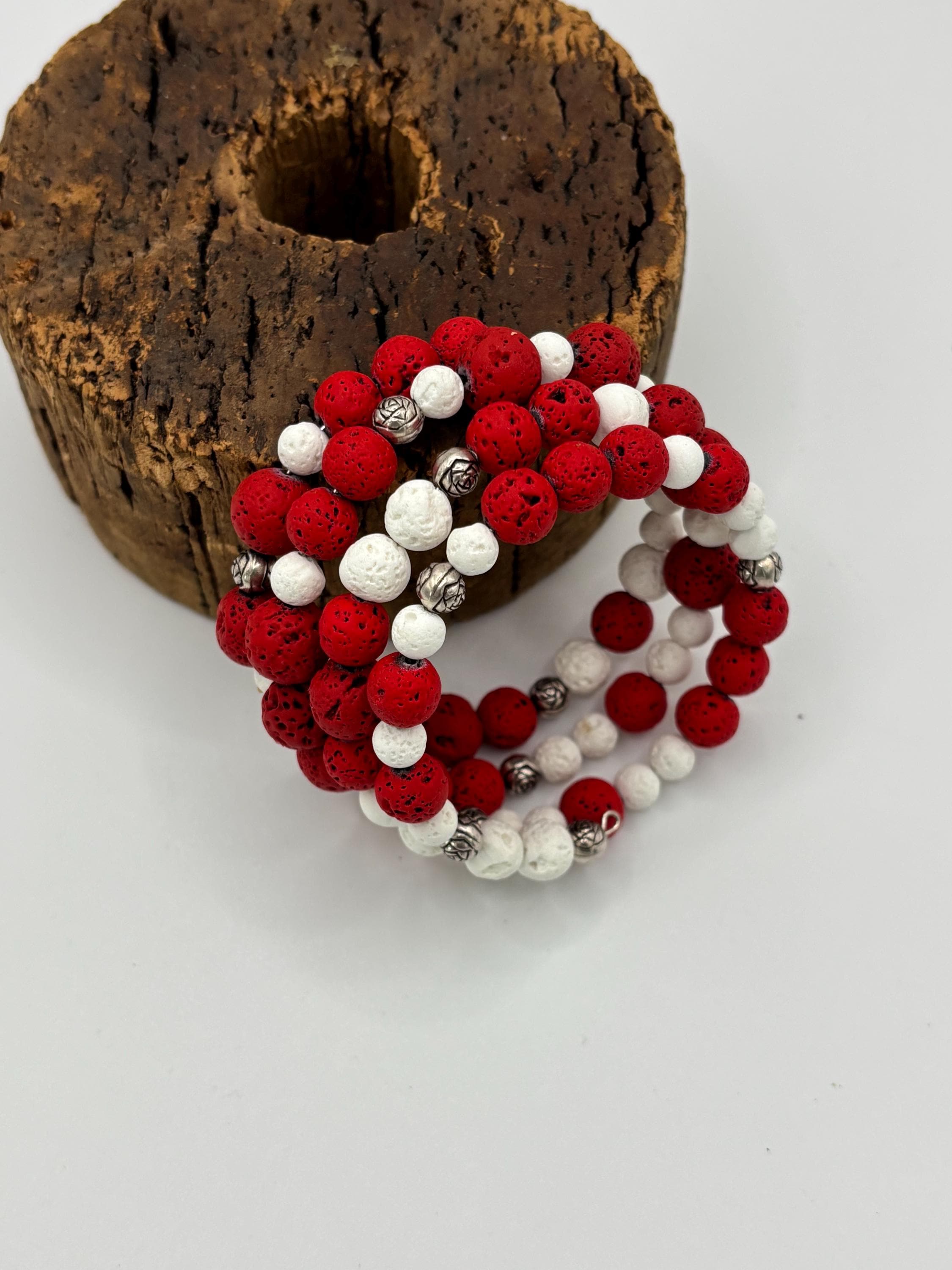 Add a touch of sophistication to your style with our Red Lava memory wire multistrand bracelet.