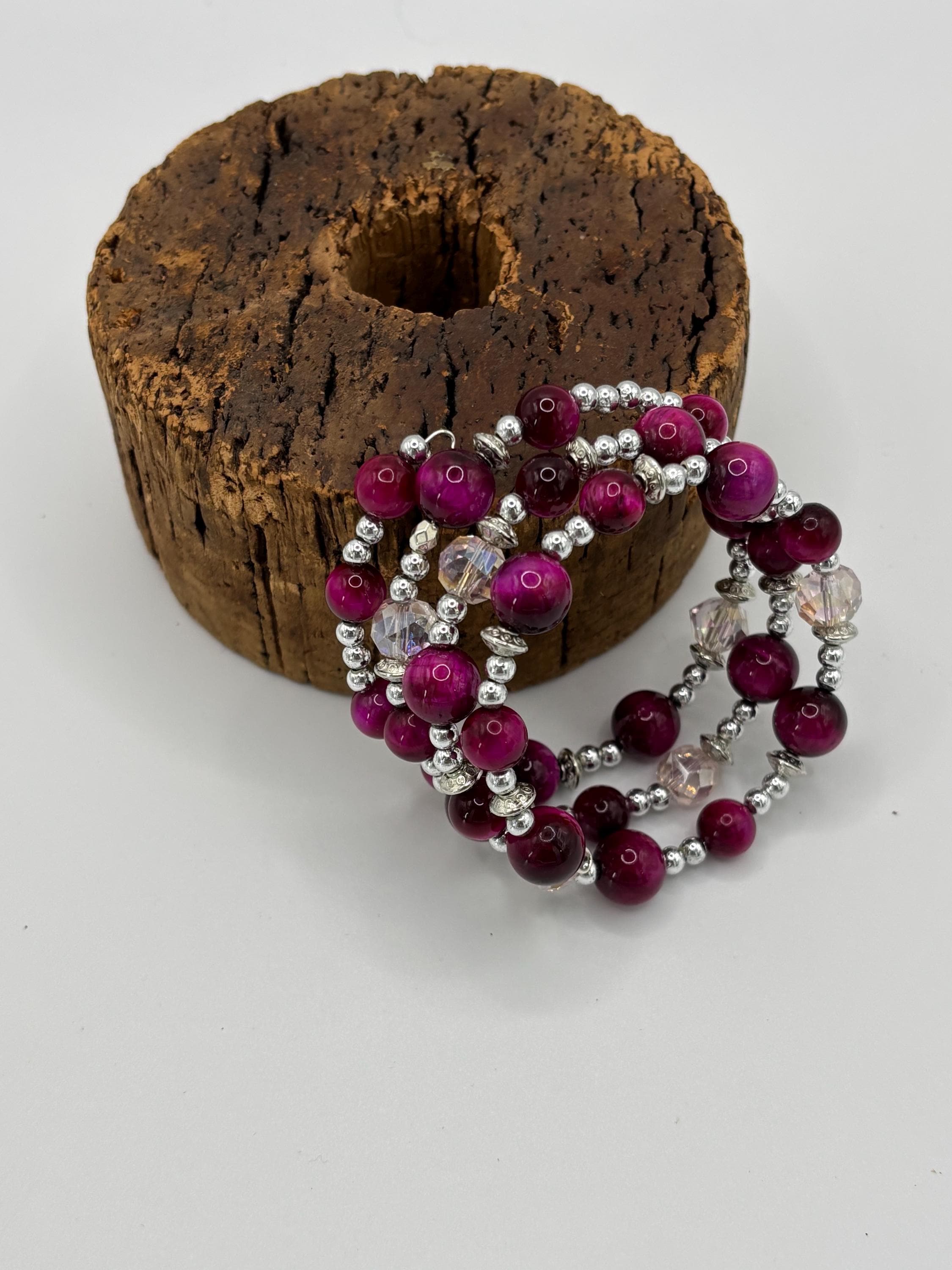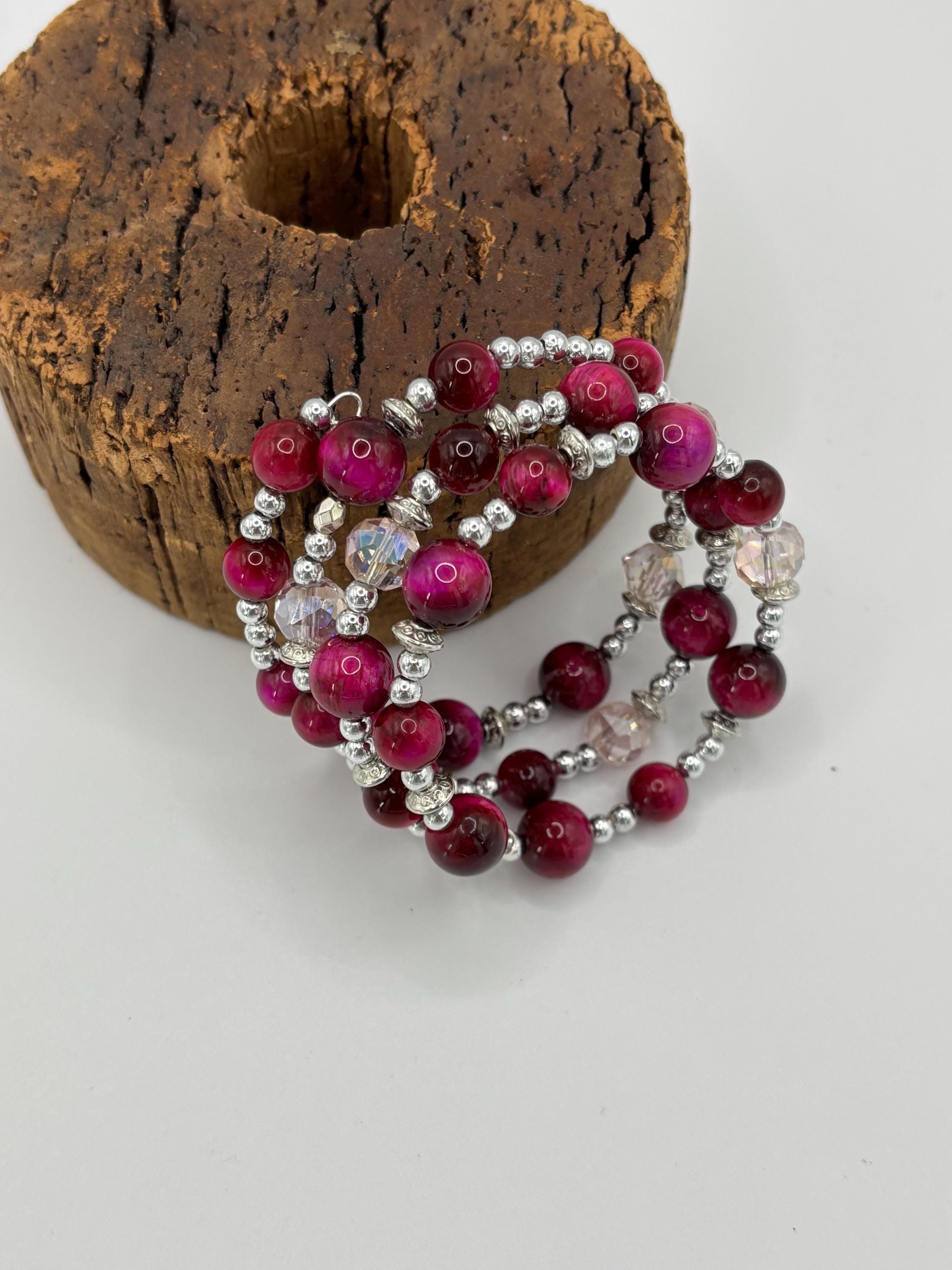 Pink Tiger Eye gemstone bracelet | Memory wire bracelet | Multistrand bracelet |