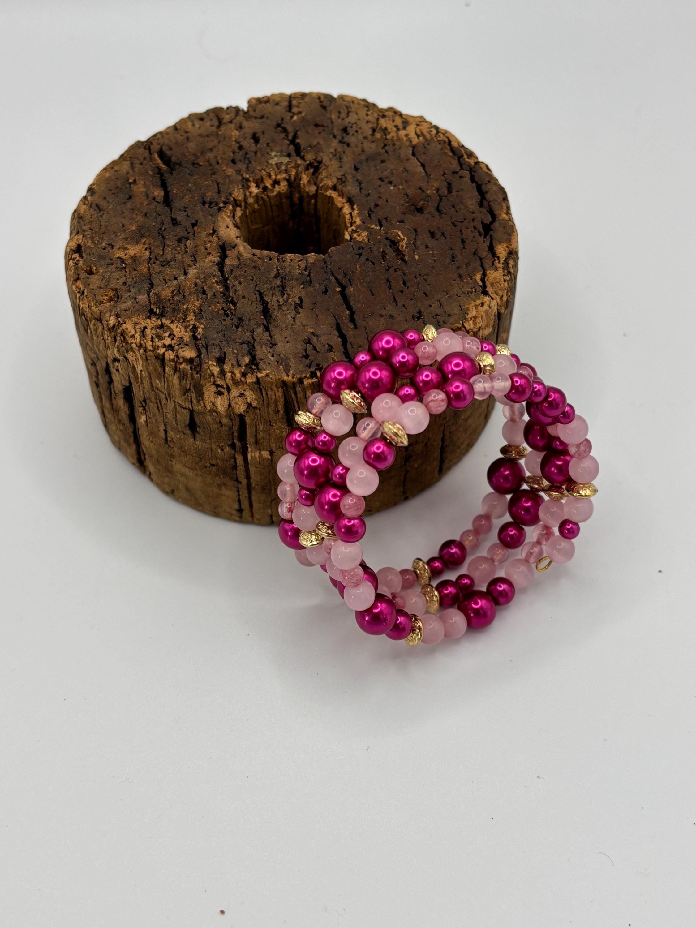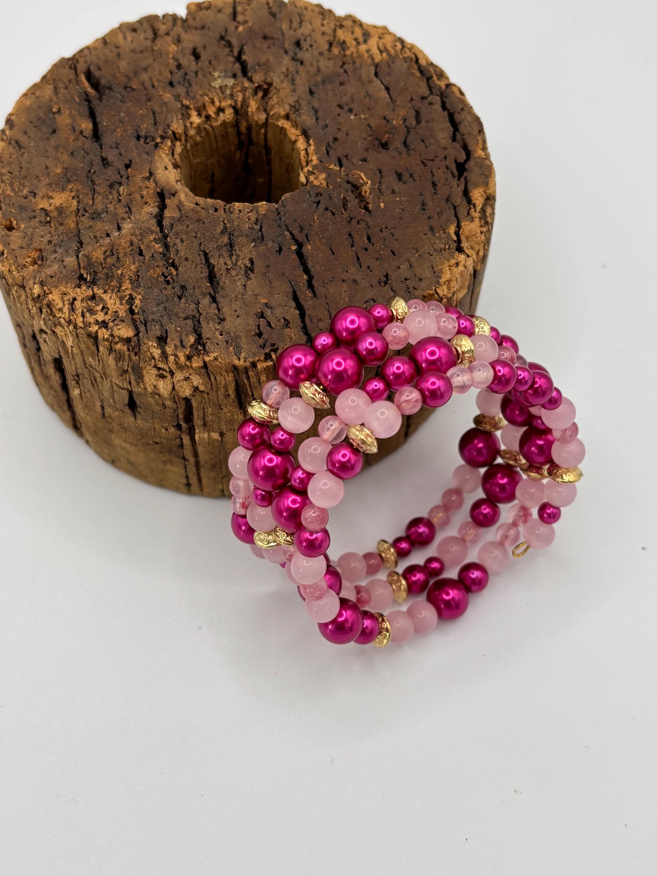 Add a touch of sophistication to your style with our elegant memory wire multistrand bracelet, made with pink Cats eye.