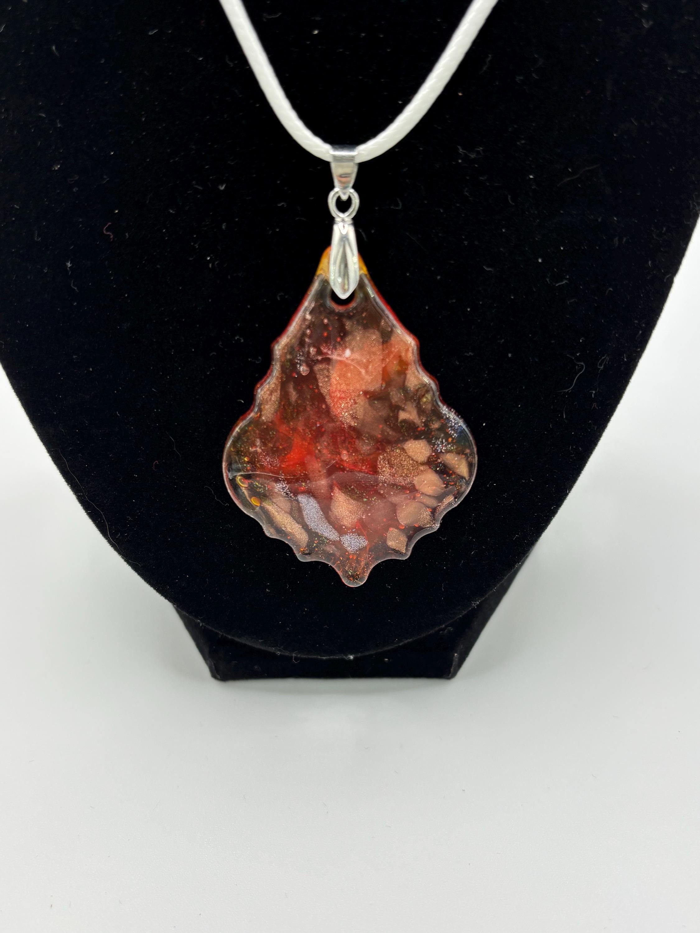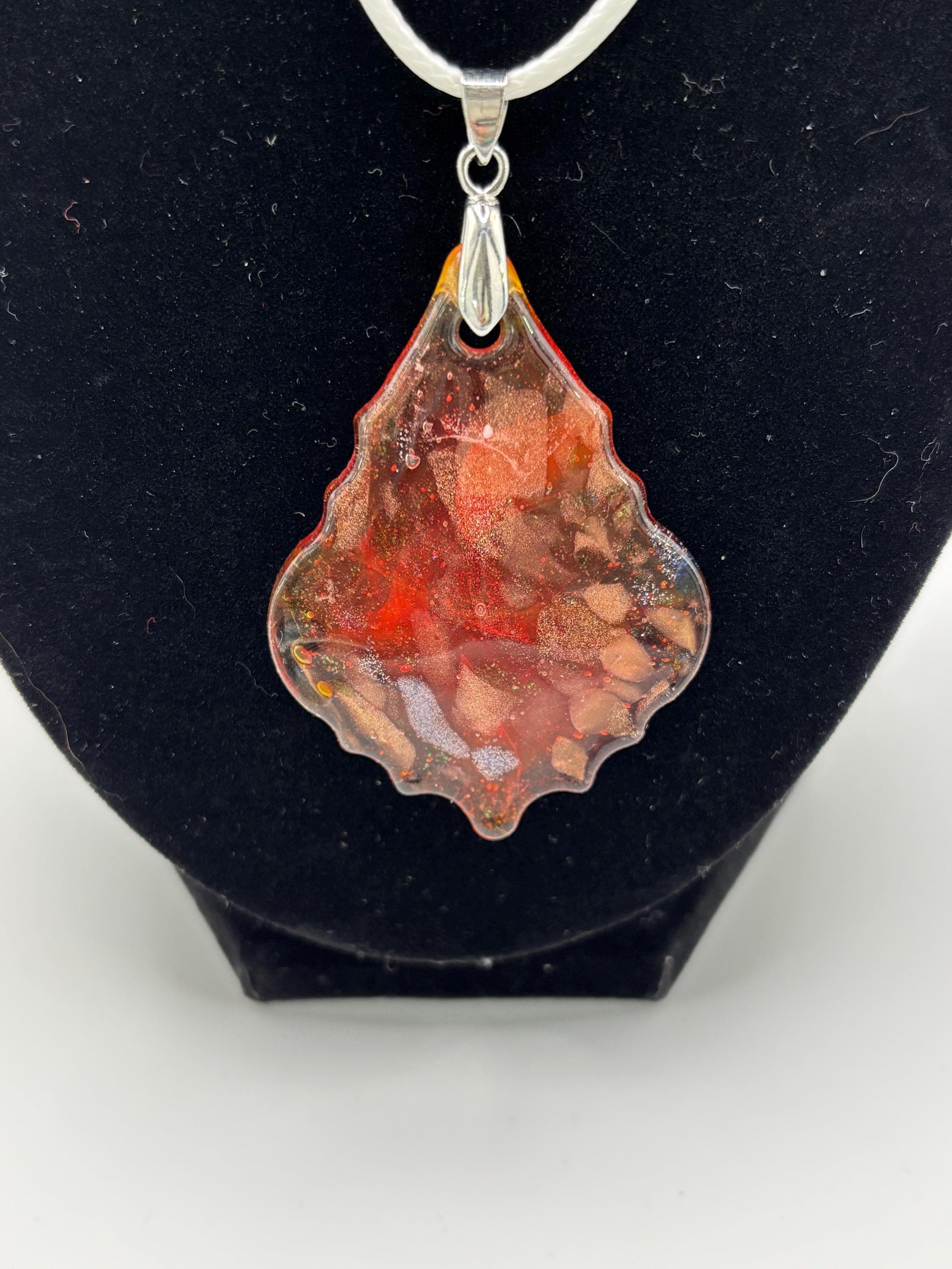 This is a Glass Lampwork leaf necklace pendant. This Murano inspired glass is orange colored.