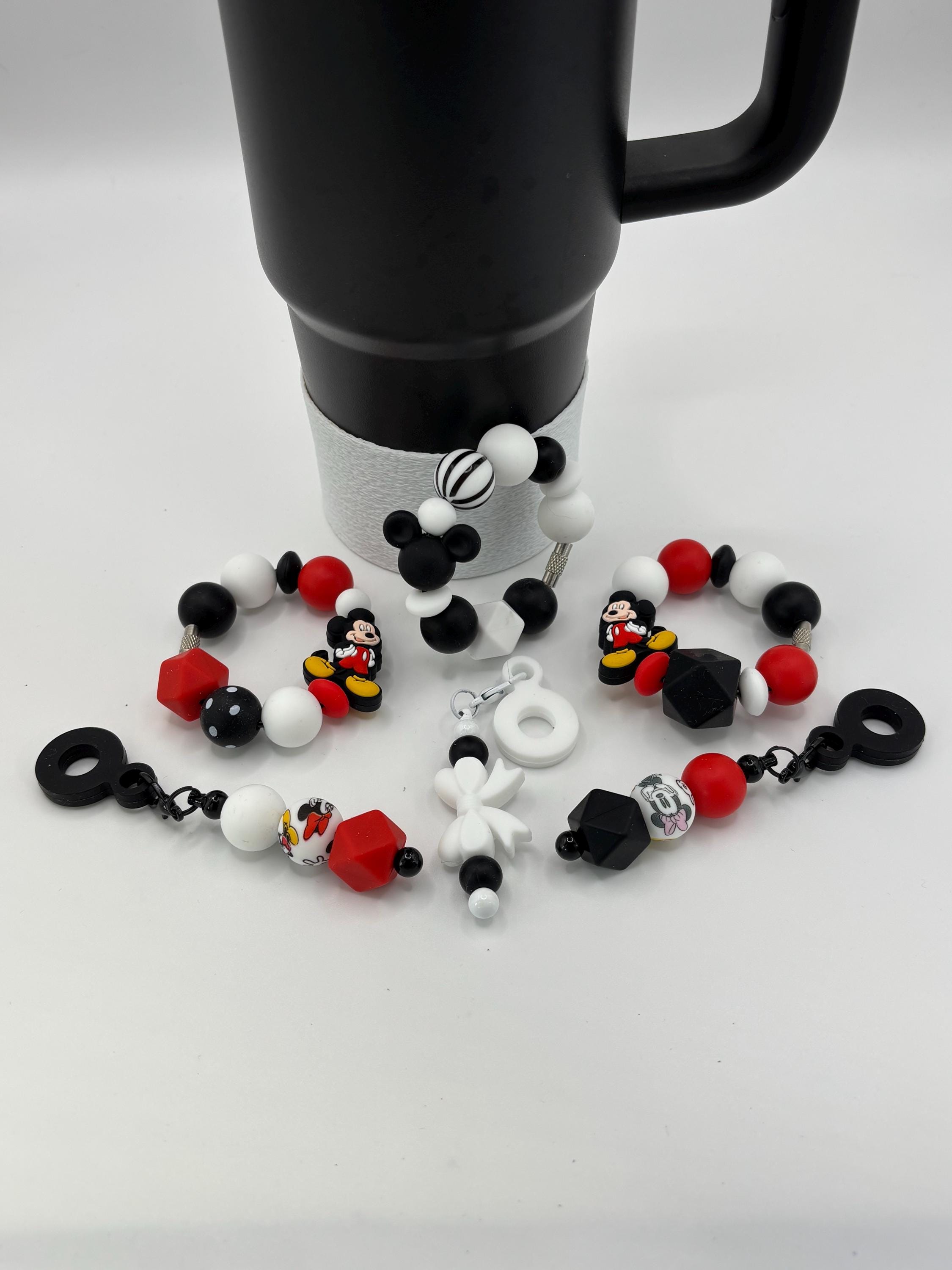 These fun Mickey themed handle and straw charm bracelets are made for your Tumbler and are shown on a 30 Ounce Stanley. They will fit any tumbler with a handle/ straw and could also be purse charms too !