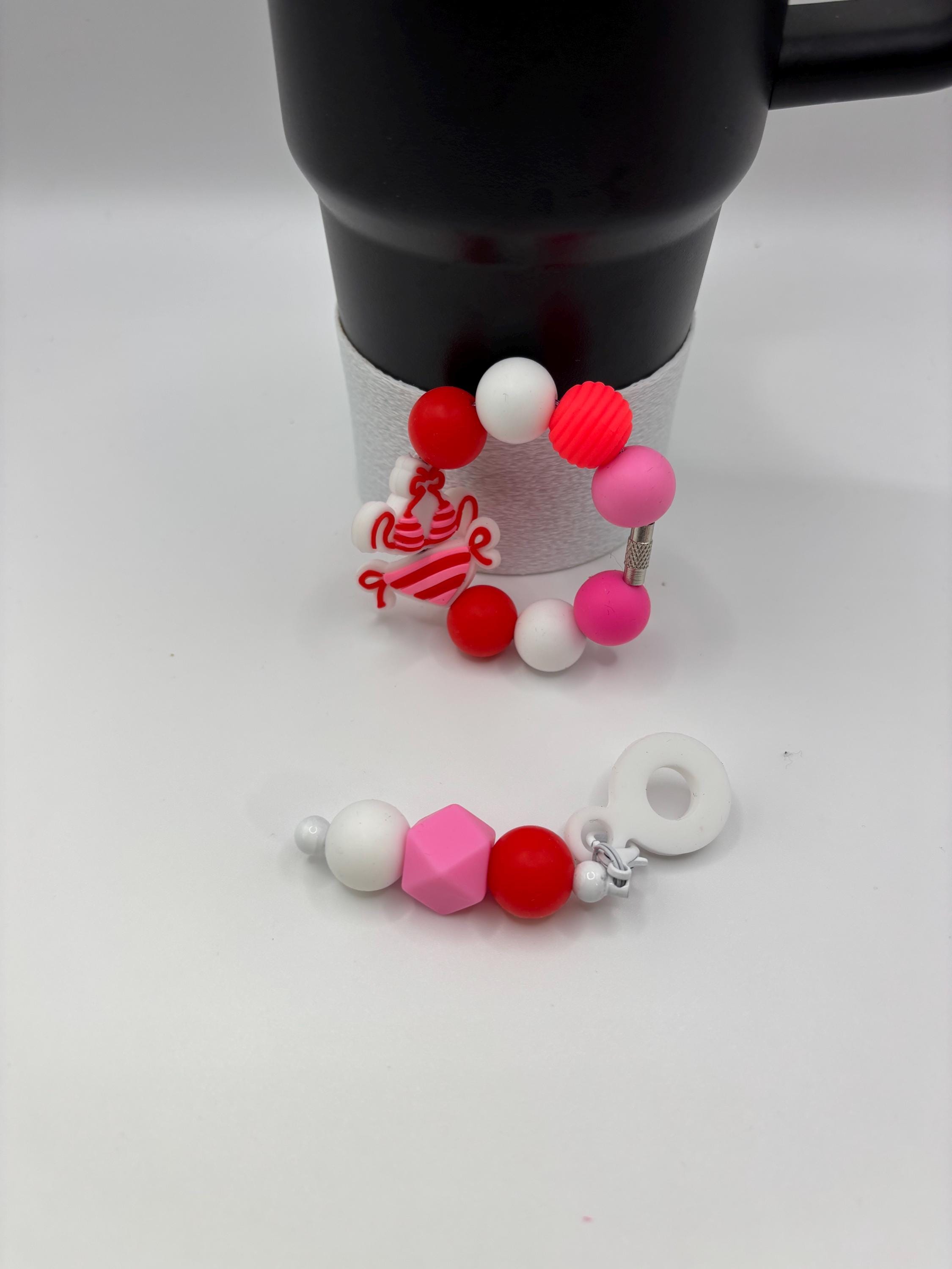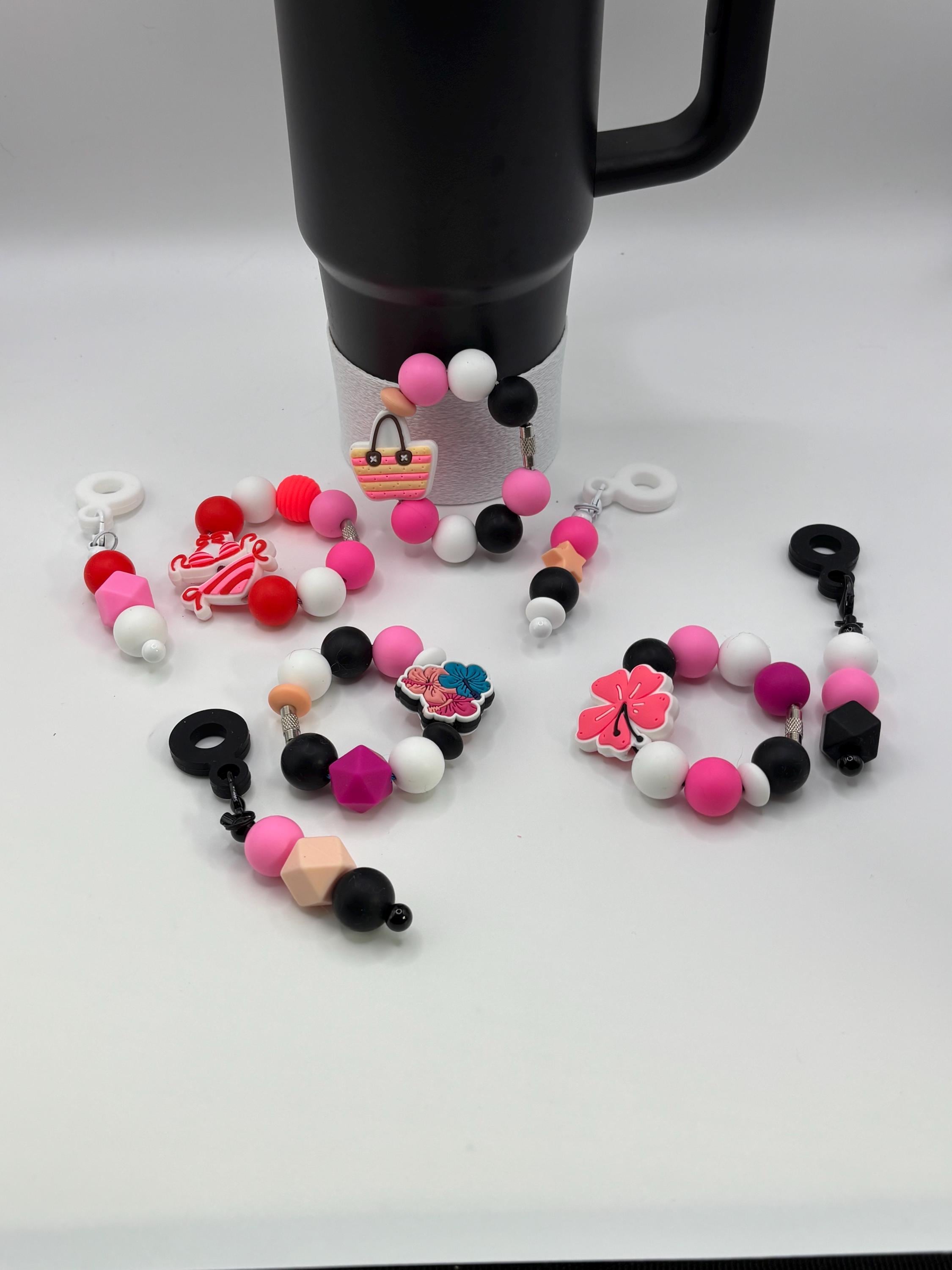 These fun handle and straw charm bracelets are made for your Tumbler and are shown on a 30 Ounce Stanley. They will fit any tumbler with a handle/ straw and could also be purse charms too !