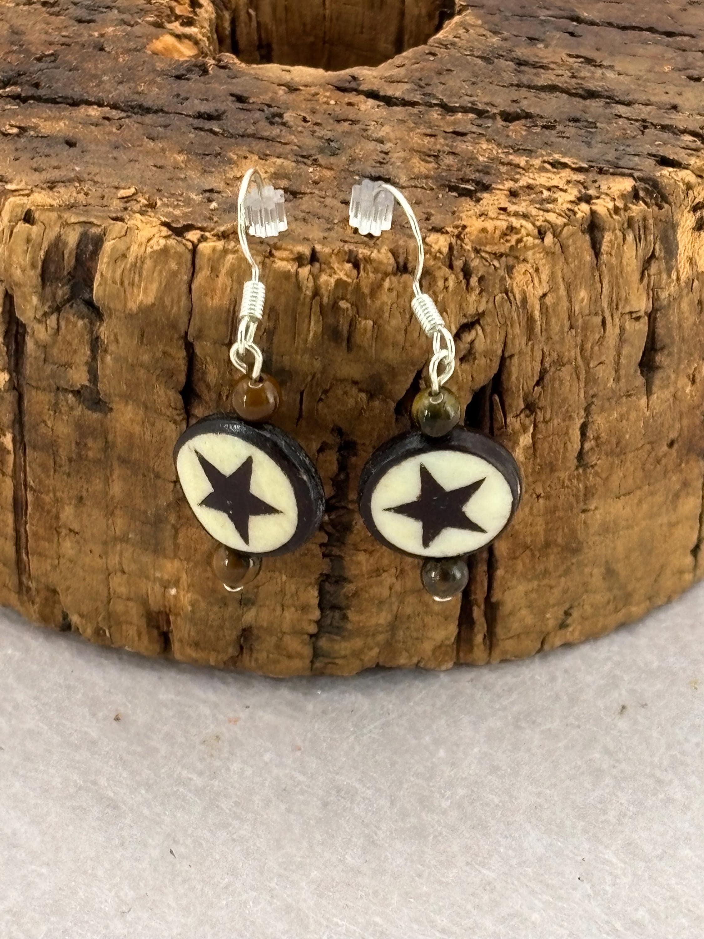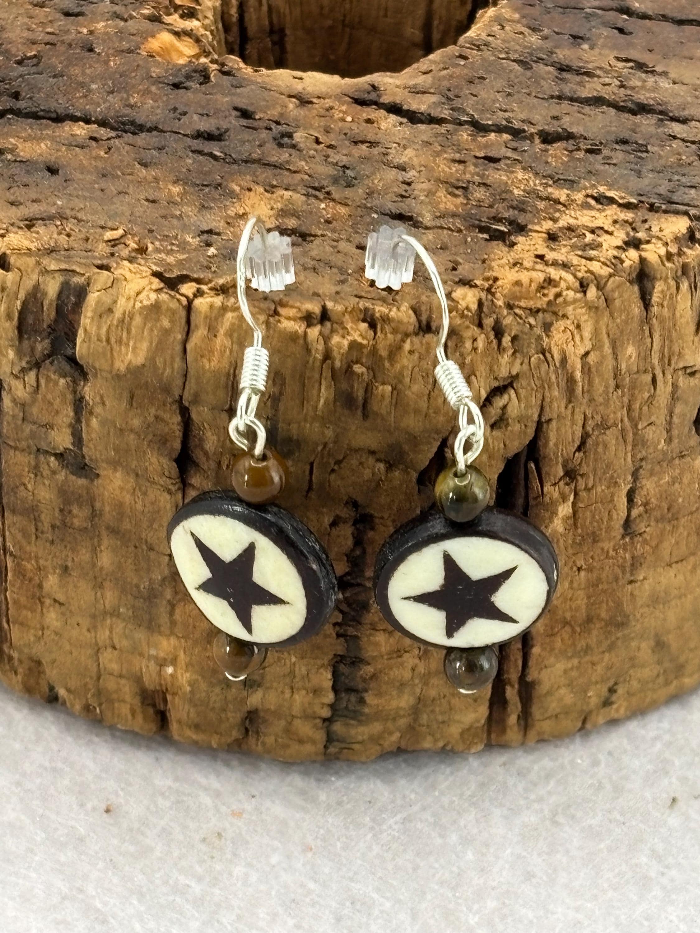 These earrings are made with Stars inlaid in Wood on silver ear wires