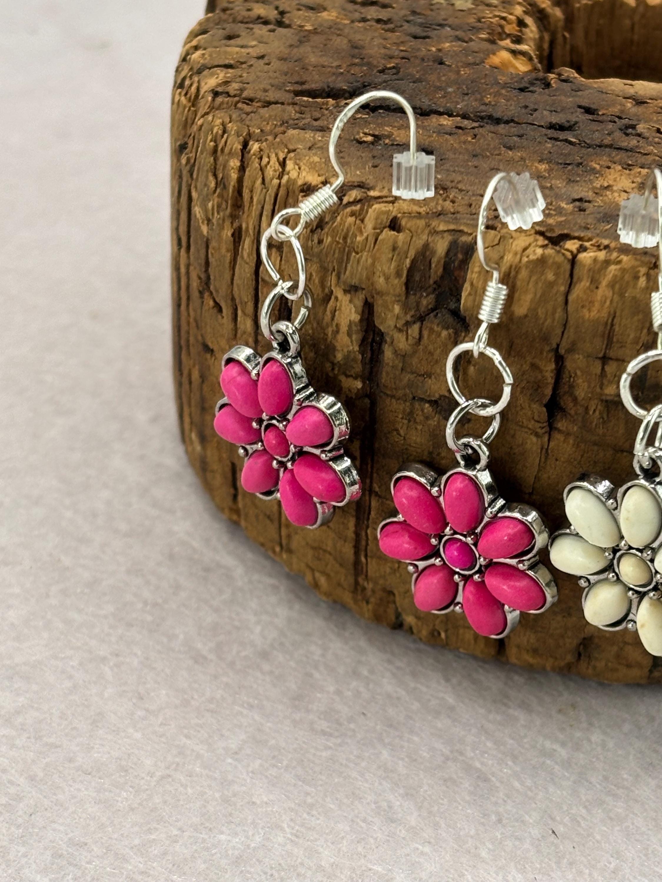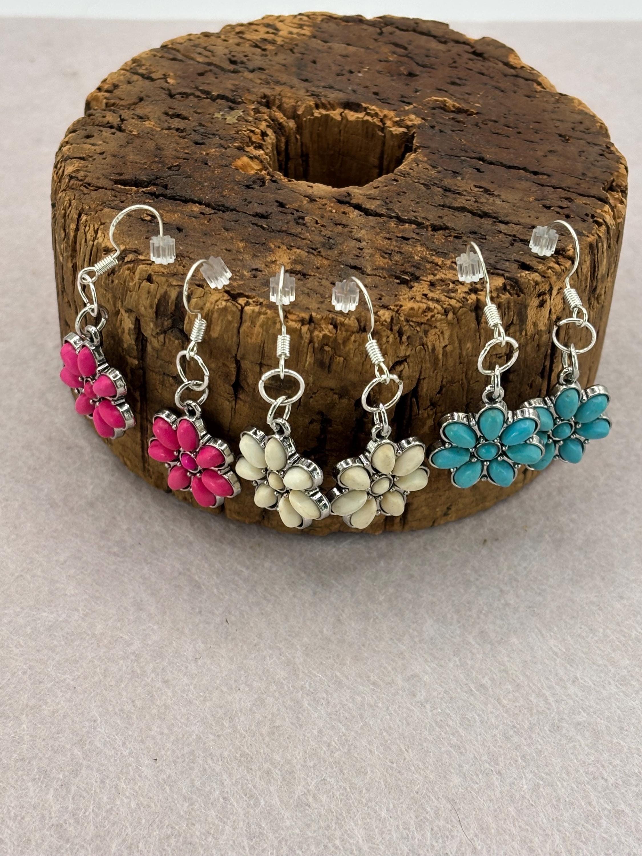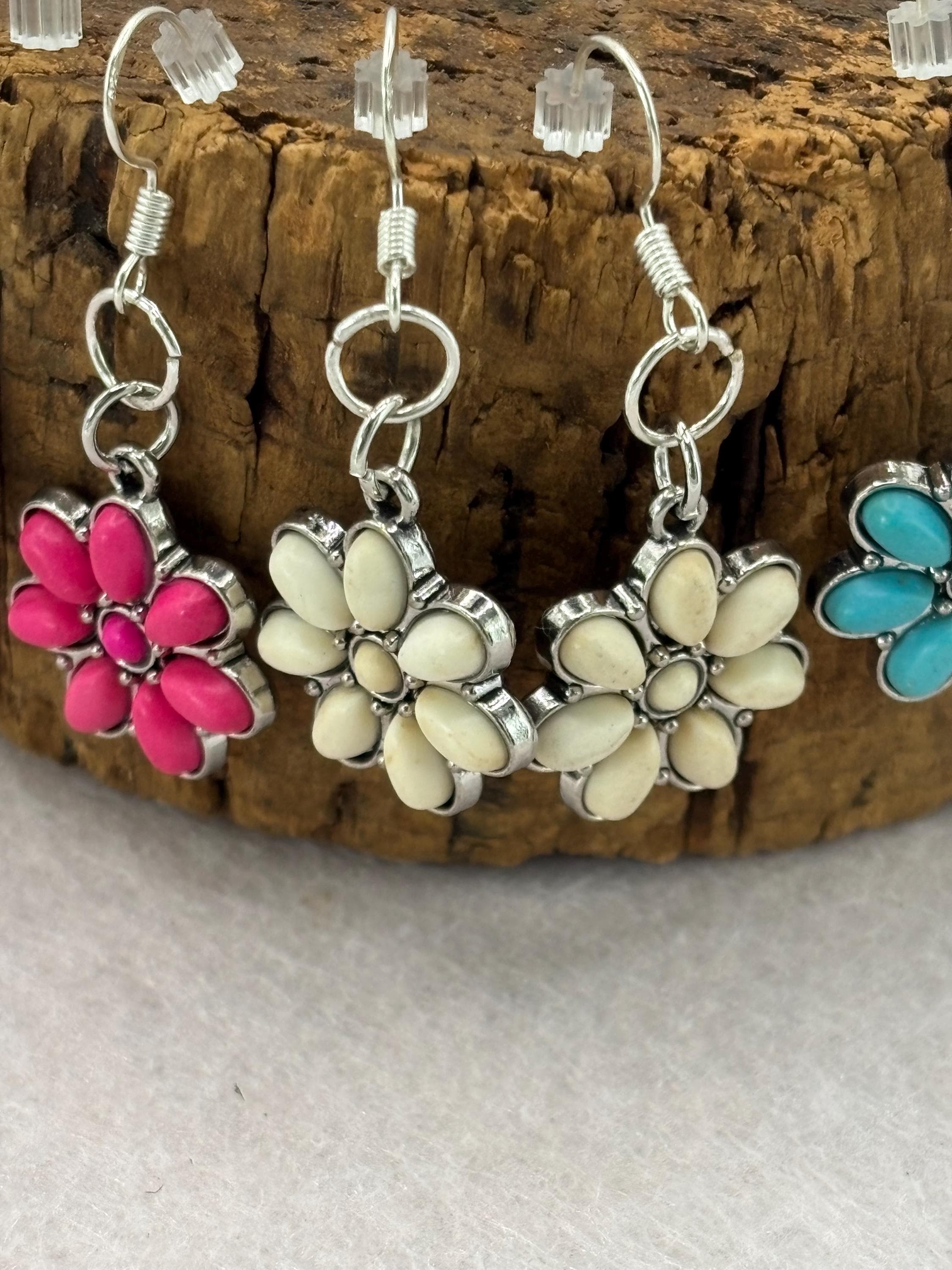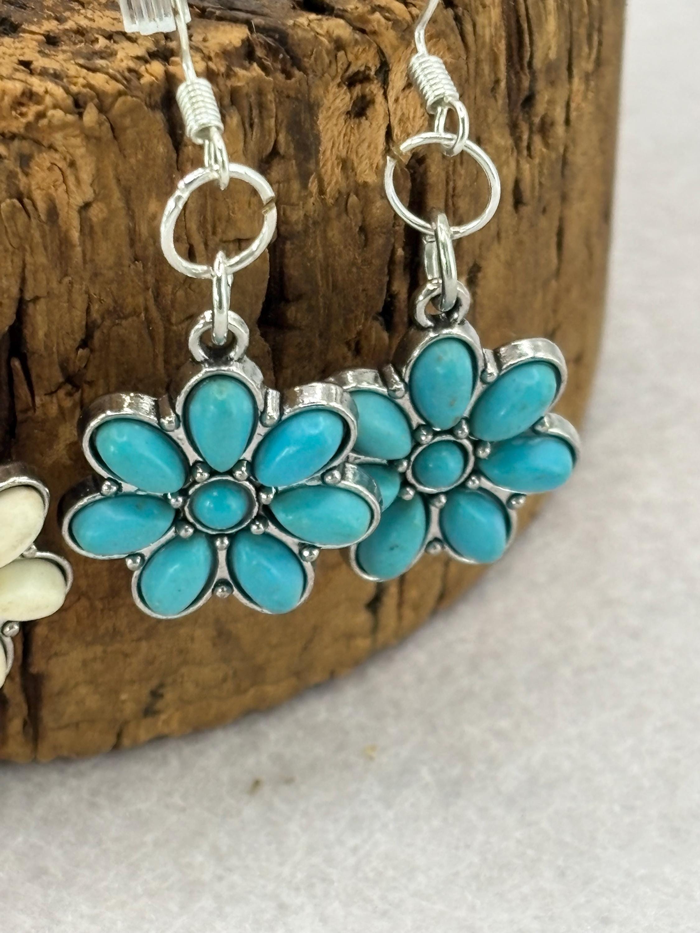 These earrings are made with Turquoise flowers on silver ear wires.
