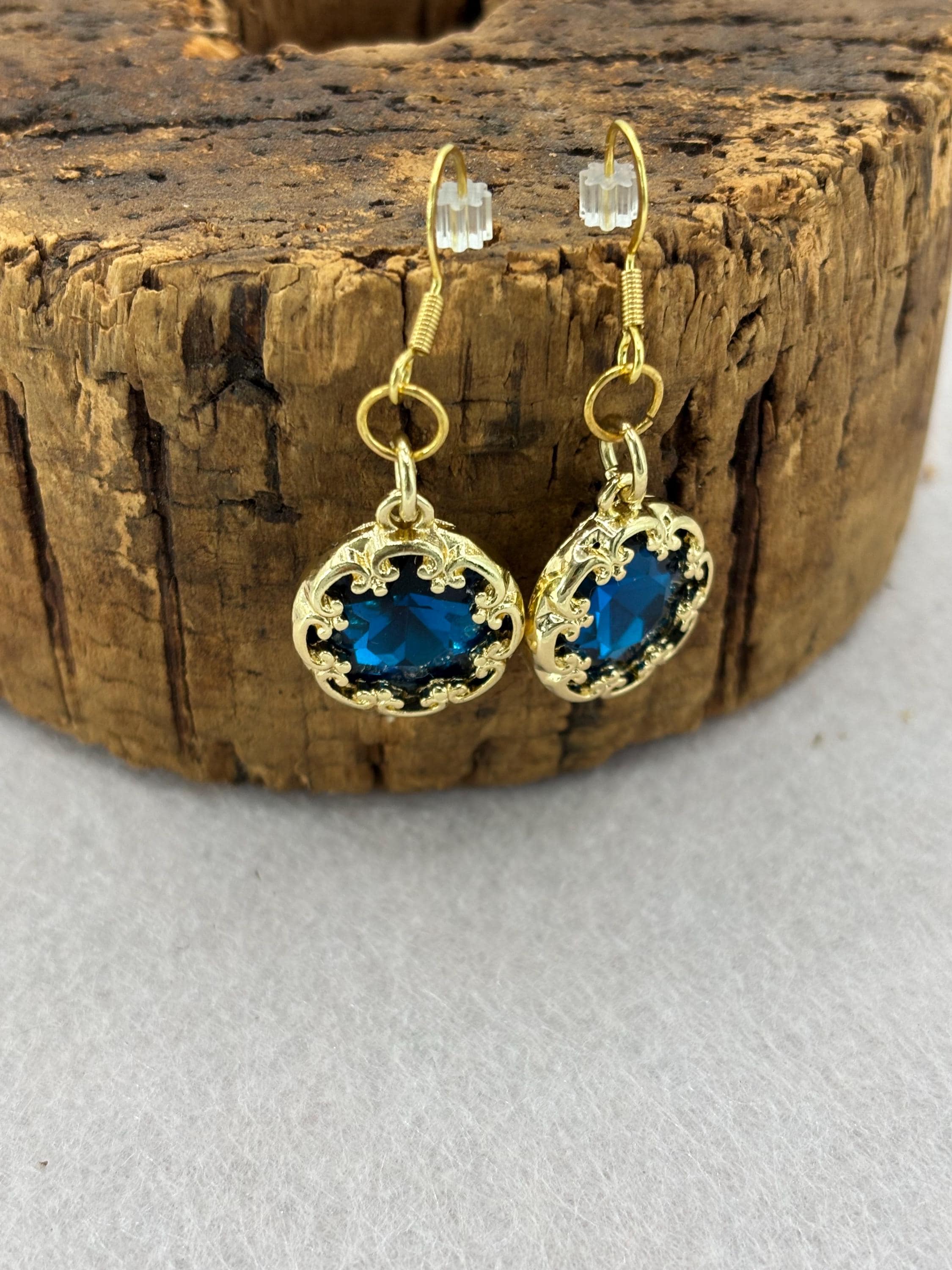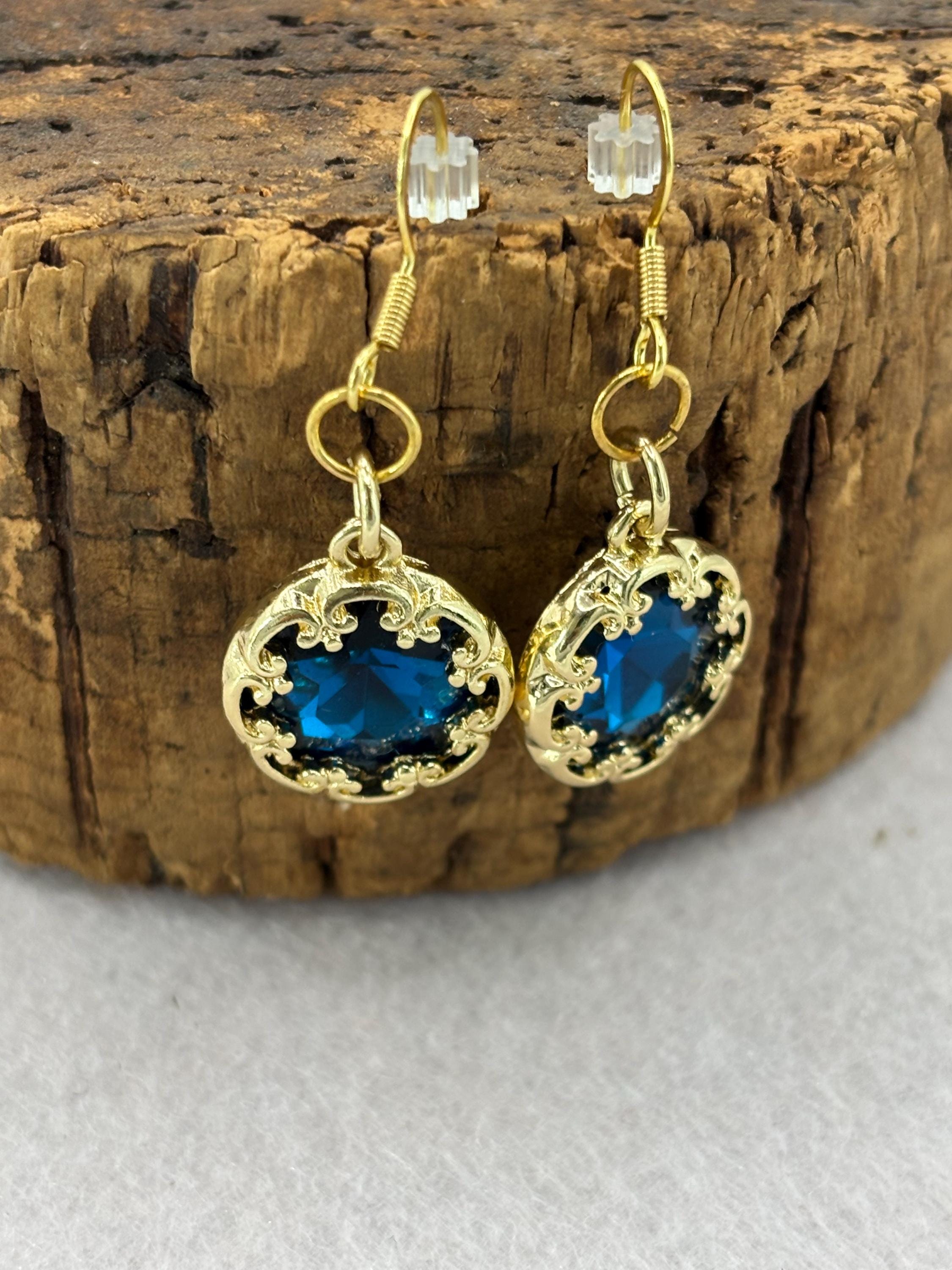 These earrings are made with Blue Rhinestones in a London Blue Color on gold ear wires