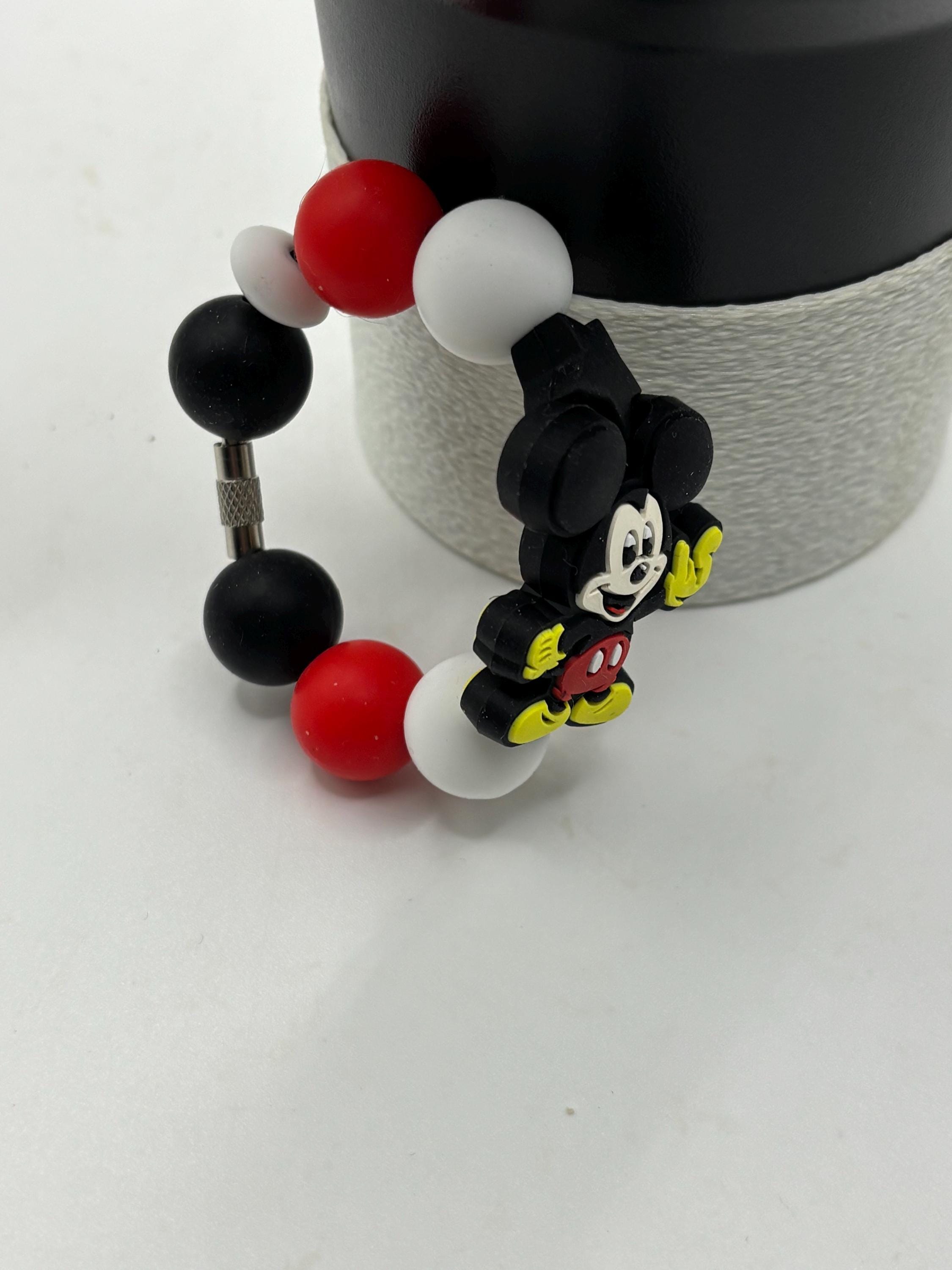 These fun Mouse themed handle and straw charm bracelets are made for your Tumbler and are shown on a 30 Ounce Stanley. They will fit any tumbler with a handle/ straw and could also be purse charms too !