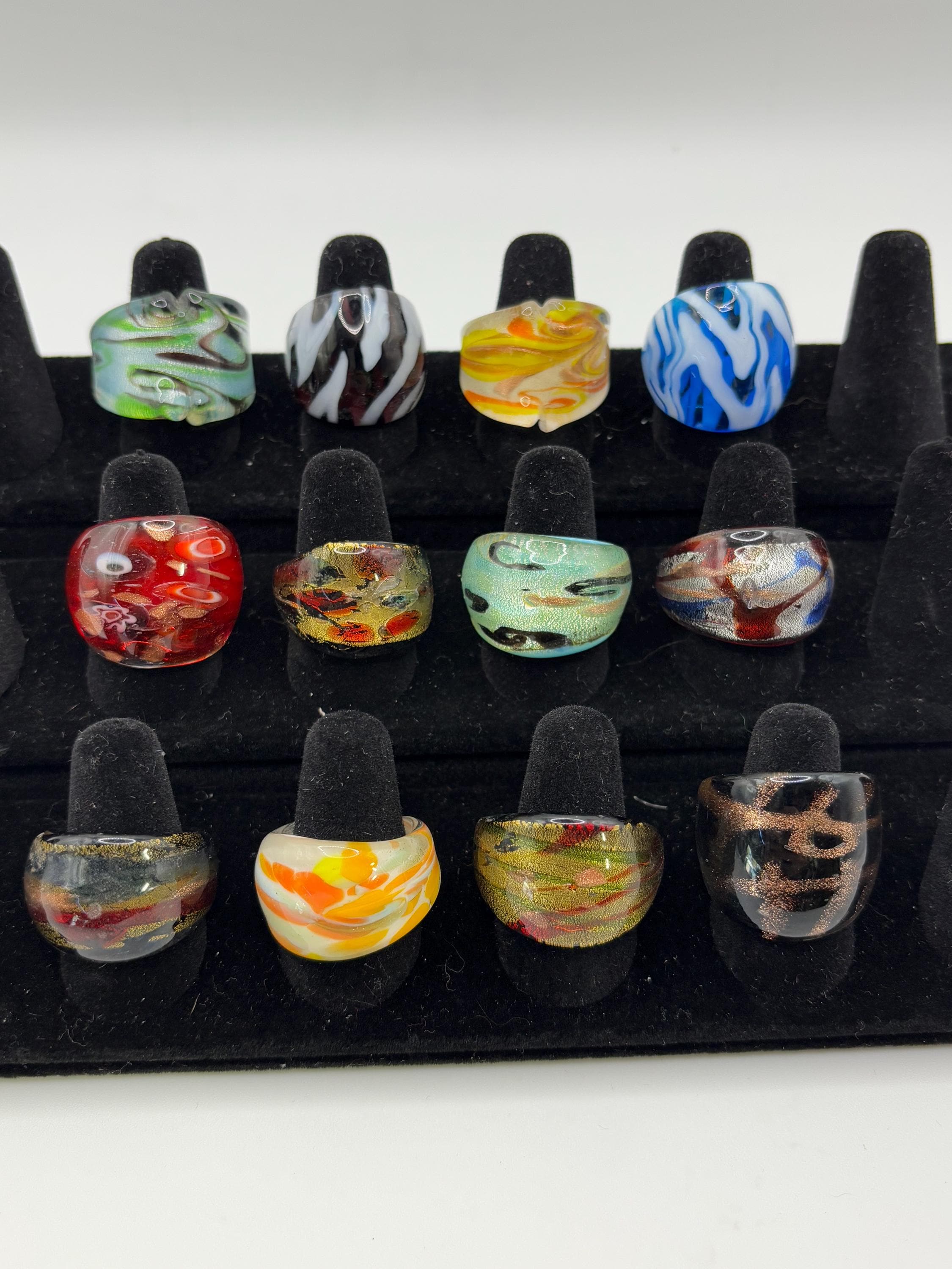 Size 7 1/4 Assorted Glass Rings | Millefiori Glass Rings | Murano Inspired Glass Rings