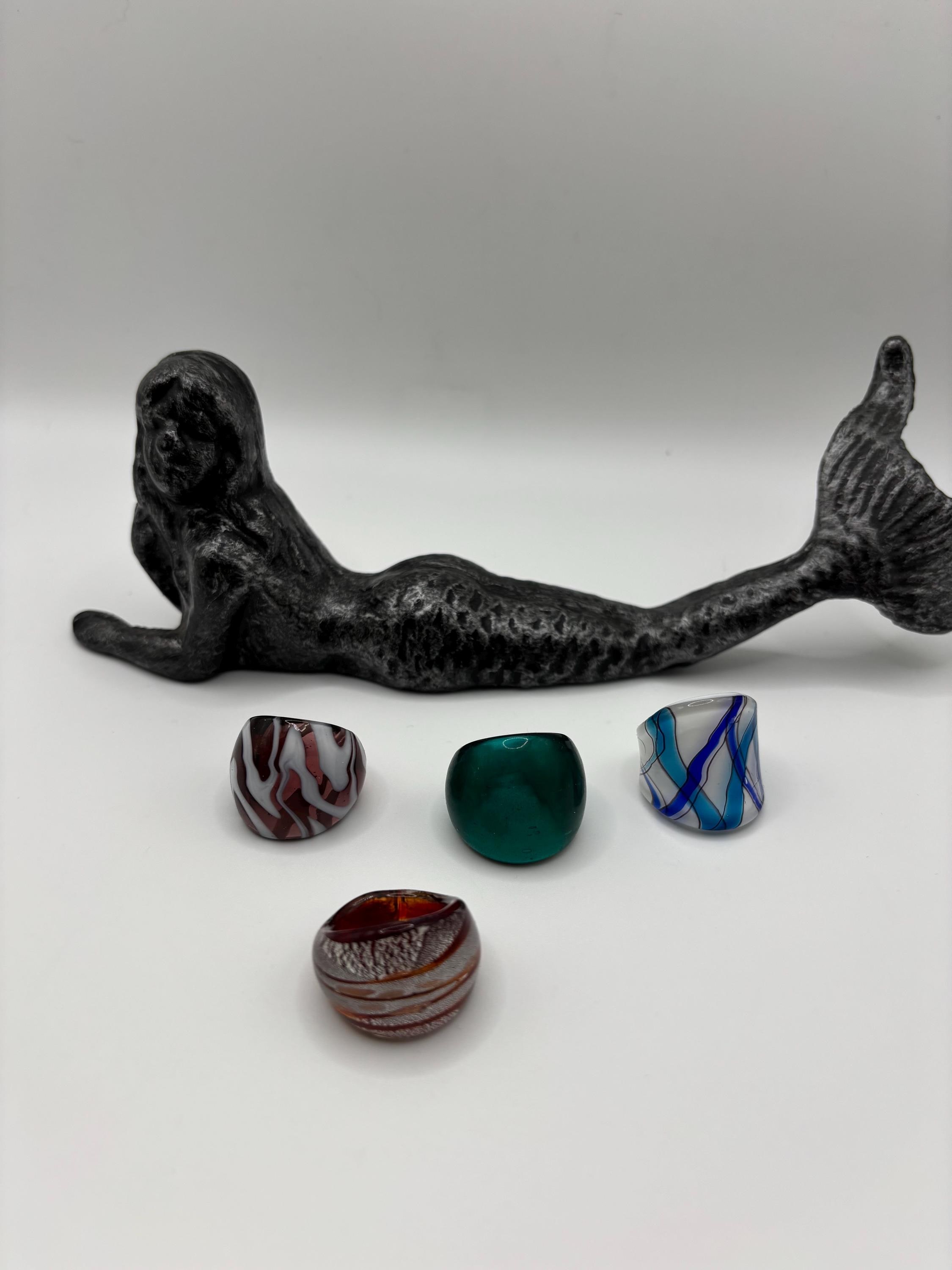 There will be many options by style, color and ring type. There are Millefiori designs as well as Murano inspired glass rings to chose from.