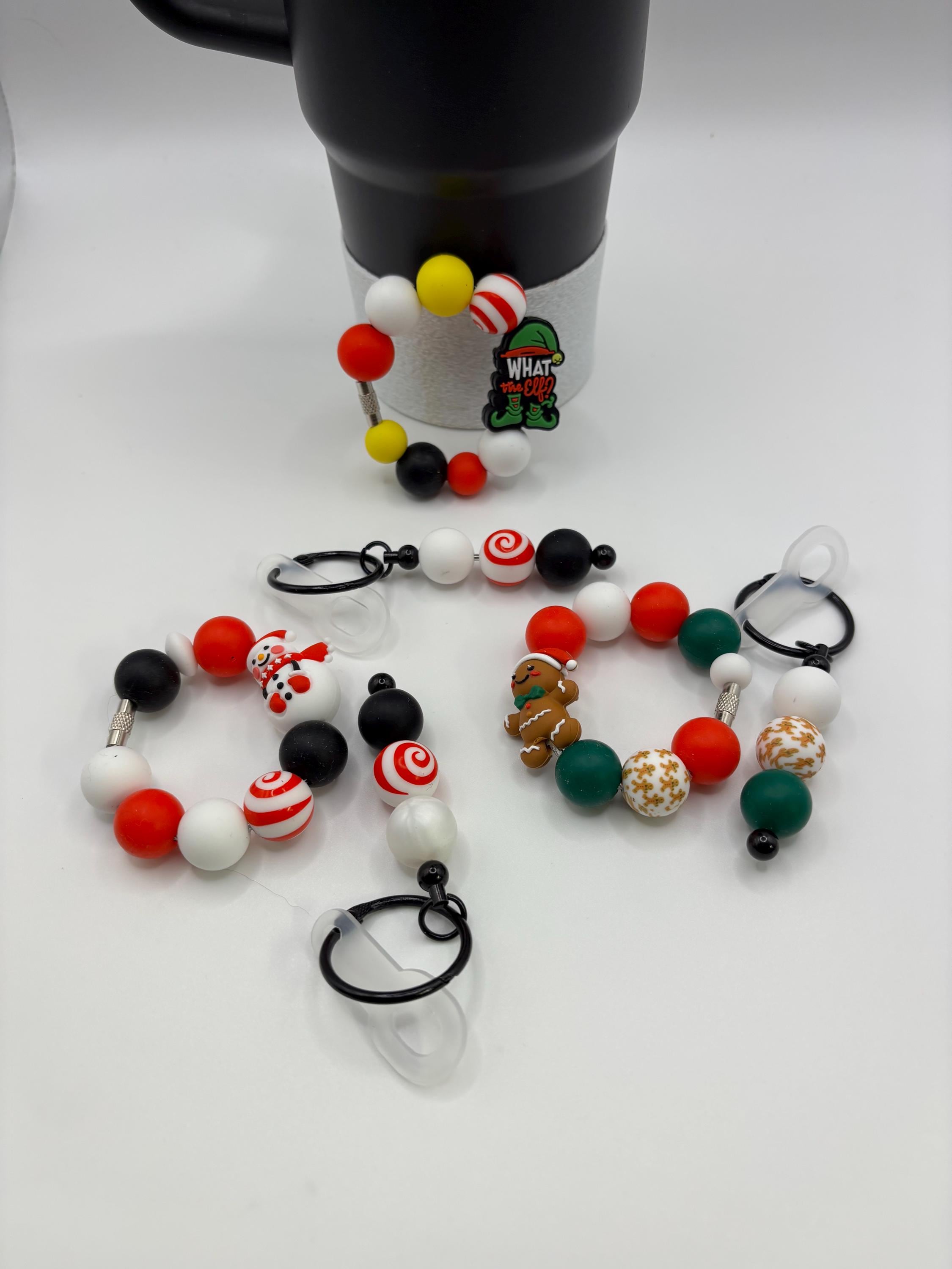 These holiday handle bracelets are made for your Tumbler and are shown on a 30 Ounce Stanley. They will fit any tumbler with a handle and or straw.
