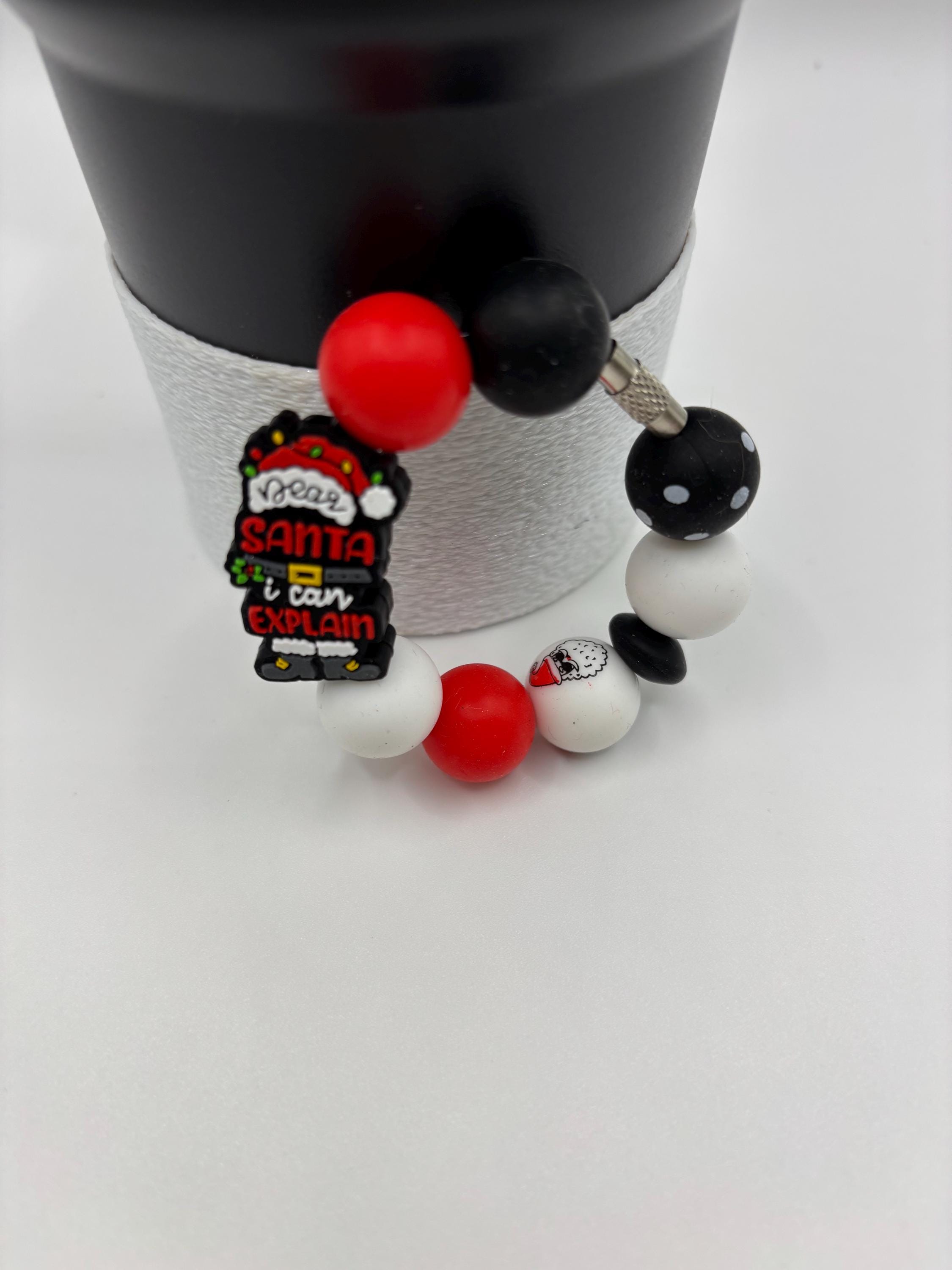 These holiday handle bracelets are made for your Tumbler and are shown on a 30 Ounce Stanley. They will fit any tumbler with a handle and or straw