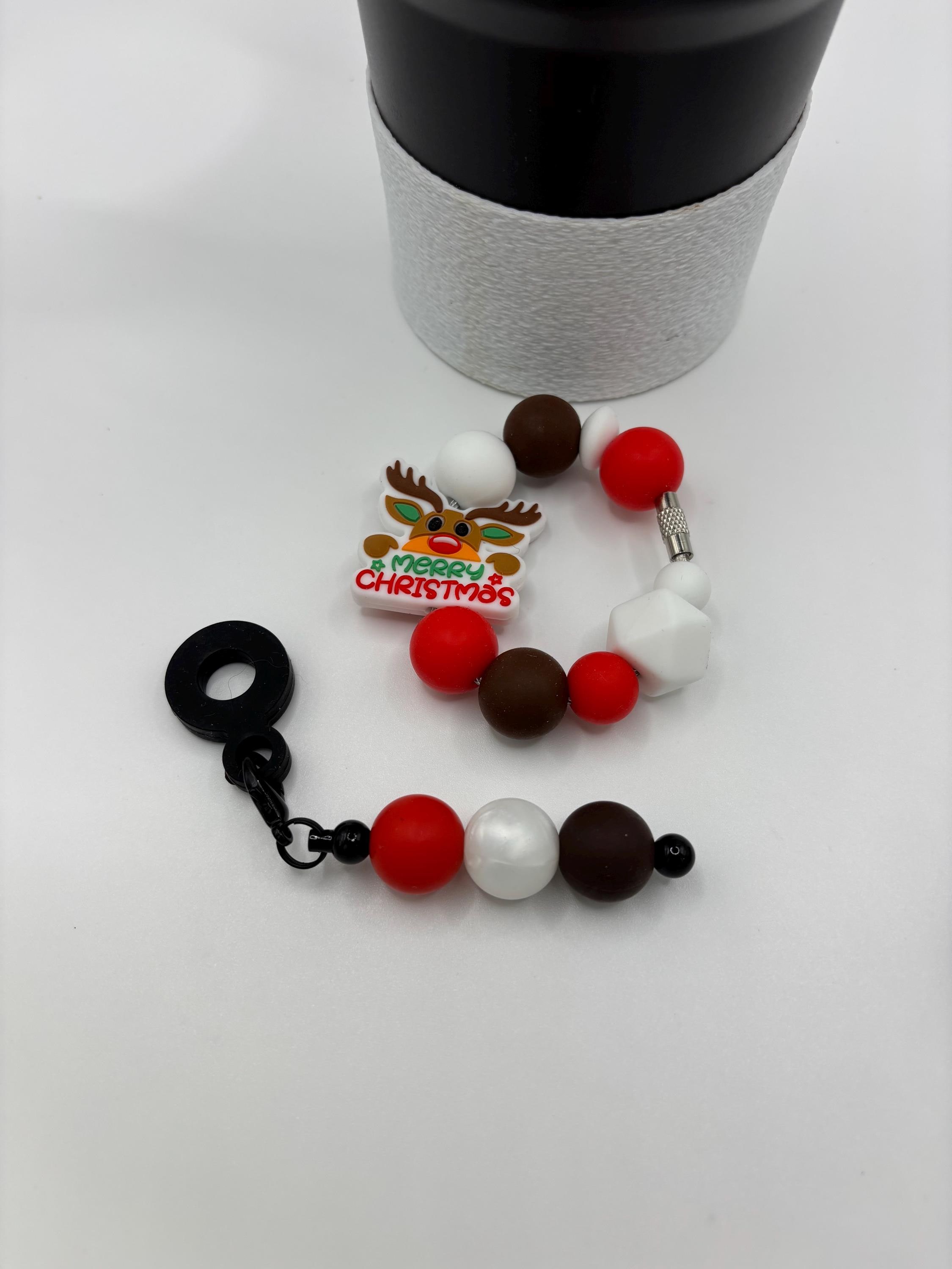 These holiday handle bracelets and straw charms are made for your Tumbler and are shown on a 30 Ounce Stanley. They will fit any tumbler with a handle and or straw and could also be purse charms too !