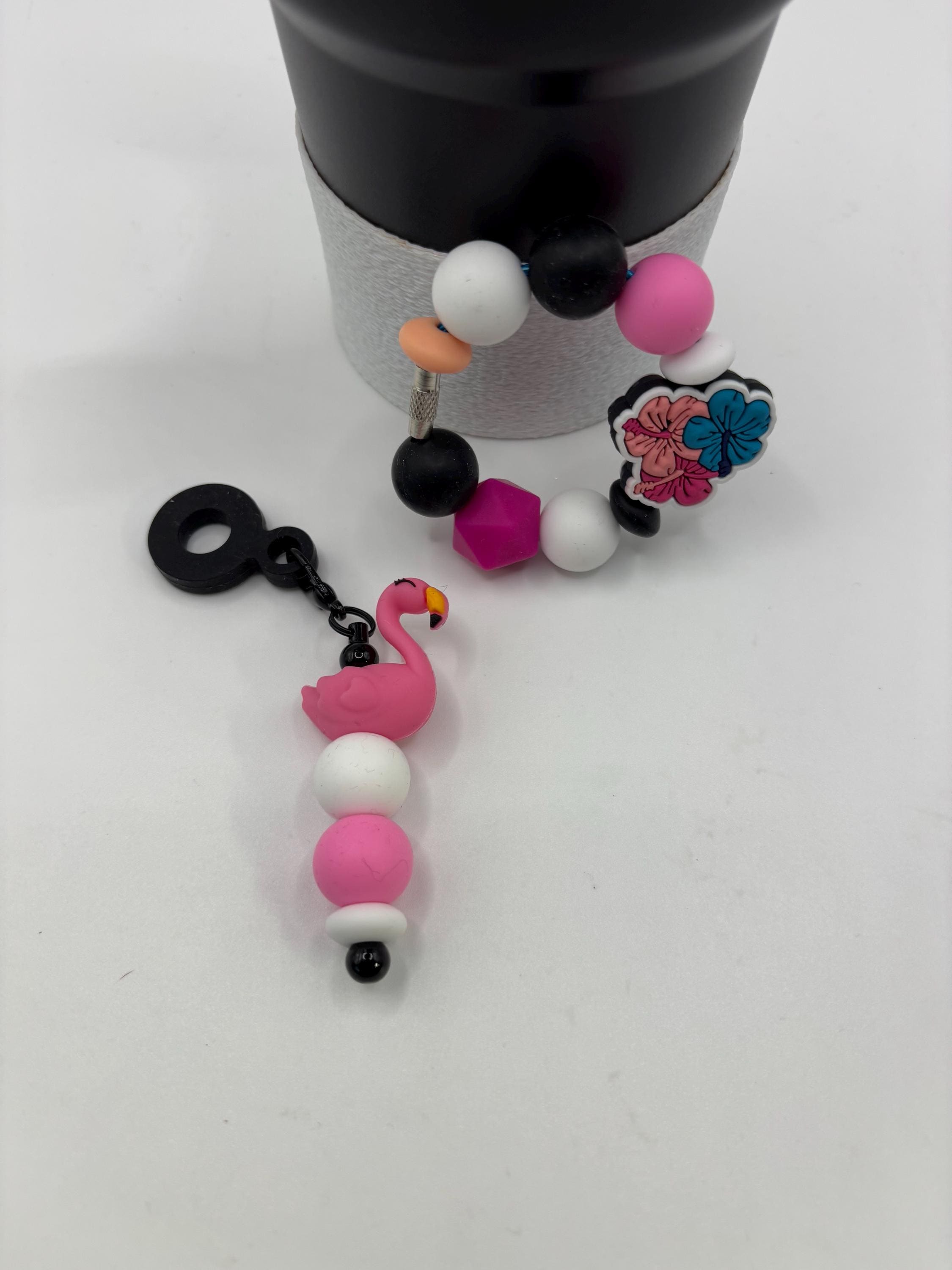Flamingo and Flower Trio Tropical Stanley Cup Bracelet: Cup Handle Bracelet | Straw Charm | Vacation | Beach