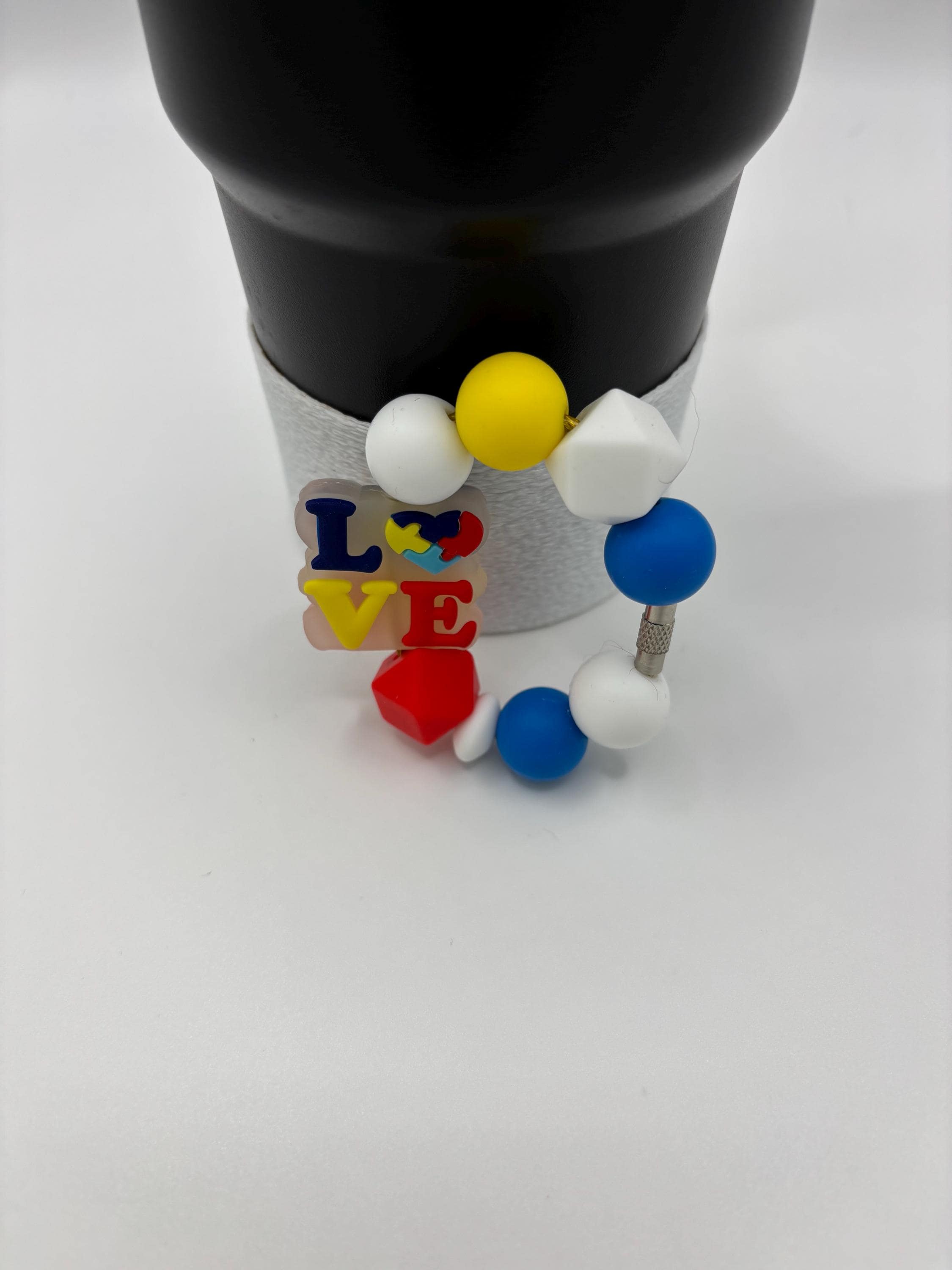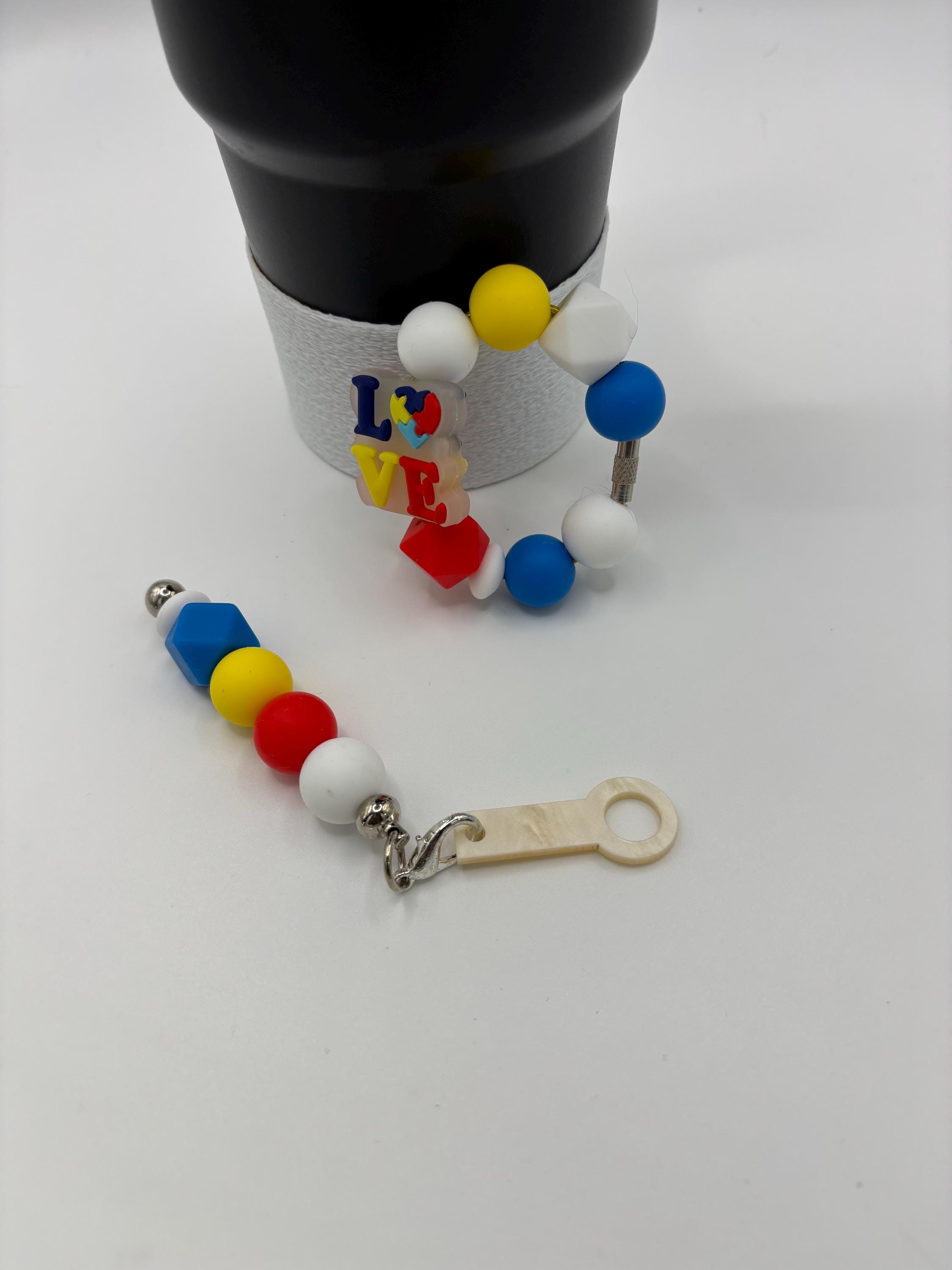 These Autism Awareness handle and straw charm bracelets are made for your Tumbler and are shown on a 30 Ounce Stanley. They will fit any tumbler with a handle/ straw and could also be purse charms too !